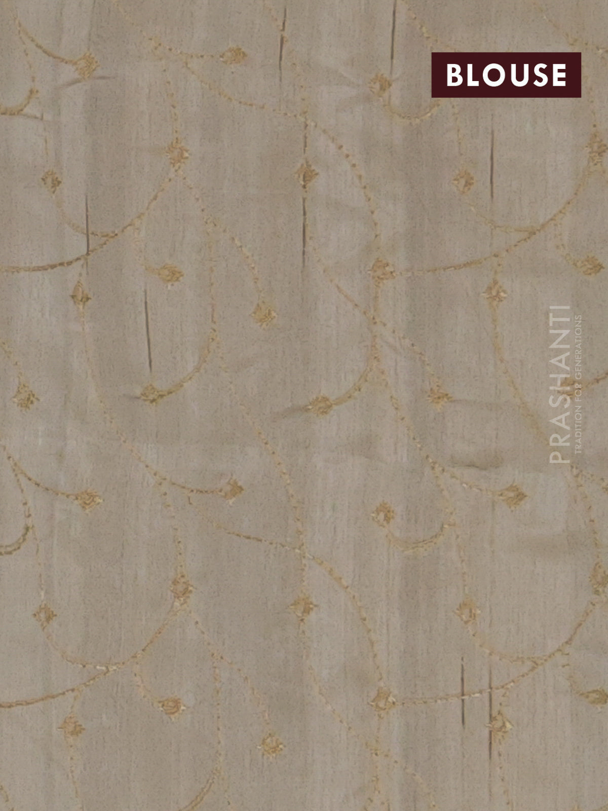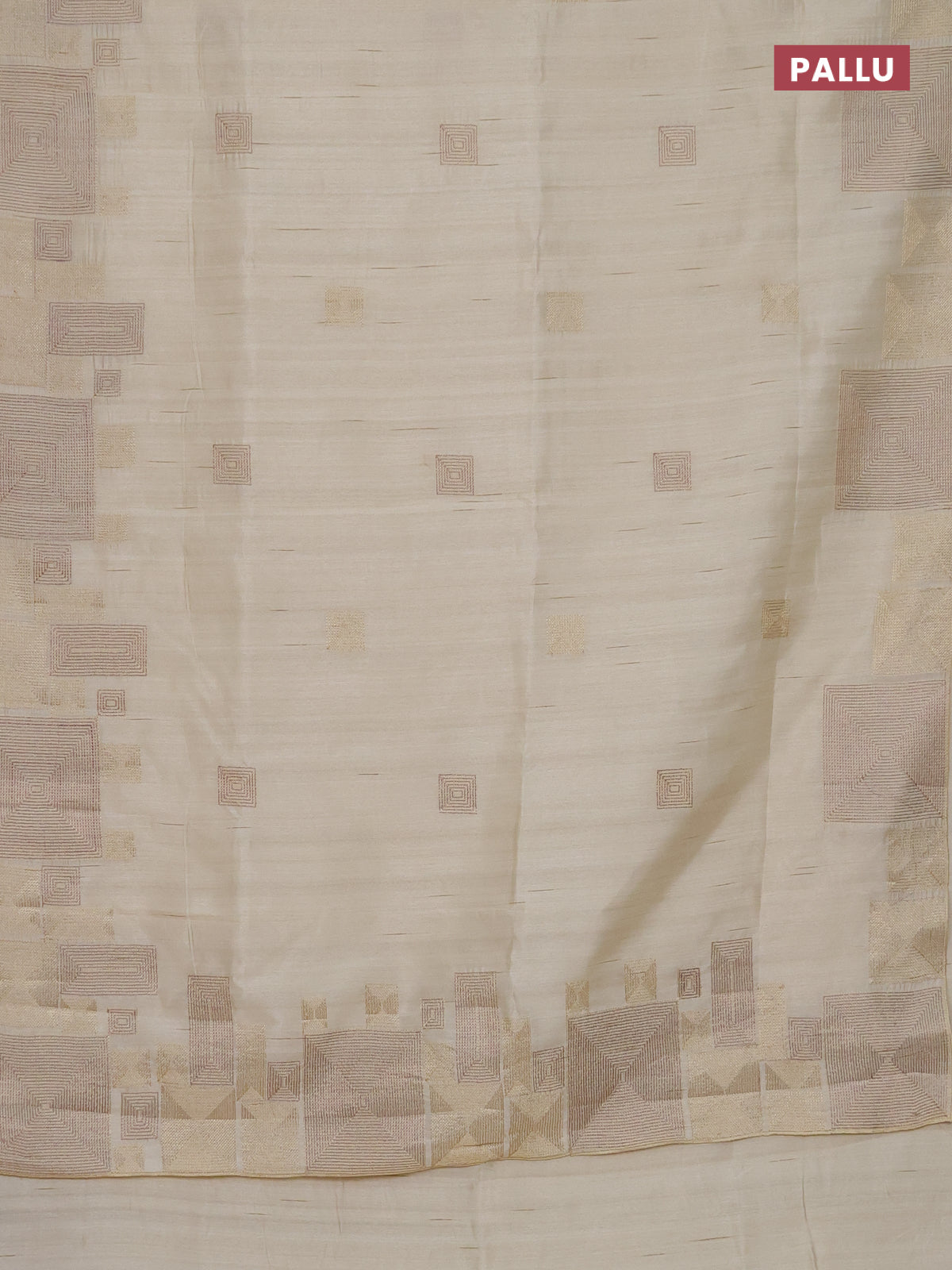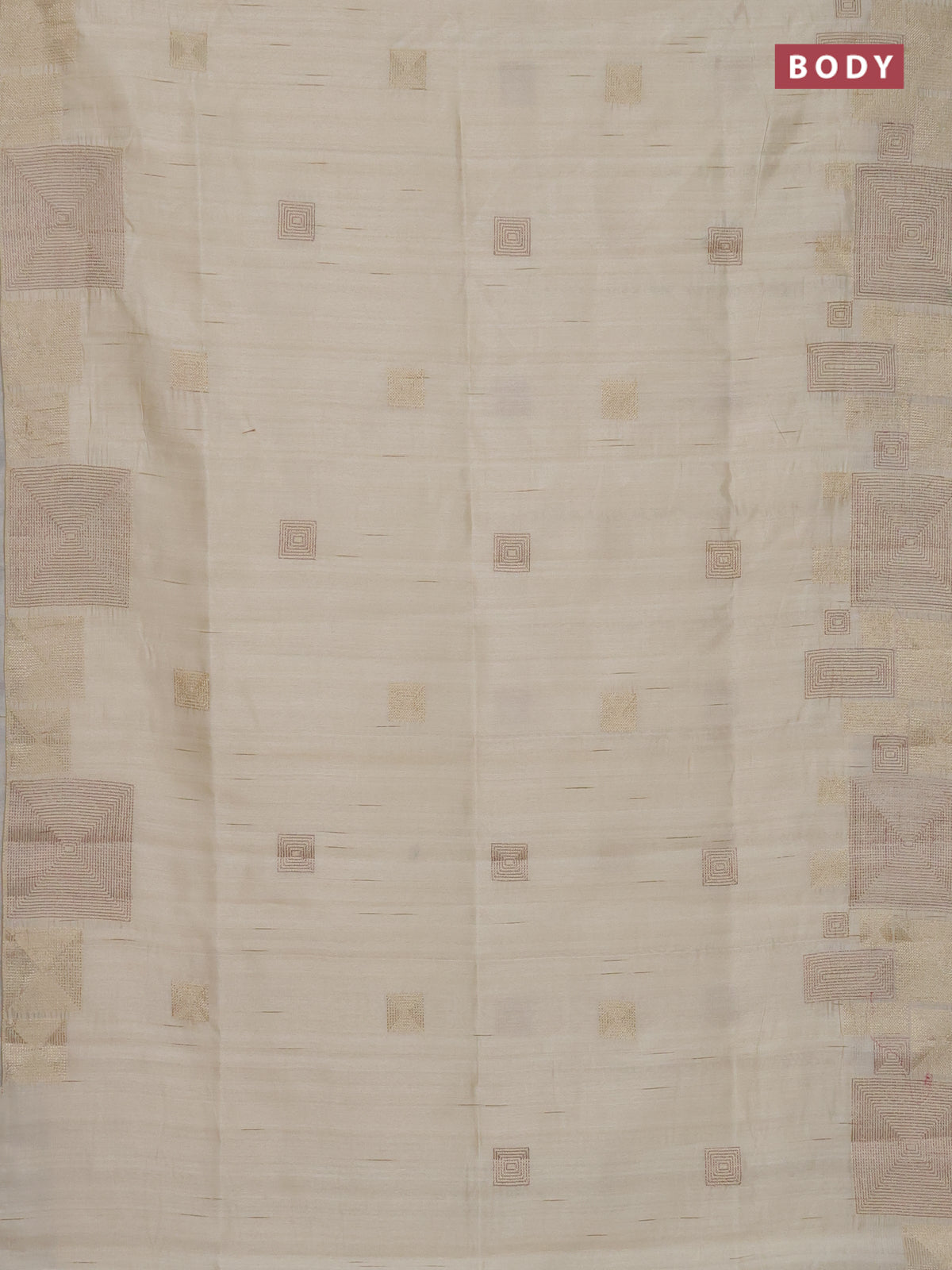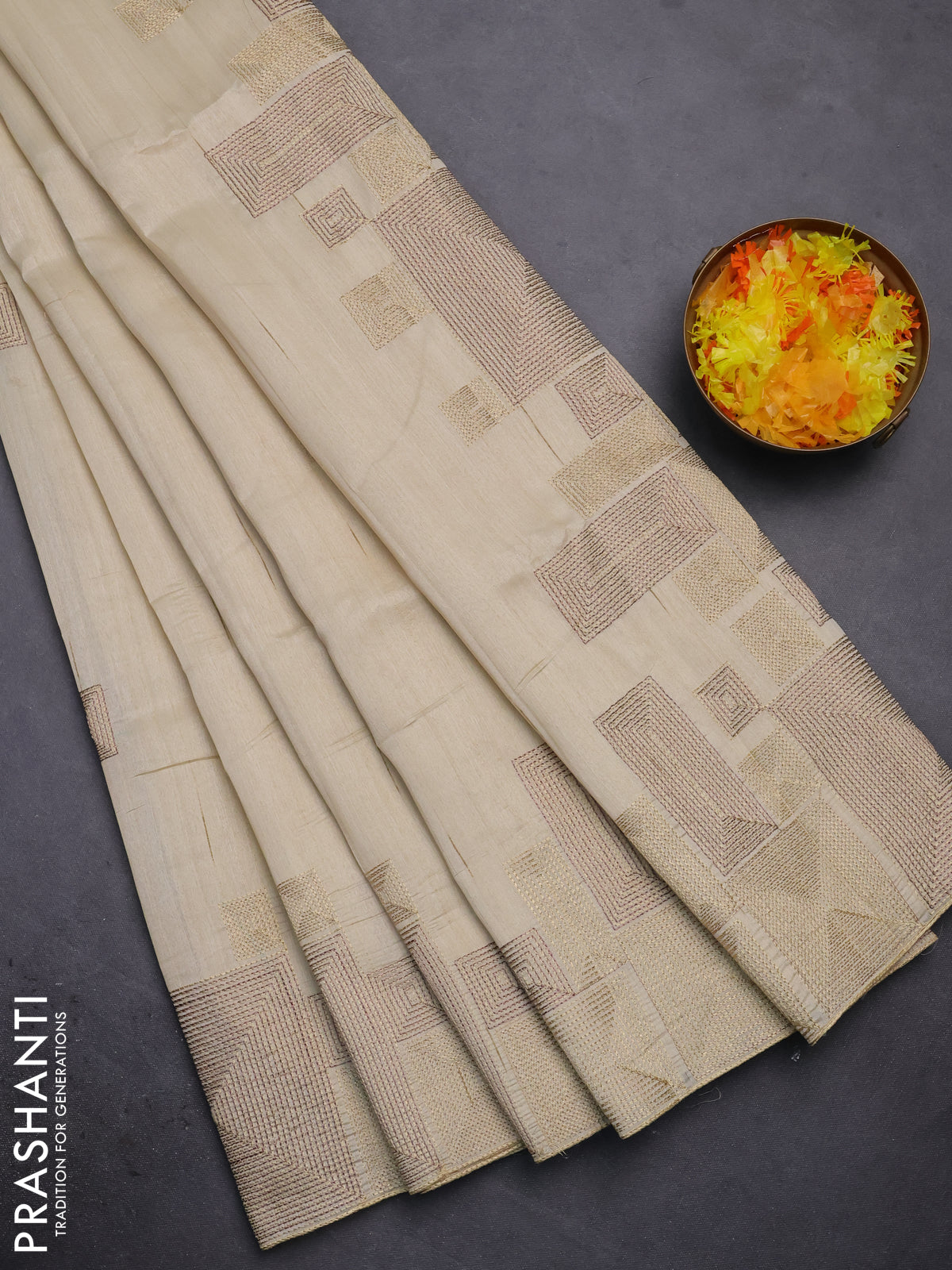 Semi raw silk saree cream with embroidery work buttas and geometric design embroidery border