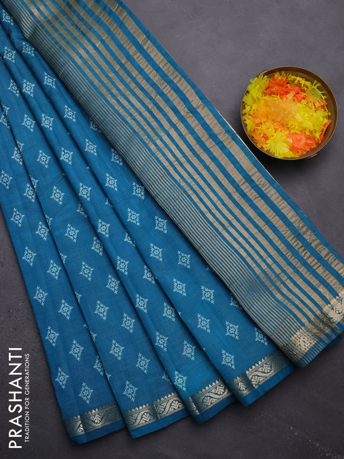 Semi raw silk saree cs blue with allover butta prints and zari woven border