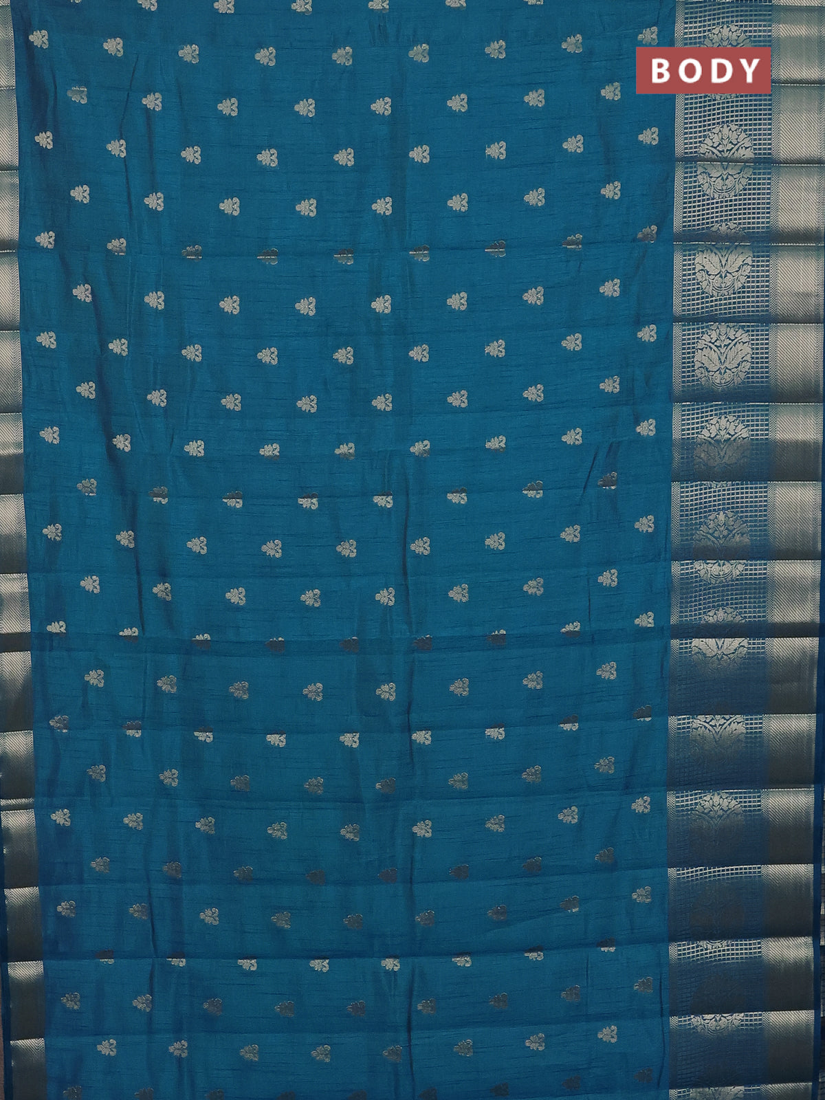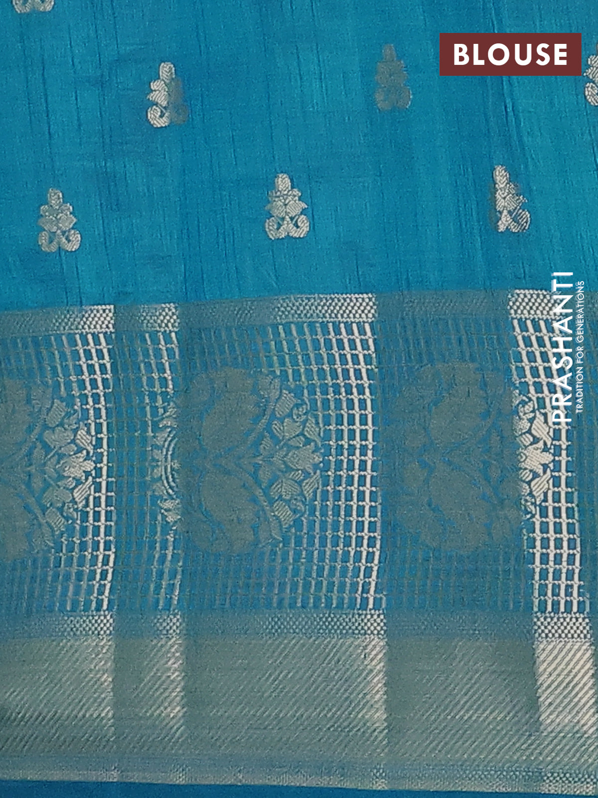 Semi raw silk saree cs blue with allover zari woven 1000 buttas and long zari woven border