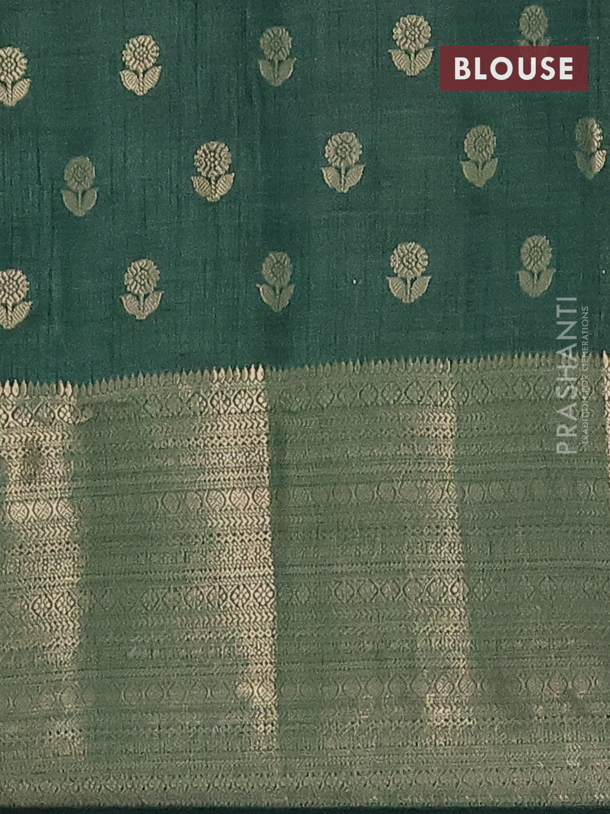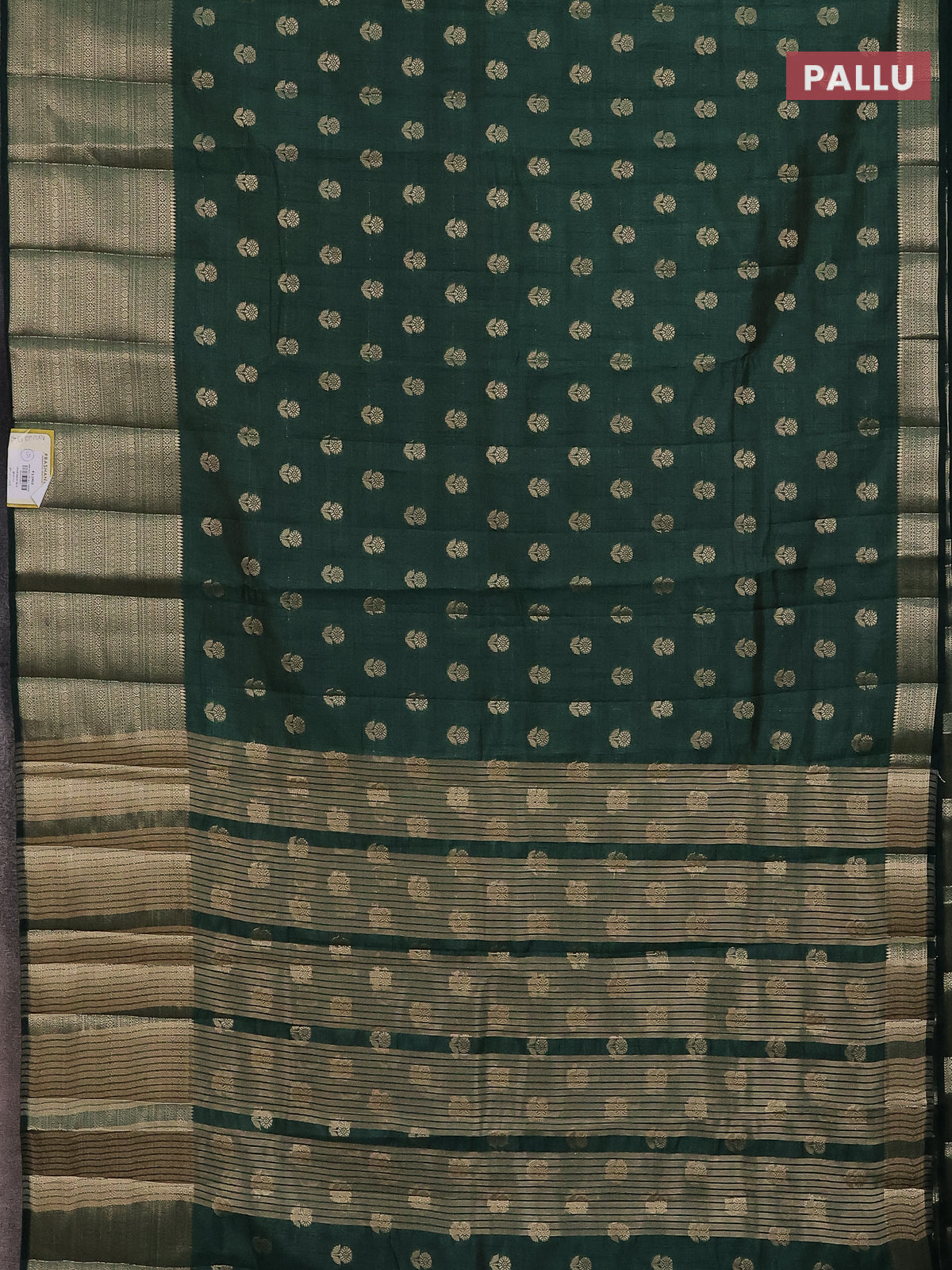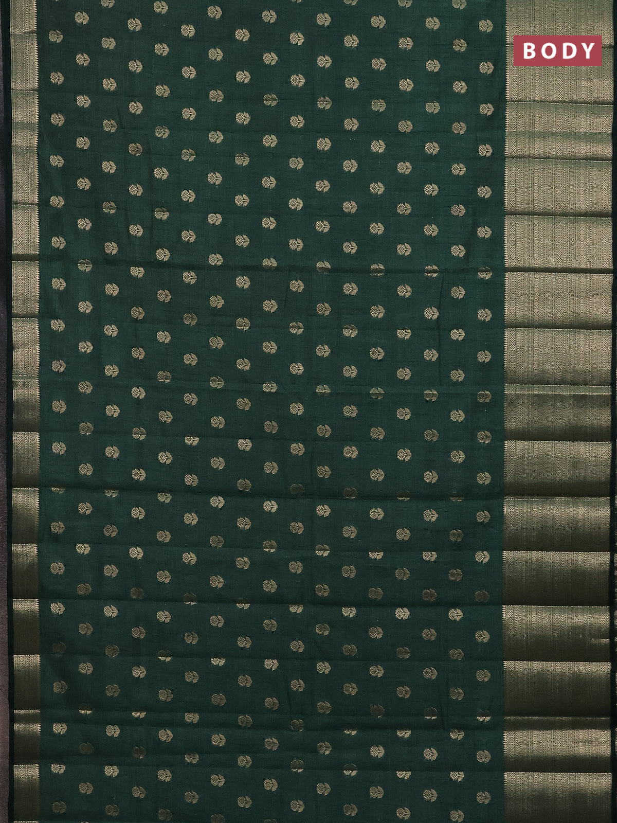 Semi raw silk saree dark green with allover zari woven floral design 1000 buttas and long zari woven border