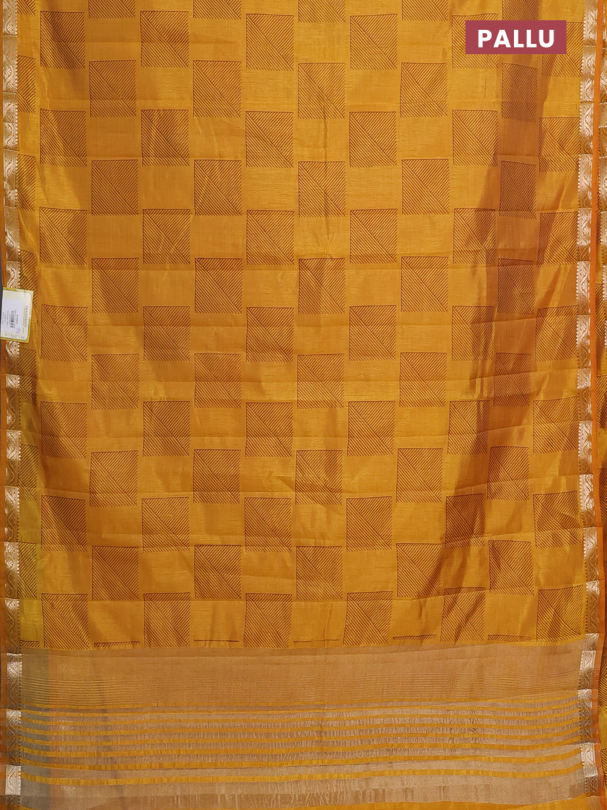 Semi raw silk saree dark mustard with allover geometric butta prints and zari woven border