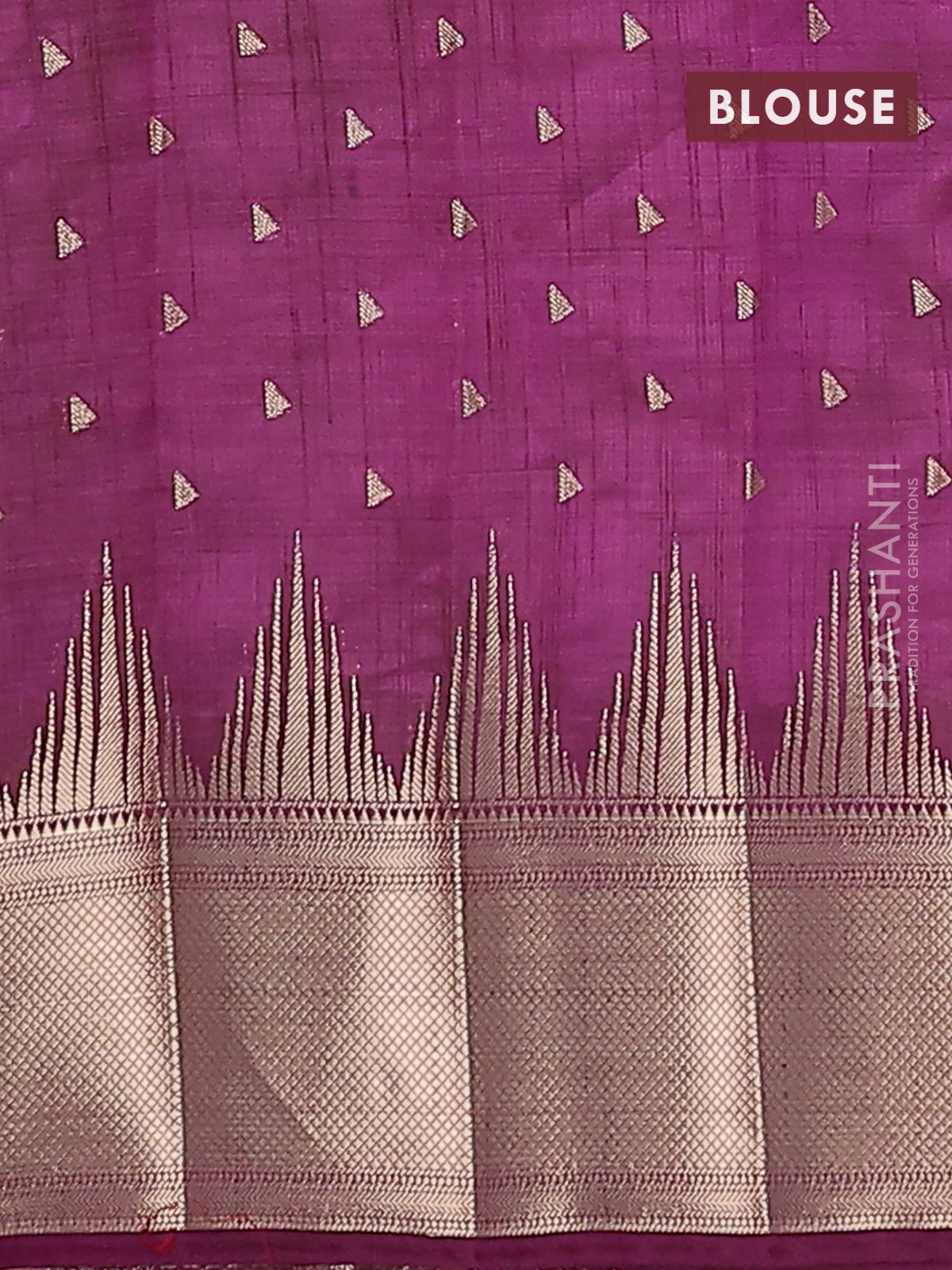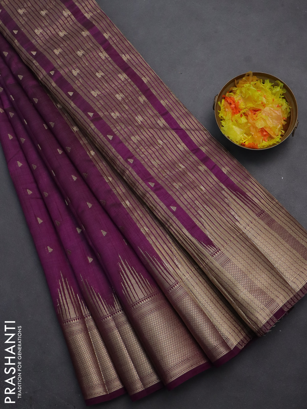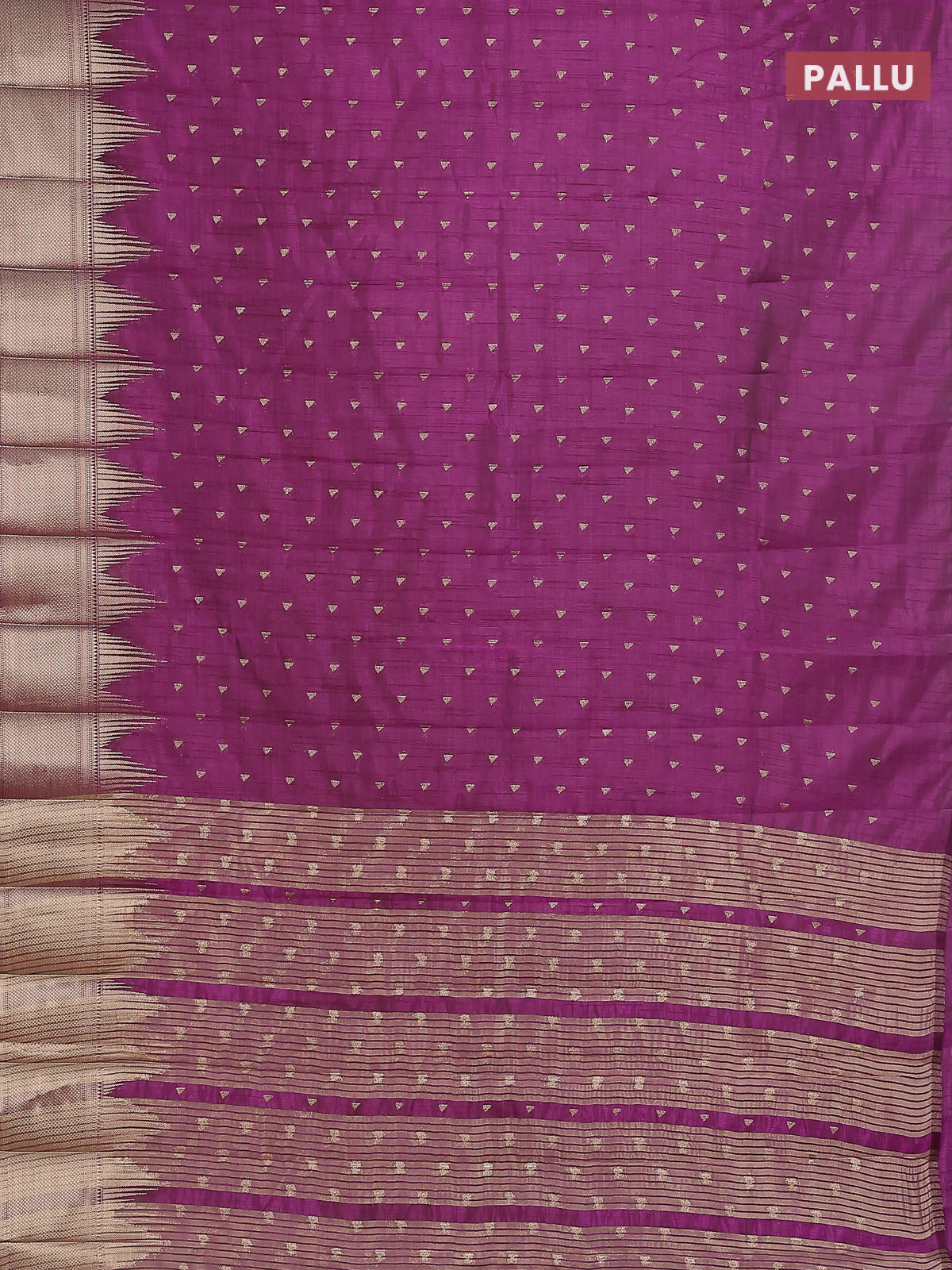 Semi raw silk saree deep purple with allover zari woven 1000 buttas and temple design zari woven border