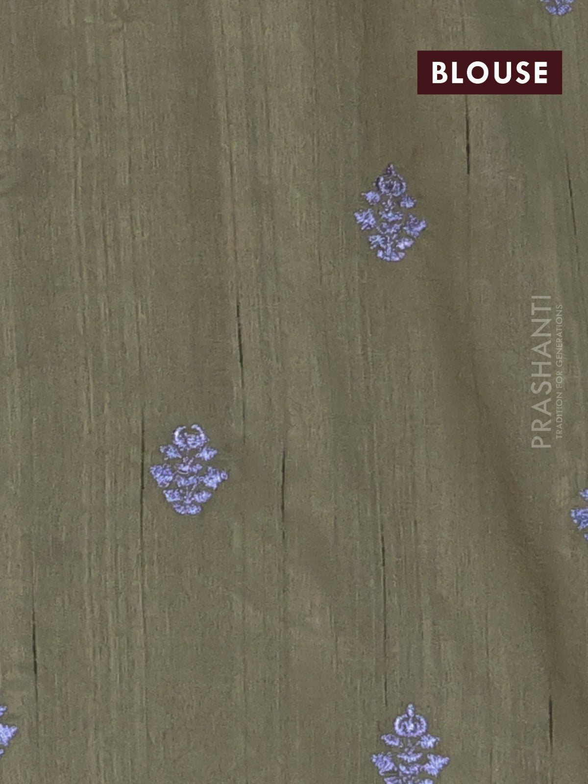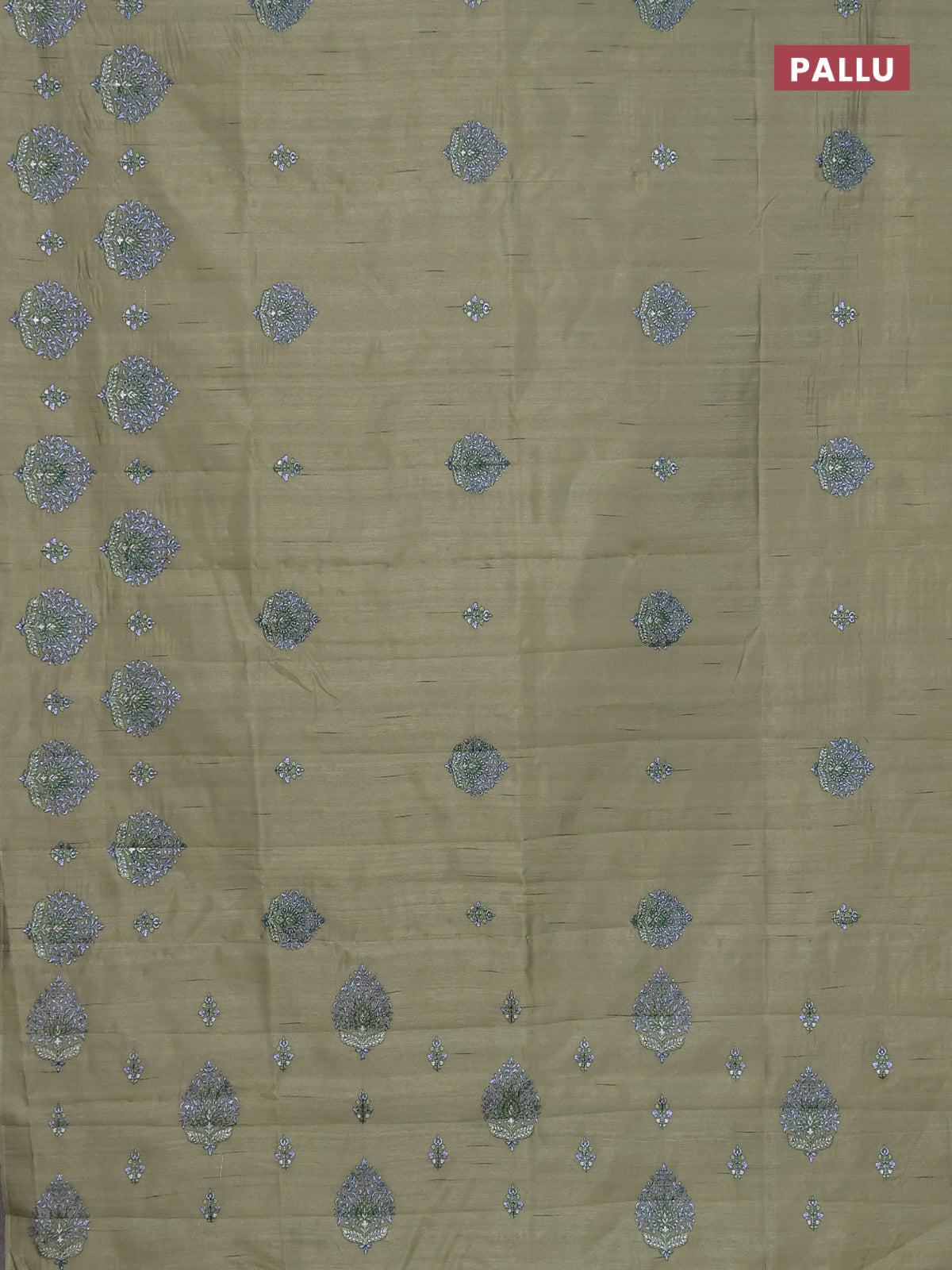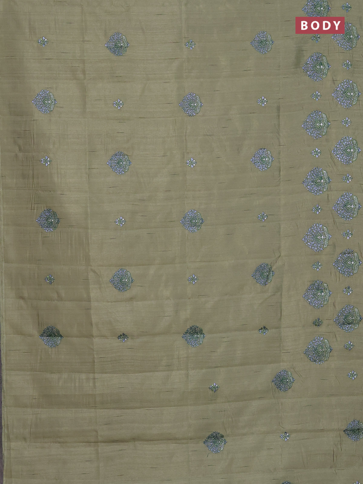 Semi raw silk saree elaichi green with embroidery work buttas and embroidery butta border