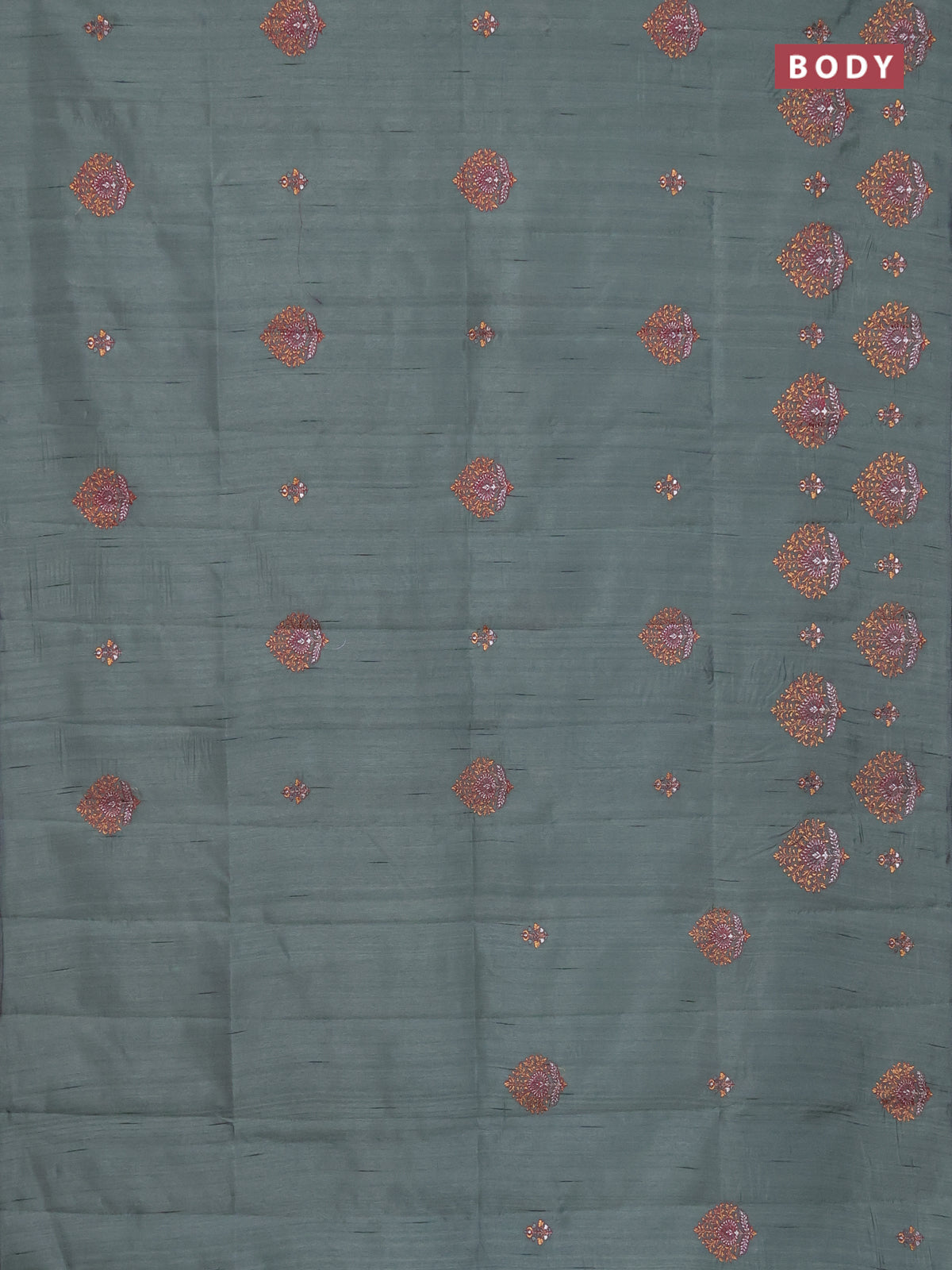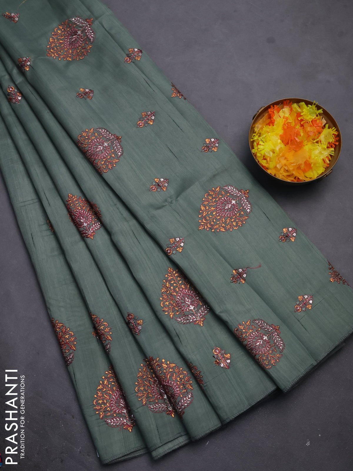 Semi raw silk saree green shade with embroidery work buttas and embroidery butta border