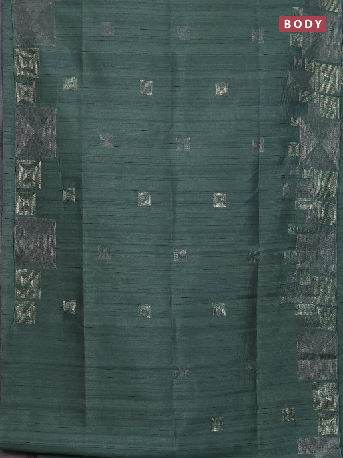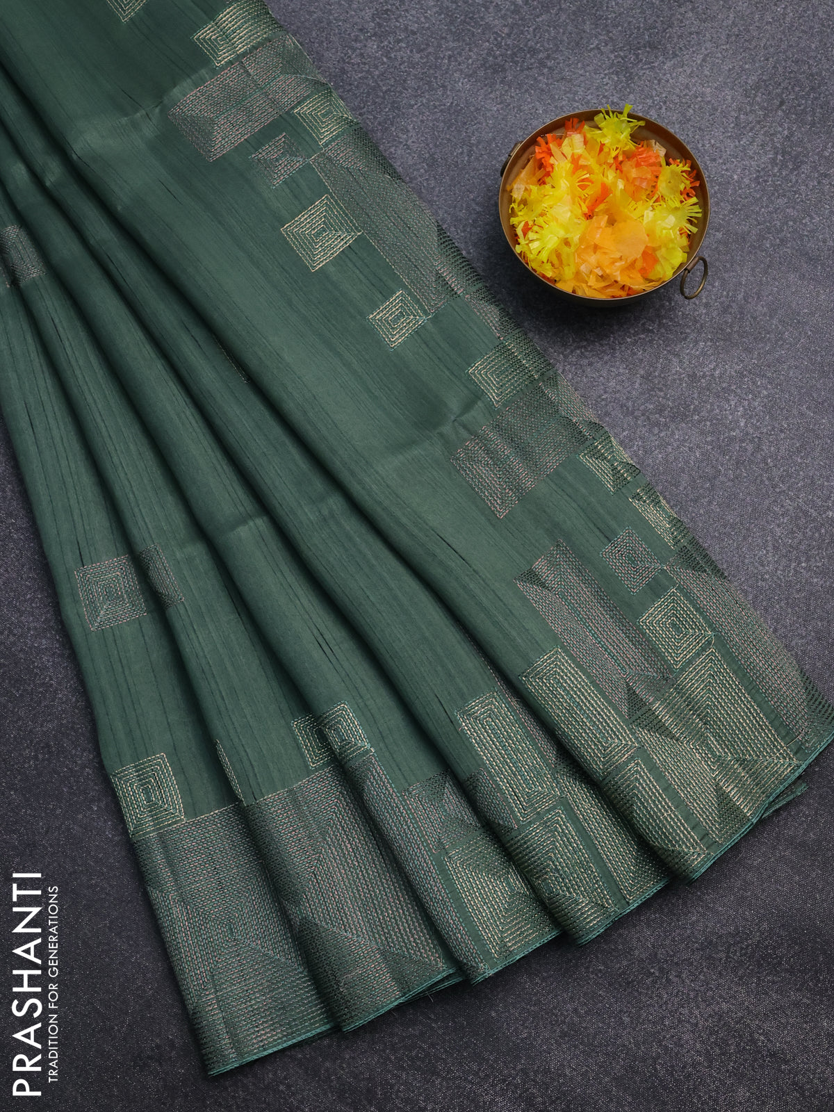 Semi raw silk saree green shade with embroidery work buttas and geometric design embroidery border