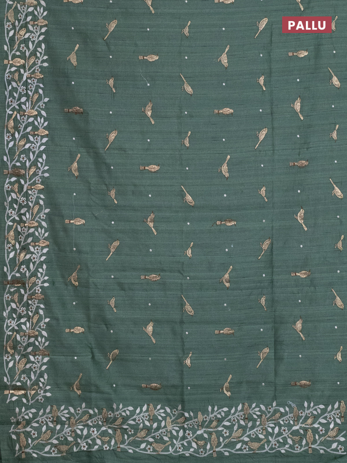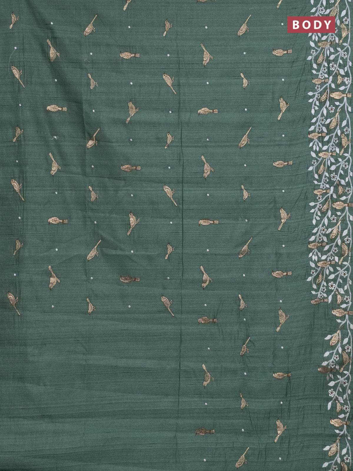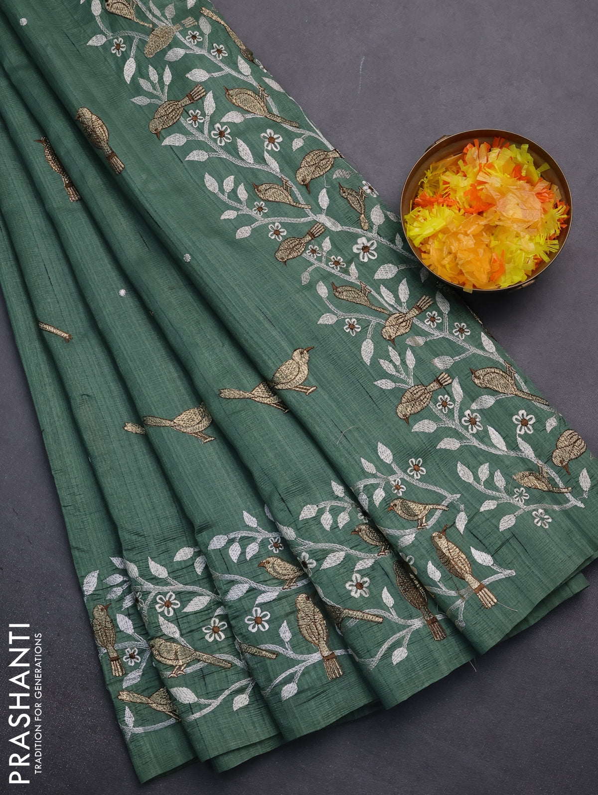 Semi raw silk saree green with embroidery work buttas and embroidery border