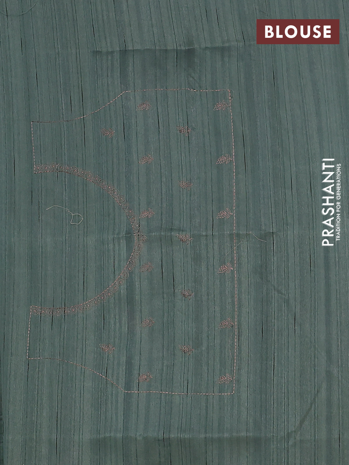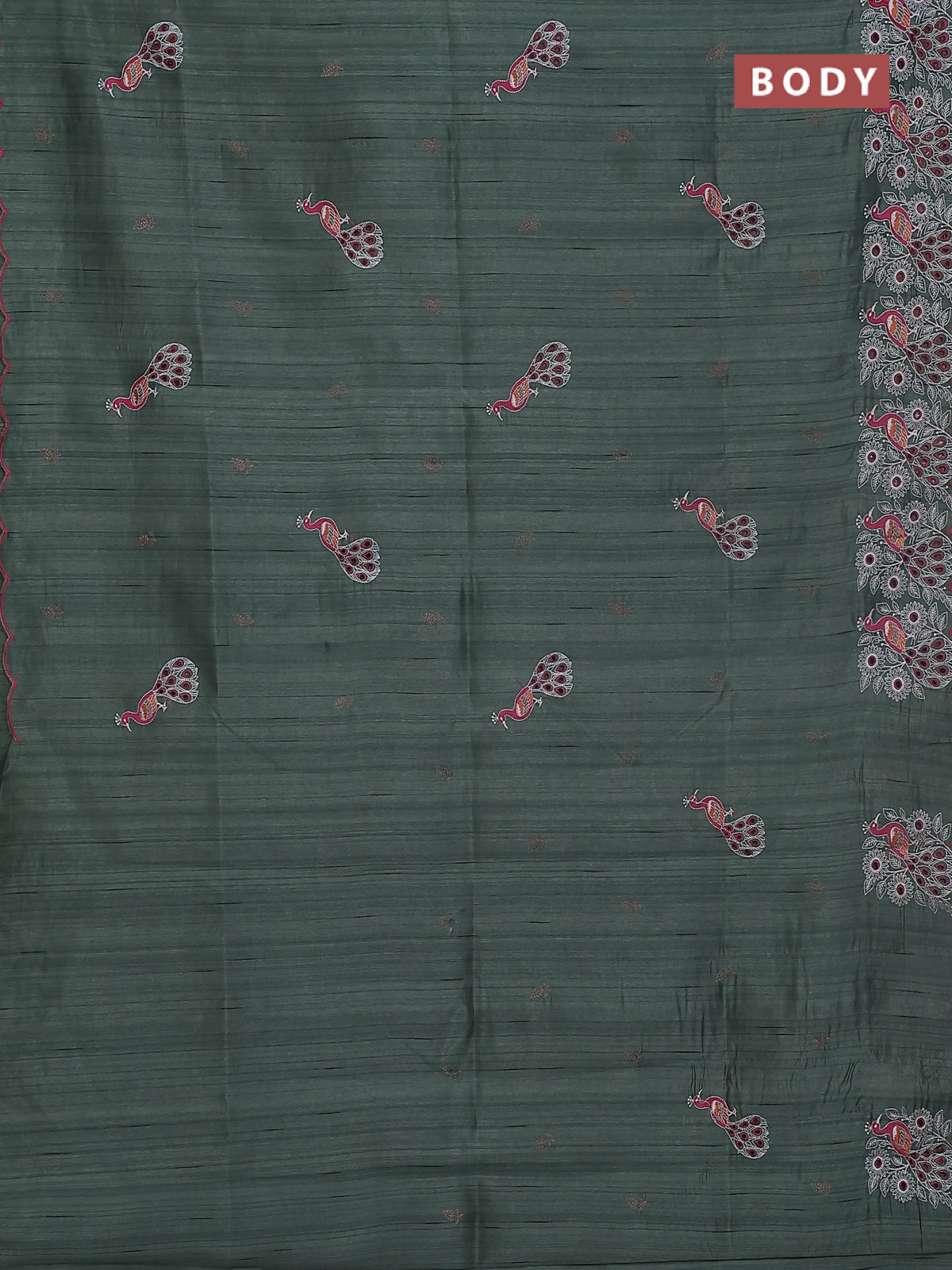 Semi raw silk saree greyish green with embroidery buttas and peacock embroidery cut work border