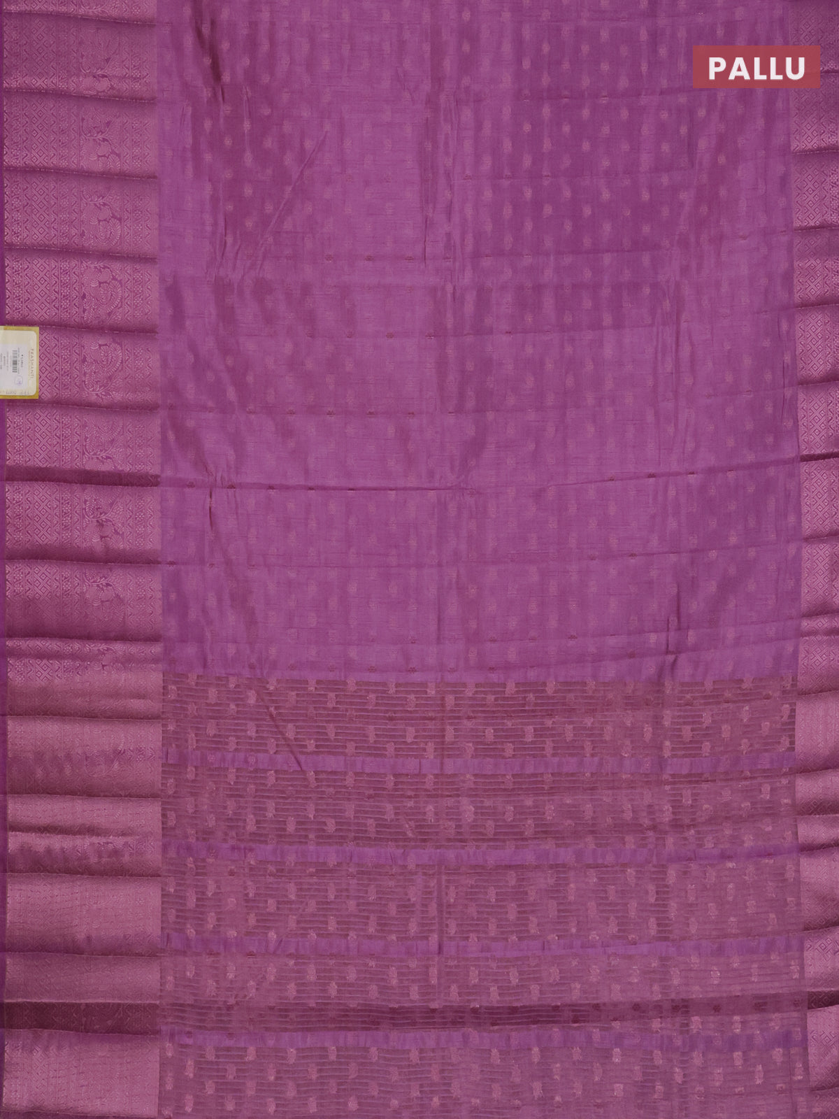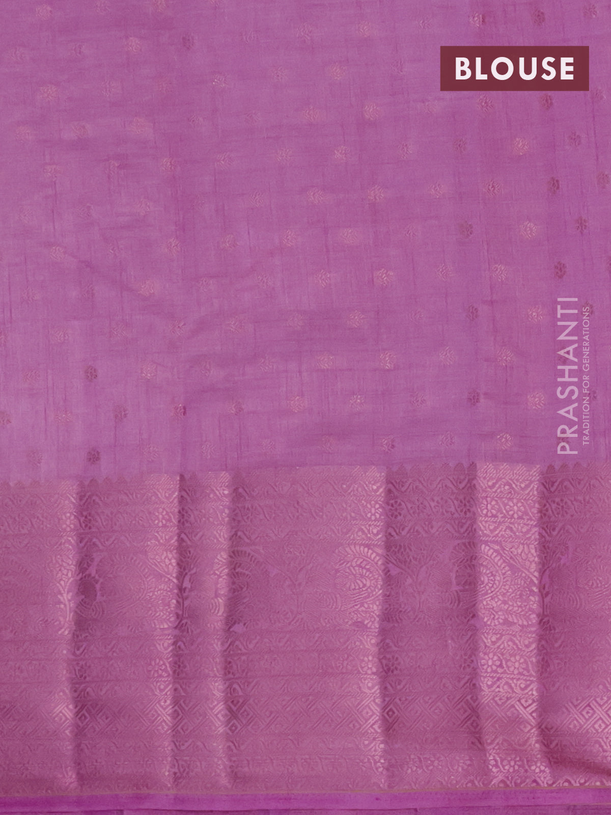 Semi raw silk saree lavender shade with allover pink zari woven buttas and pink zari woven border