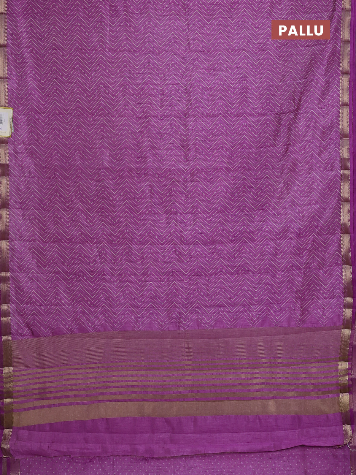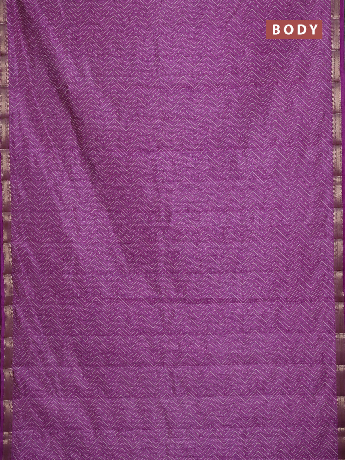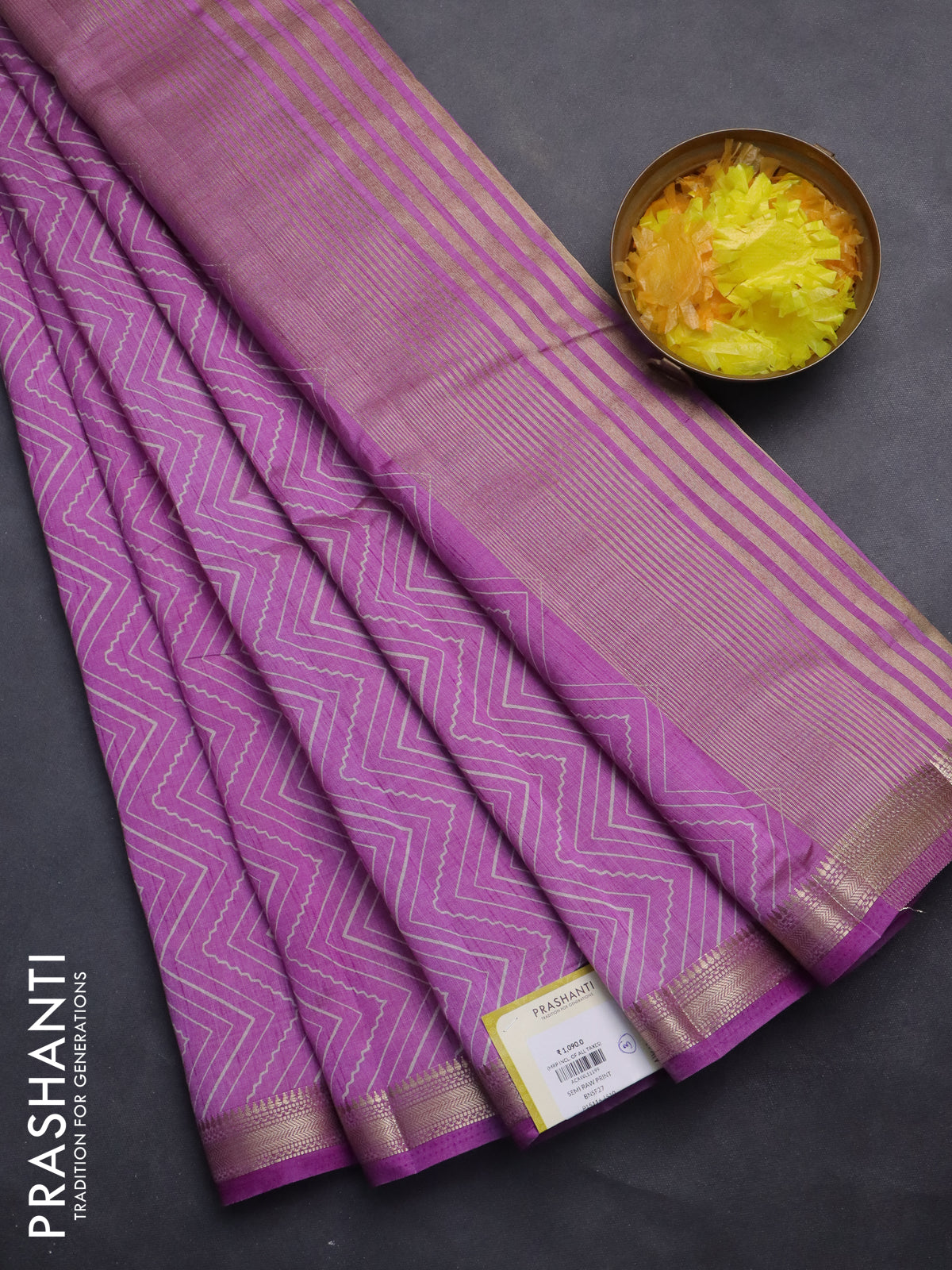 Semi raw silk saree lavender with allover zig zag prints and zari woven border