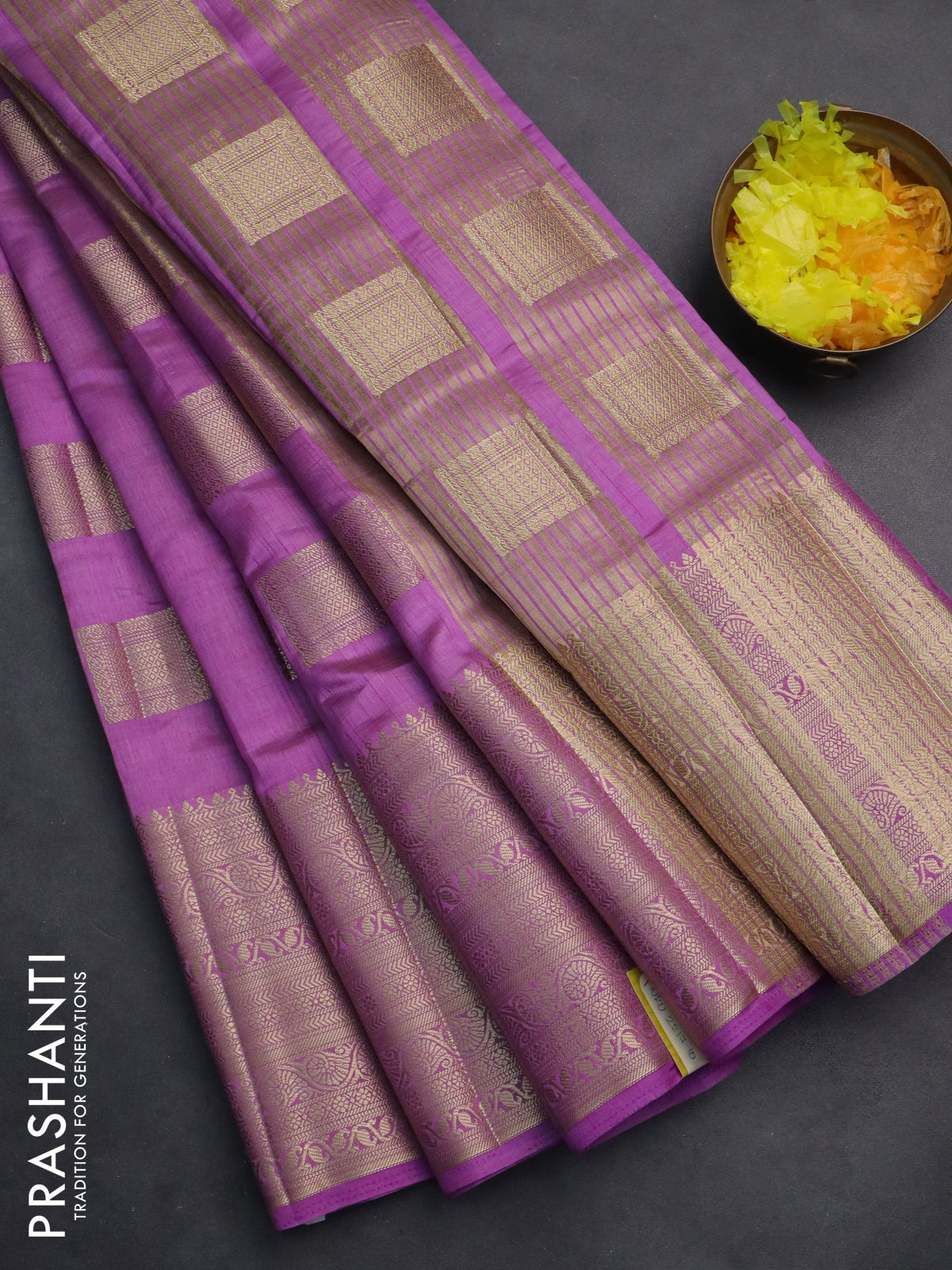 Semi raw silk saree lavender with zari woven box type buttas and long zari woven border