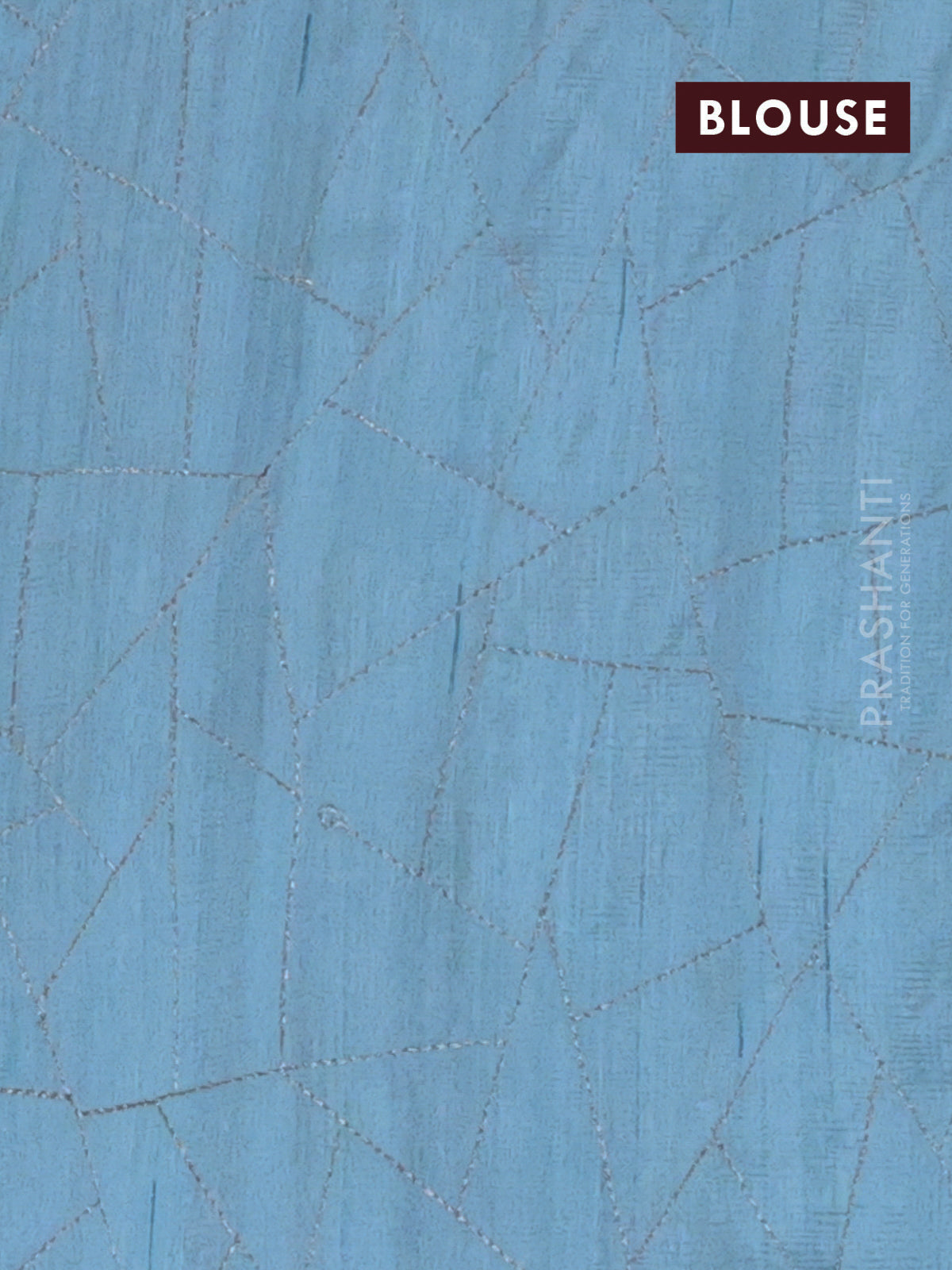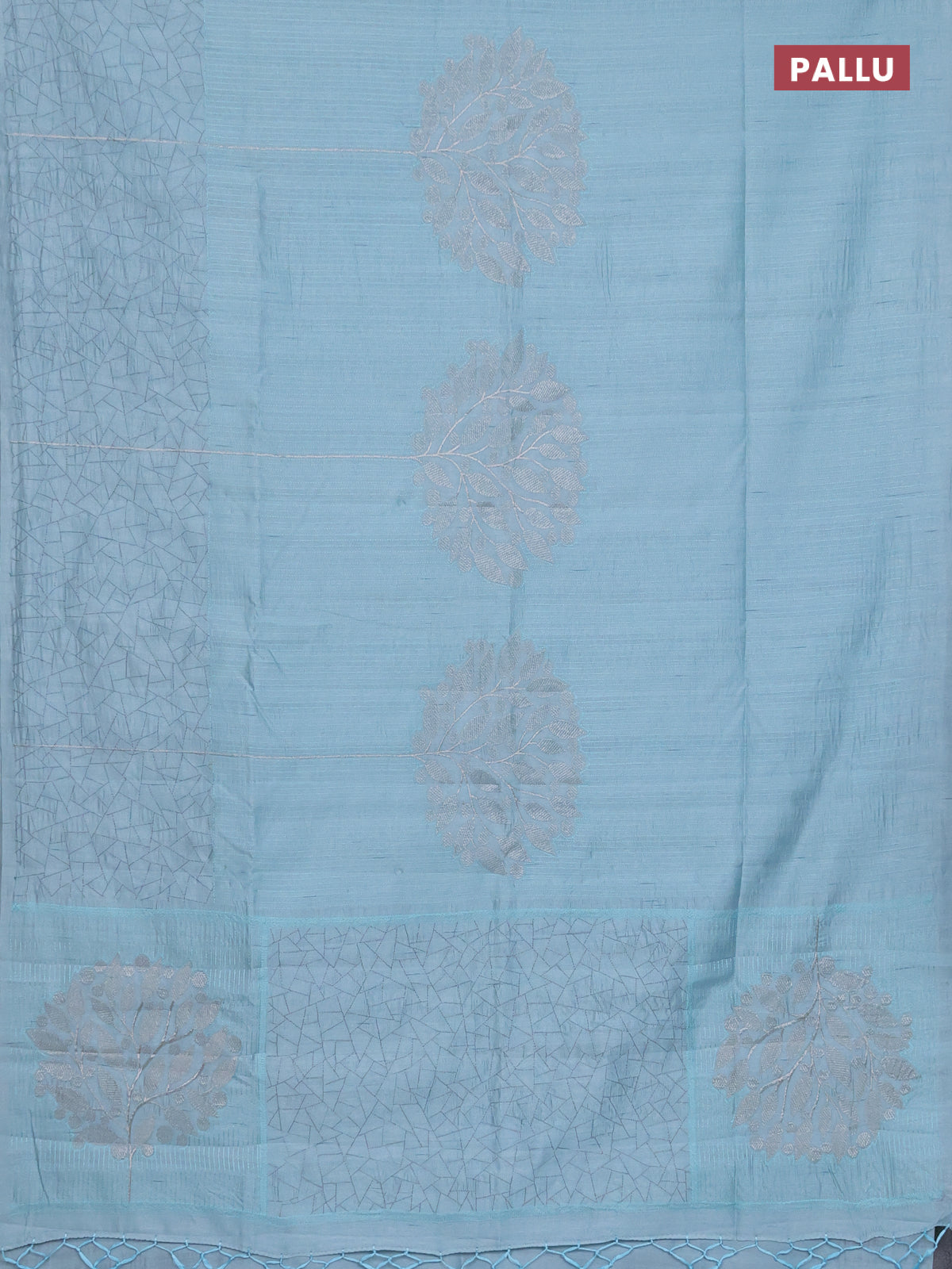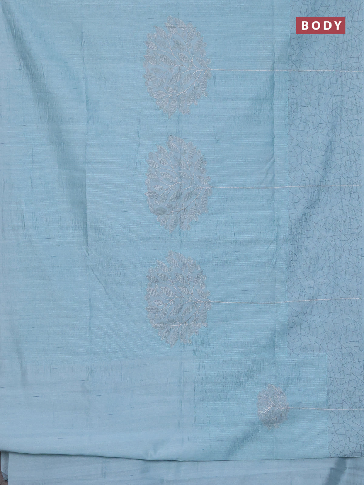 Semi raw silk saree light blue with embroidery work buttas and silver zari woven border