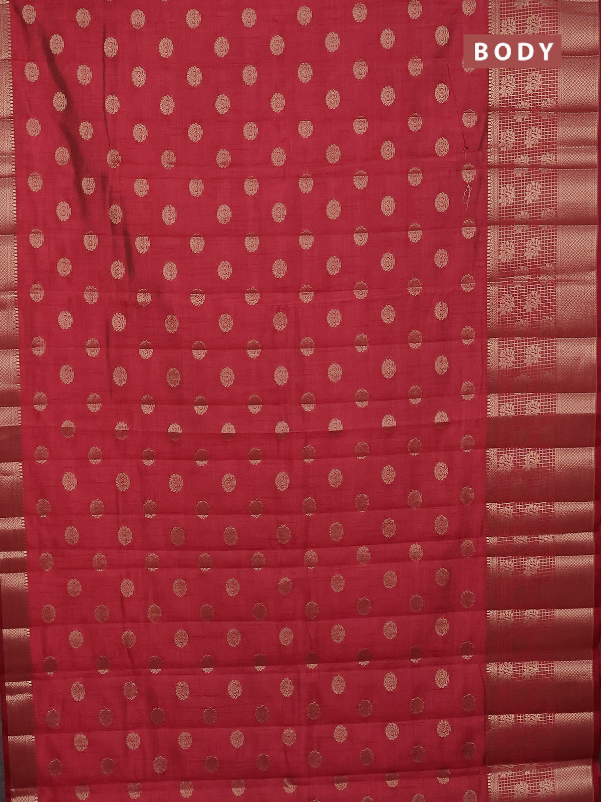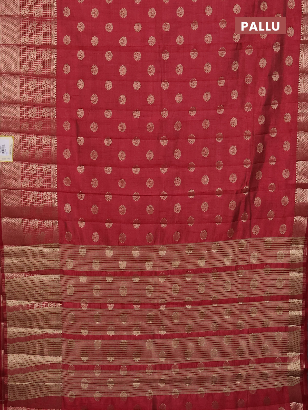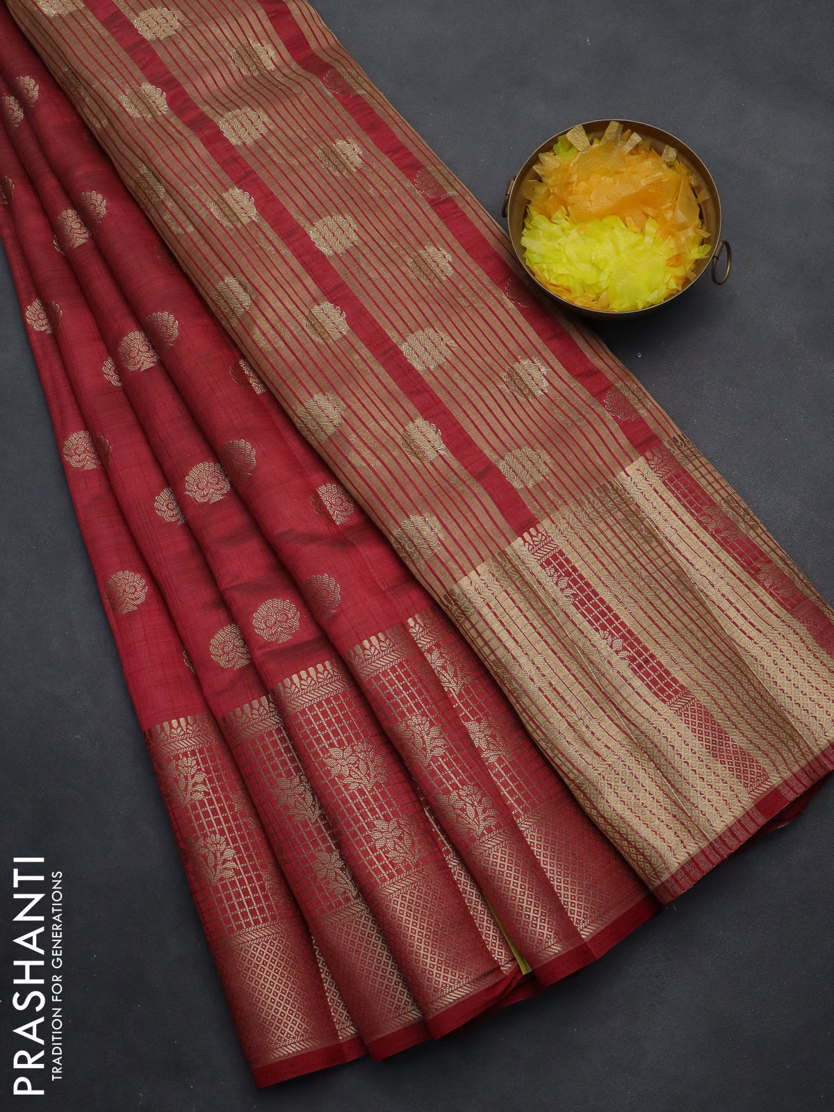 Semi raw silk saree maroon with allover zari woven 1000 buttas and long zari woven border