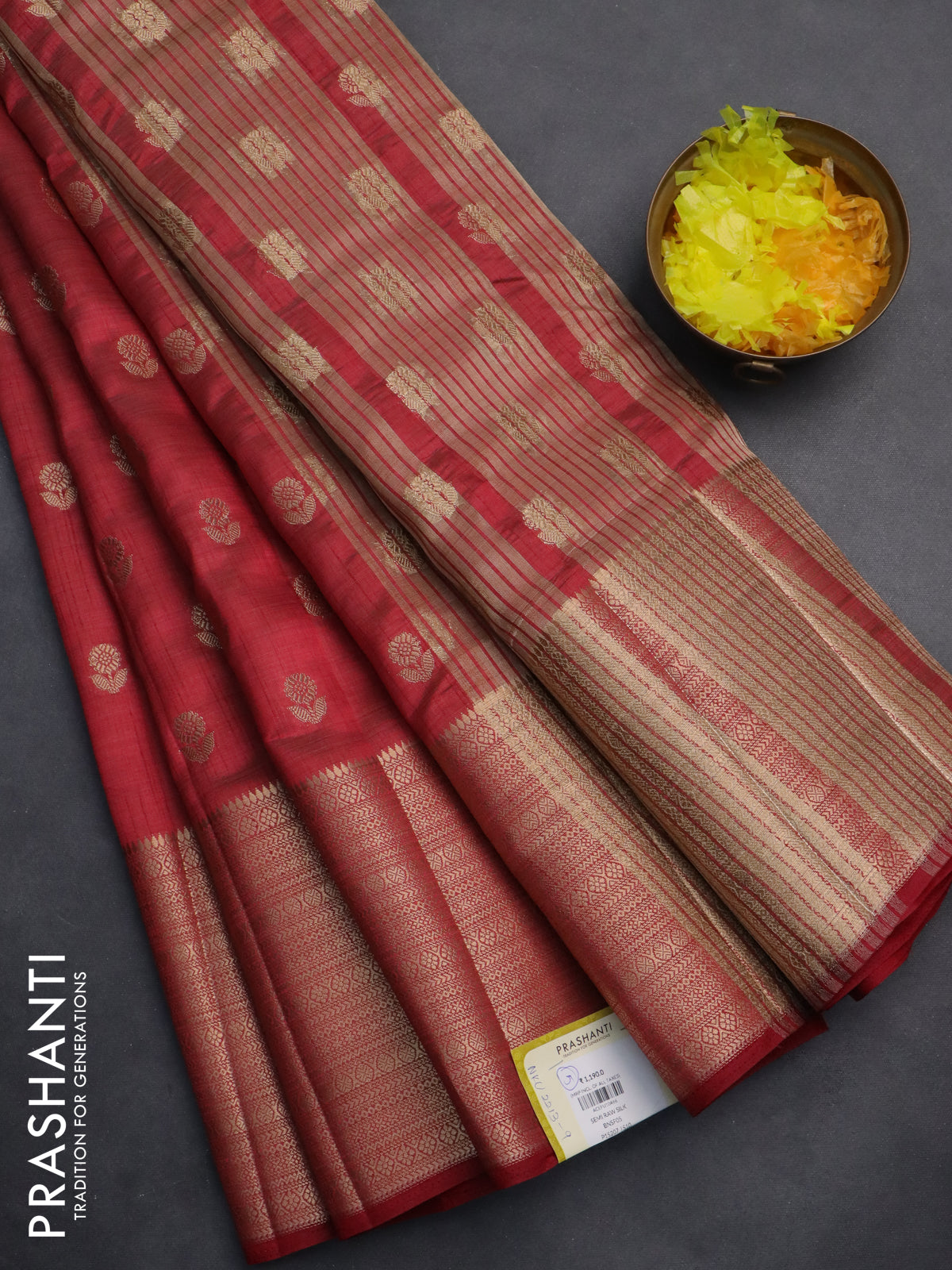 Semi raw silk saree maroon with allover zari woven floral design 1000 buttas and long zari woven border