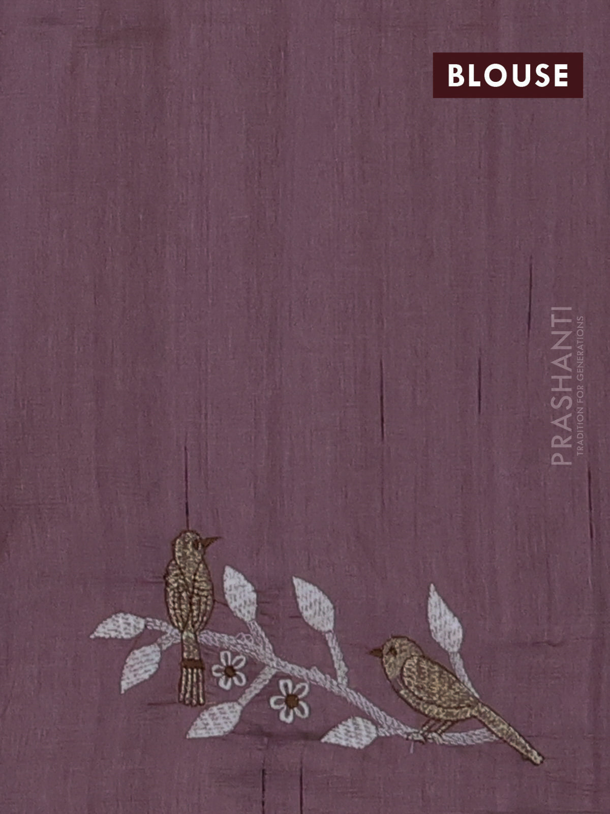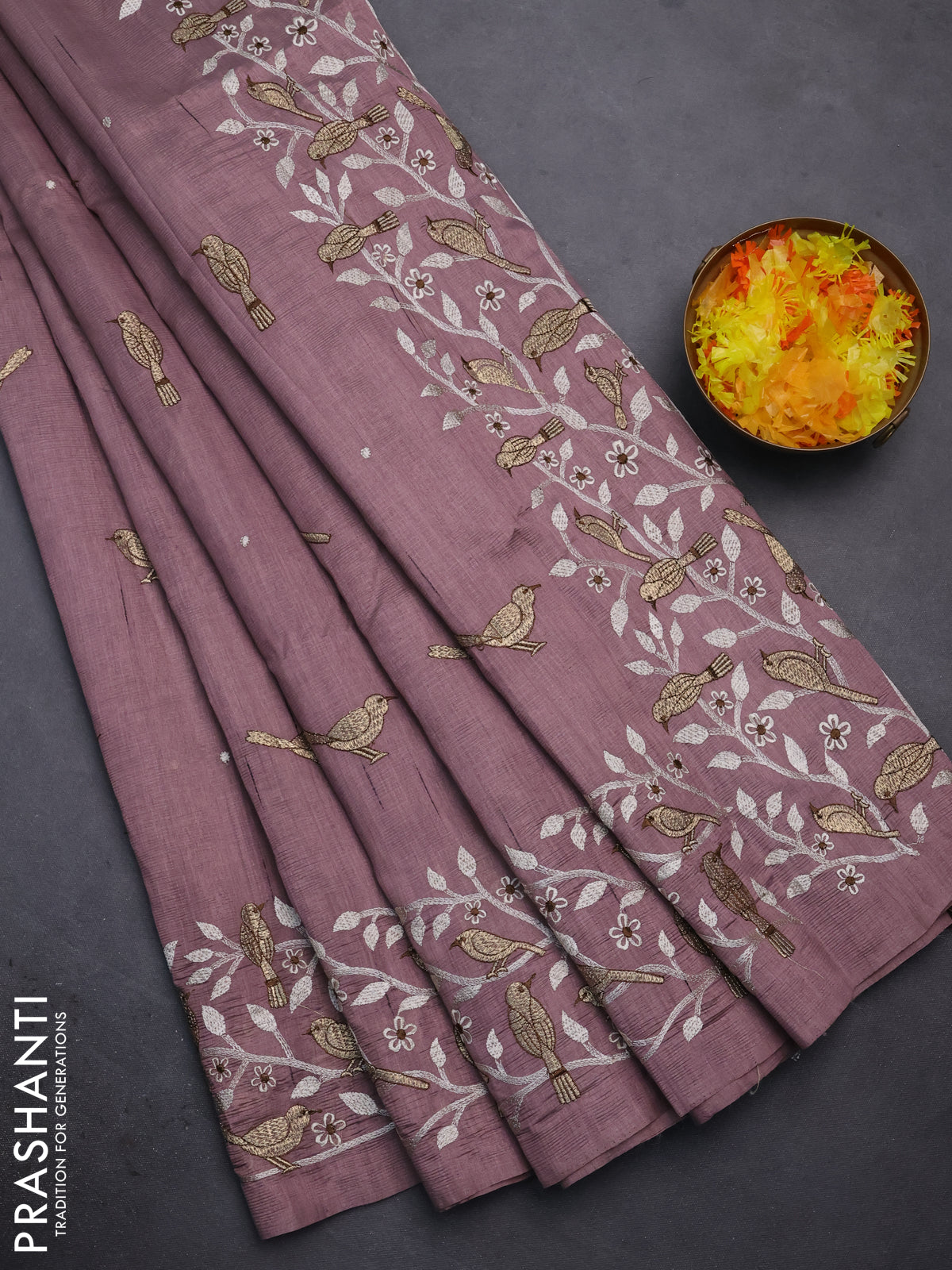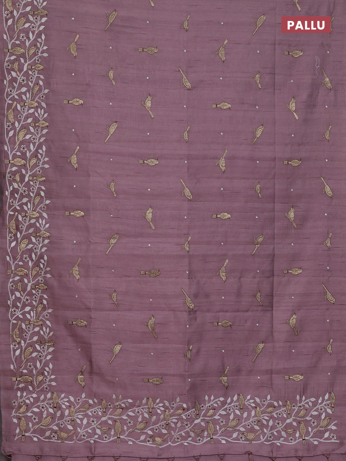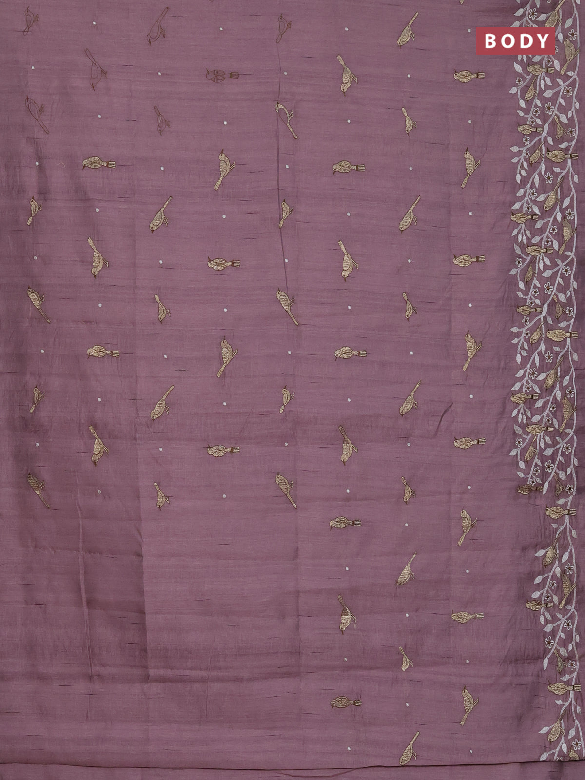 Semi raw silk saree mauve pink with embroidery work buttas and embroidery border
