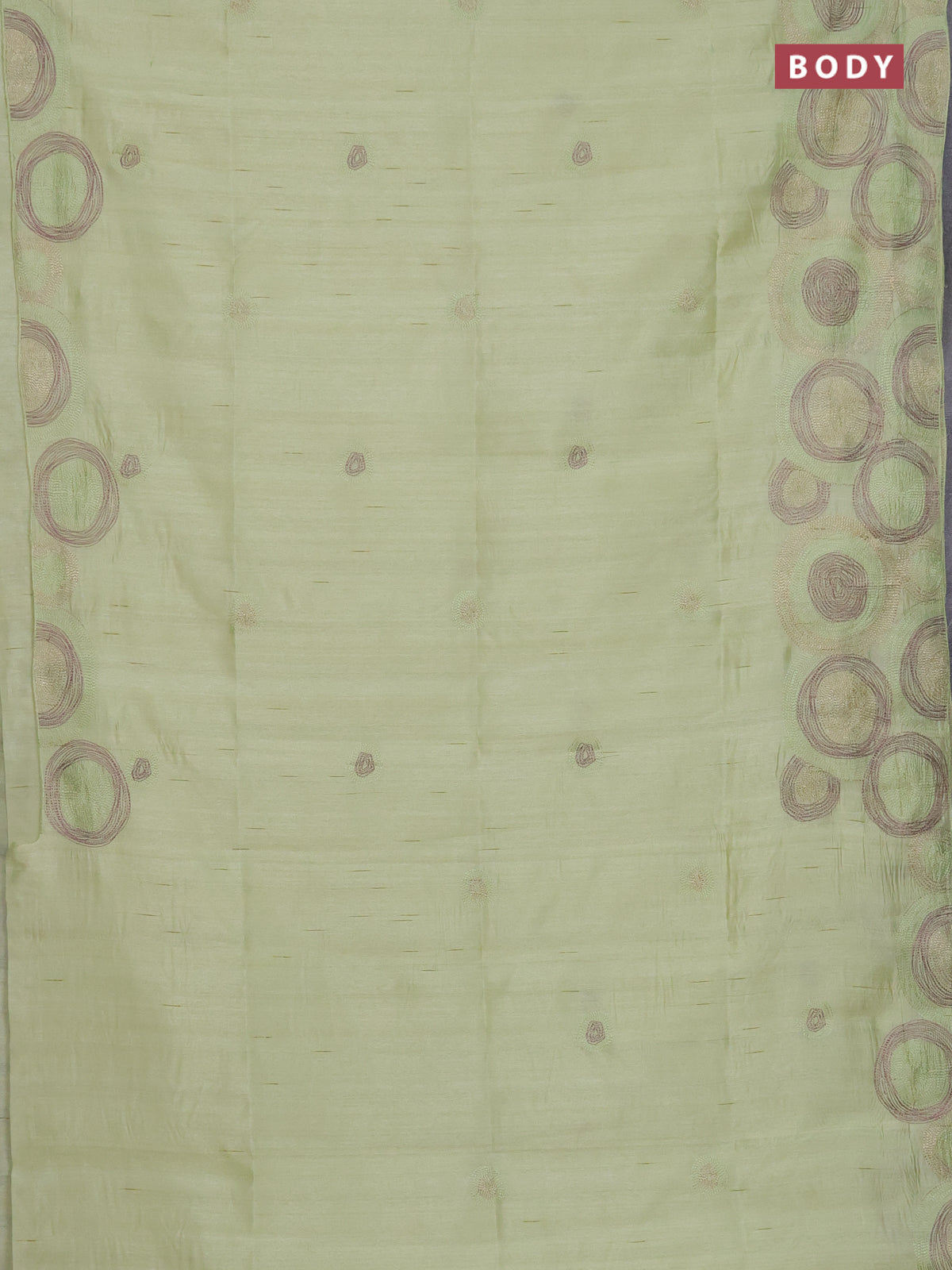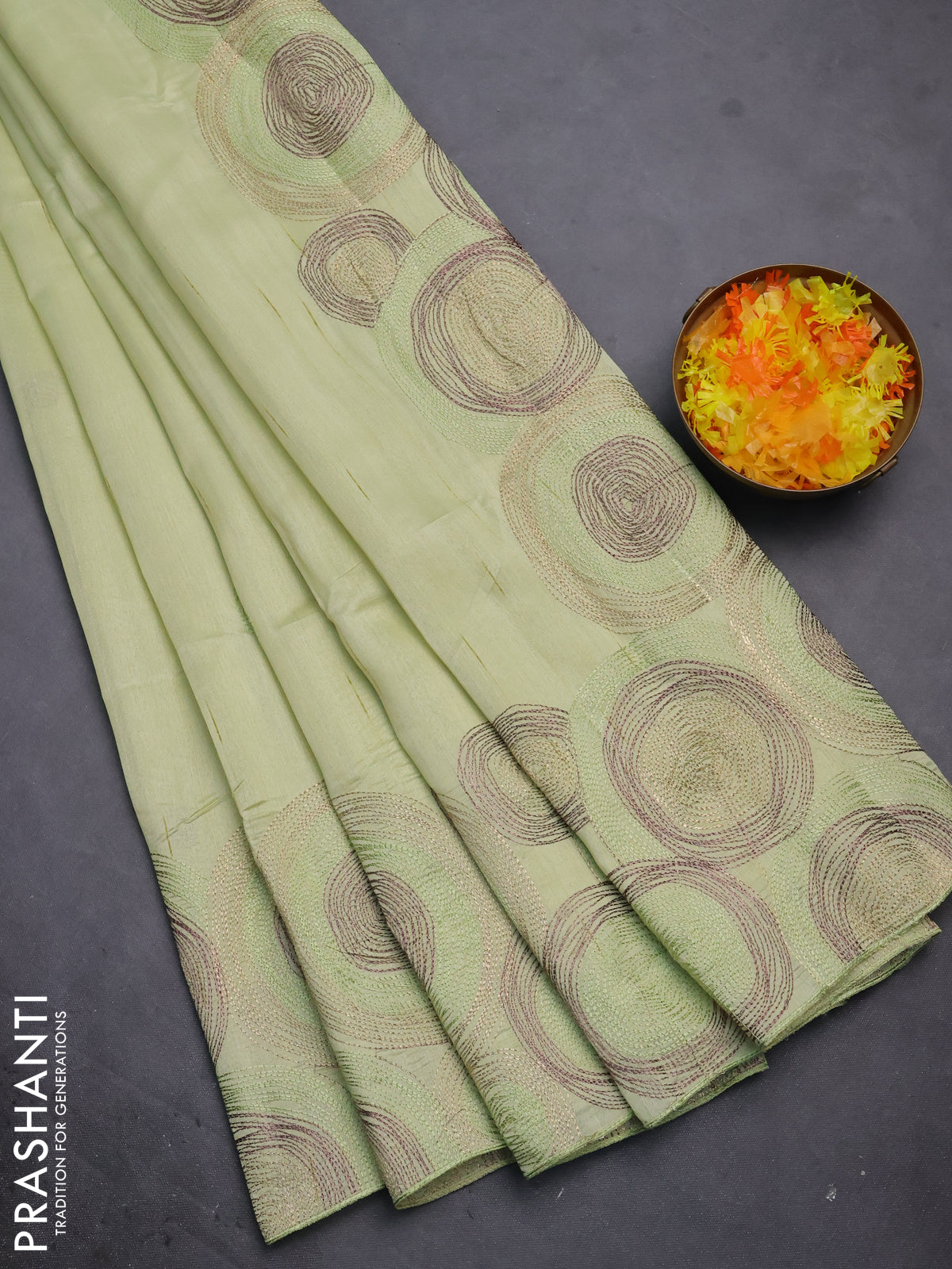 Semi raw silk saree mild pista green with embroidery work buttas and geometric design embroidery border