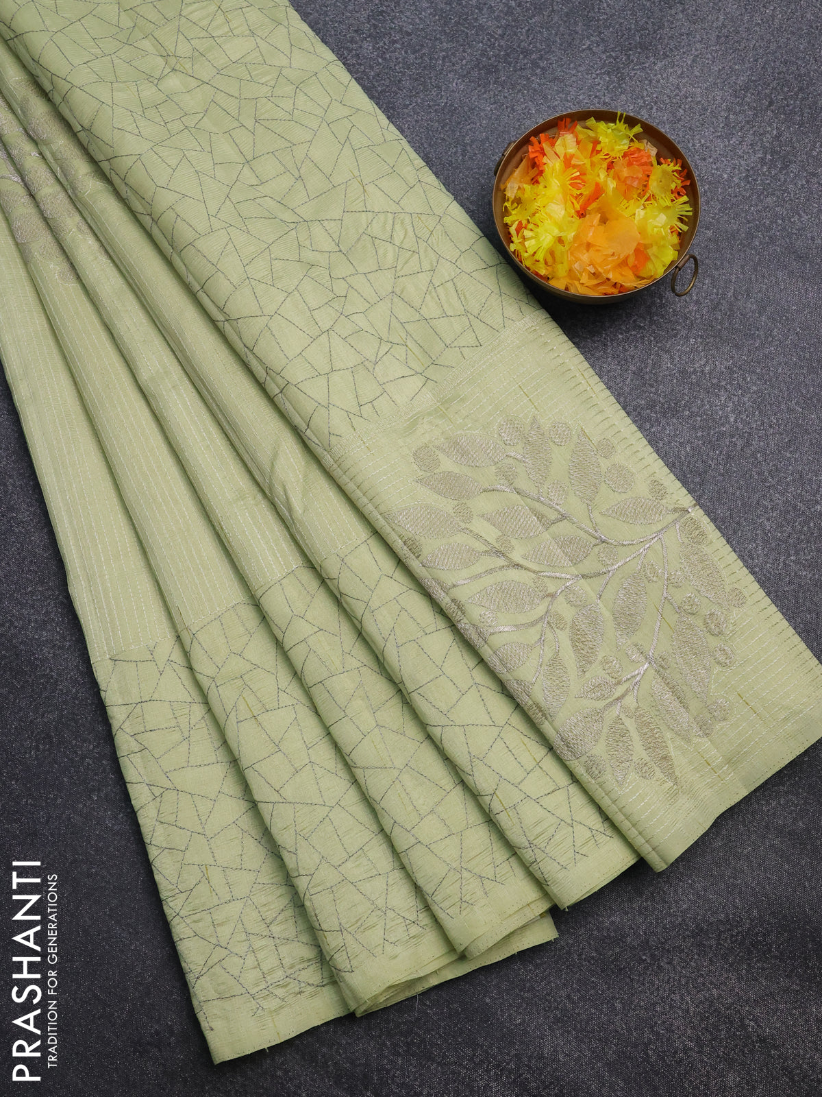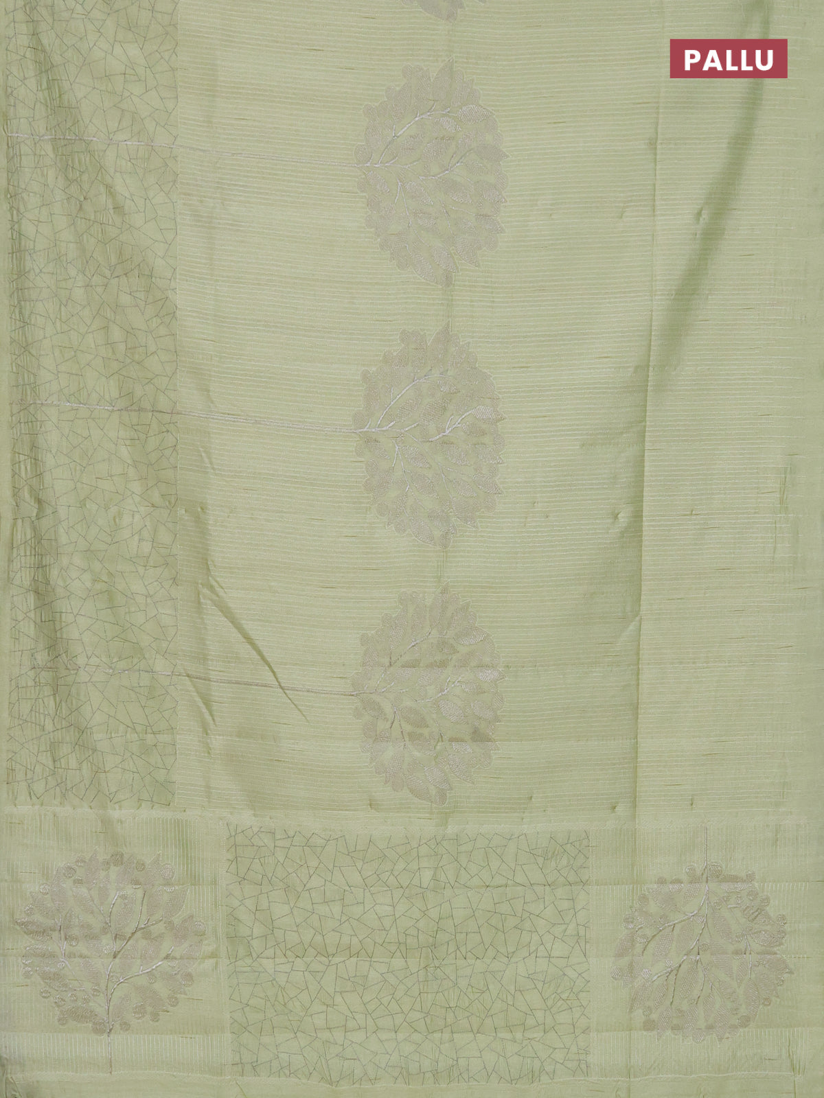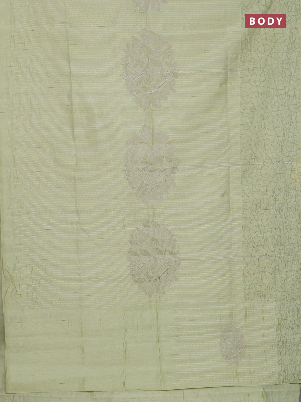 Semi raw silk saree mild pista green with embroidery work buttas and silver zari woven border