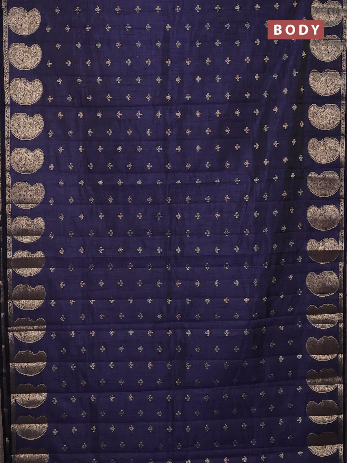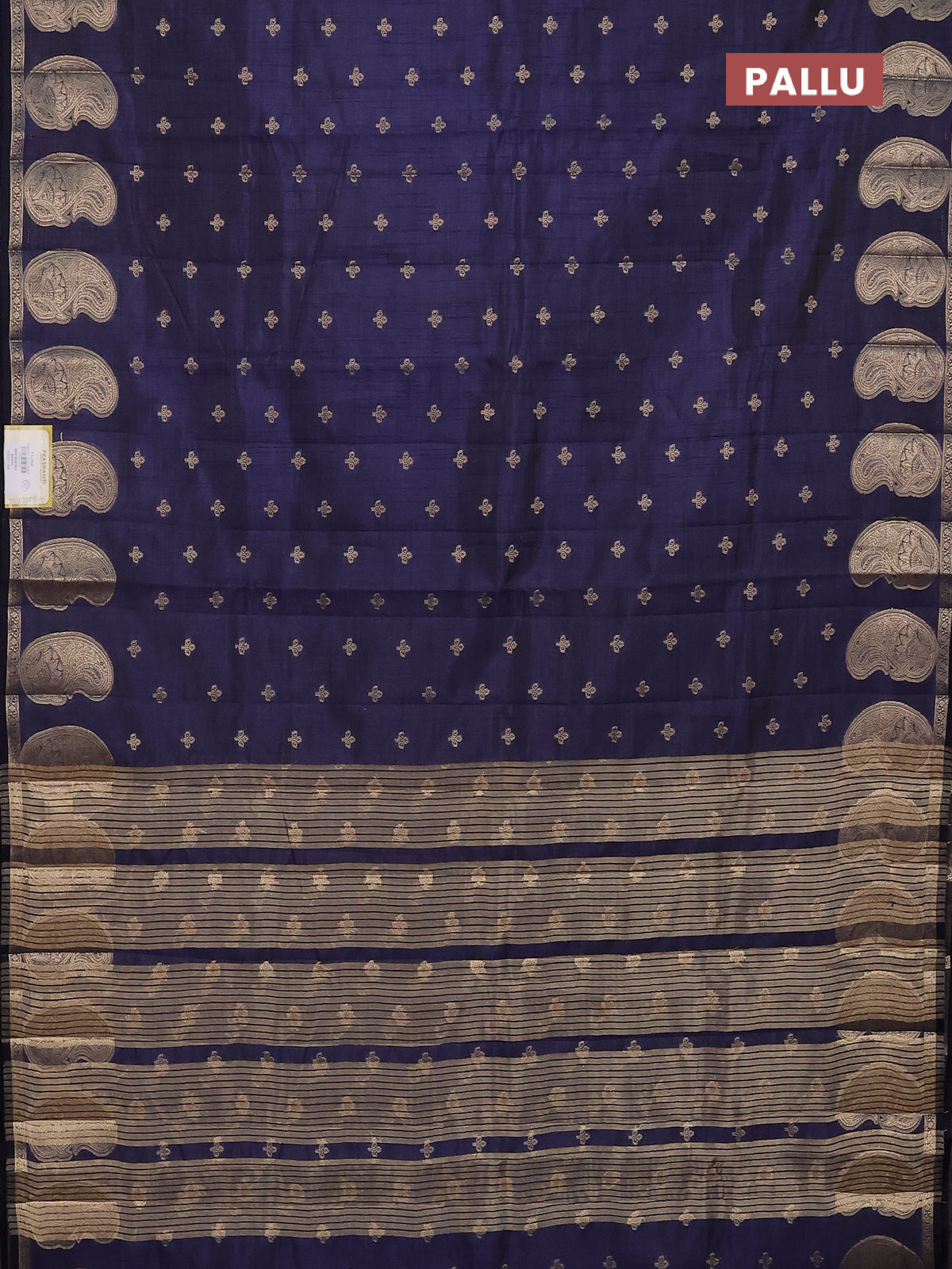 Semi raw silk saree navy blue with allover zari woven 1000 buttas and paisley zari woven butta border