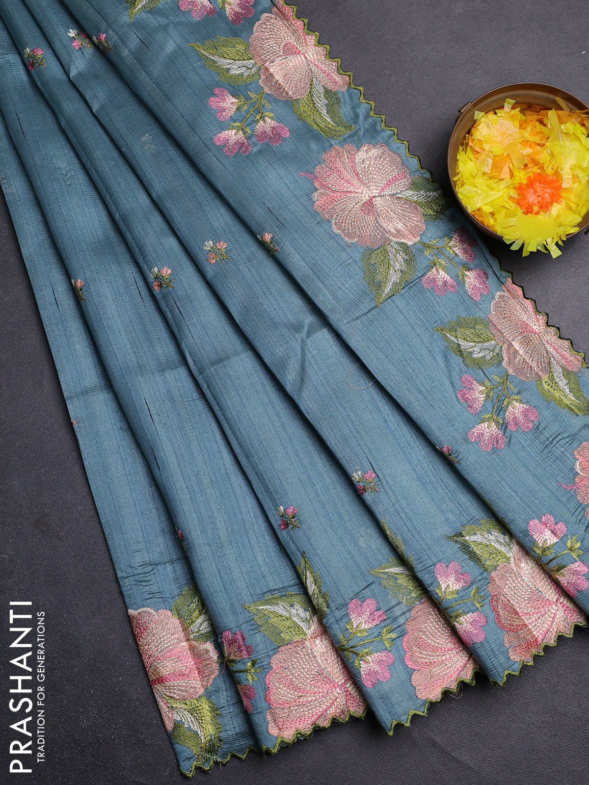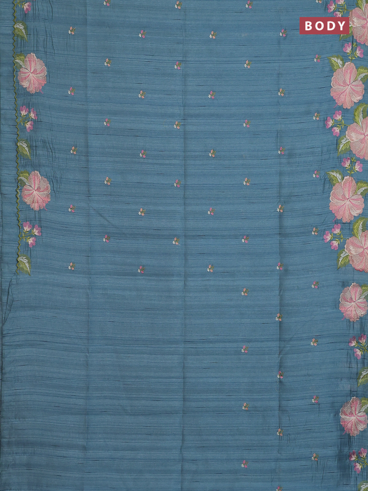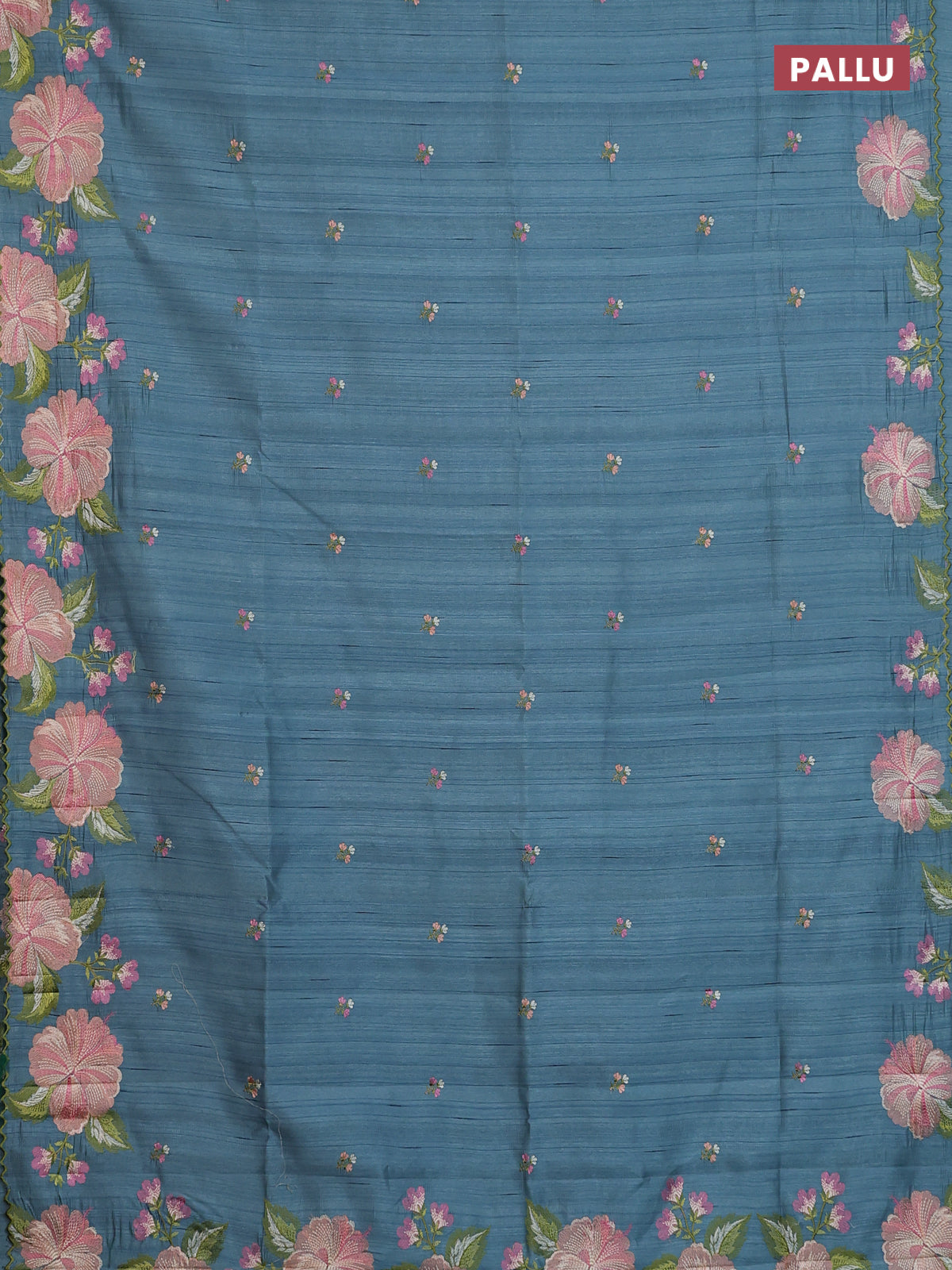 Semi raw silk saree pastel blue shade with embroidery buttas and floral embroidery border