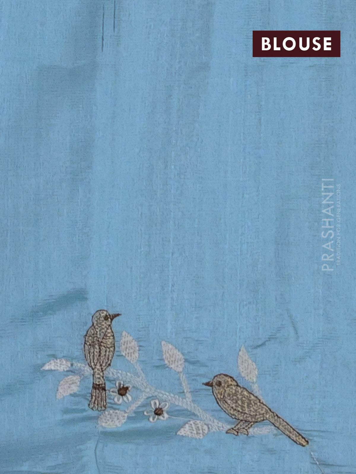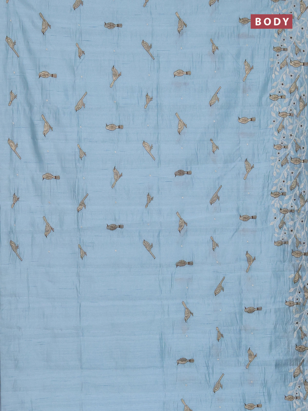 Semi raw silk saree pastel blue with embroidery work buttas and embroidery border