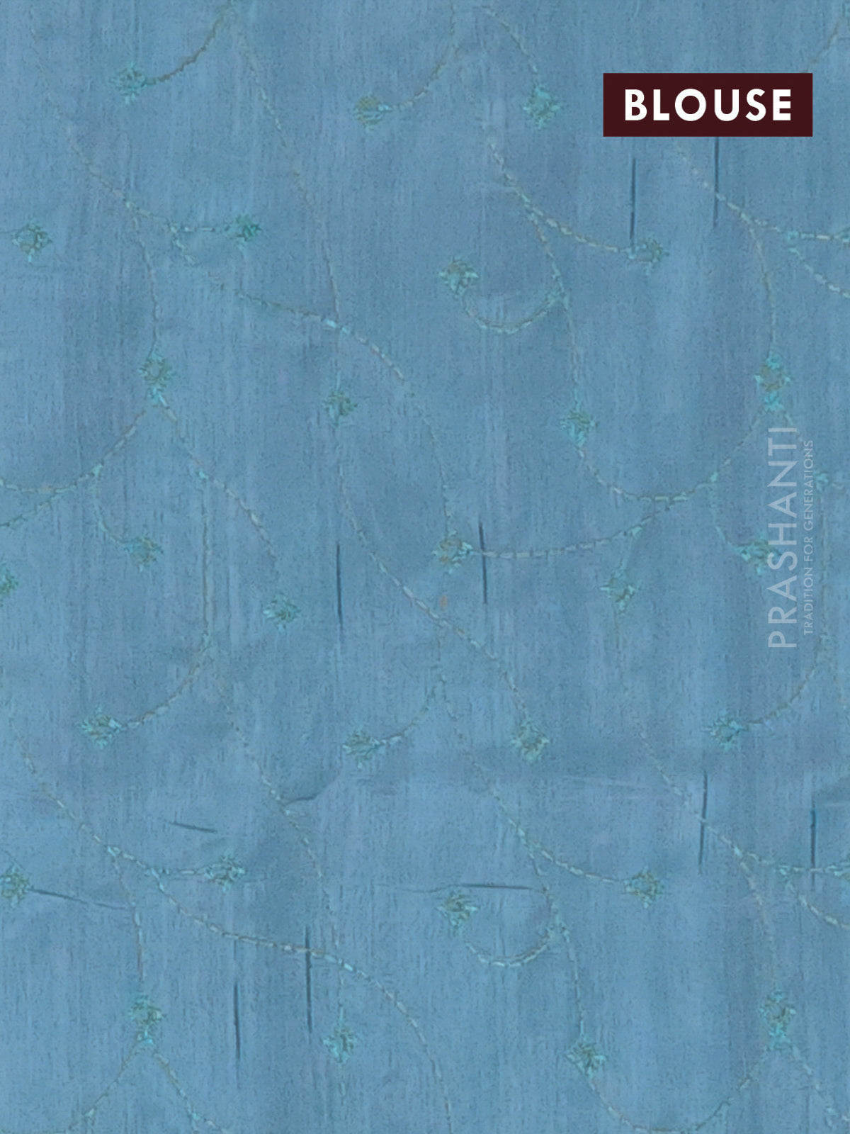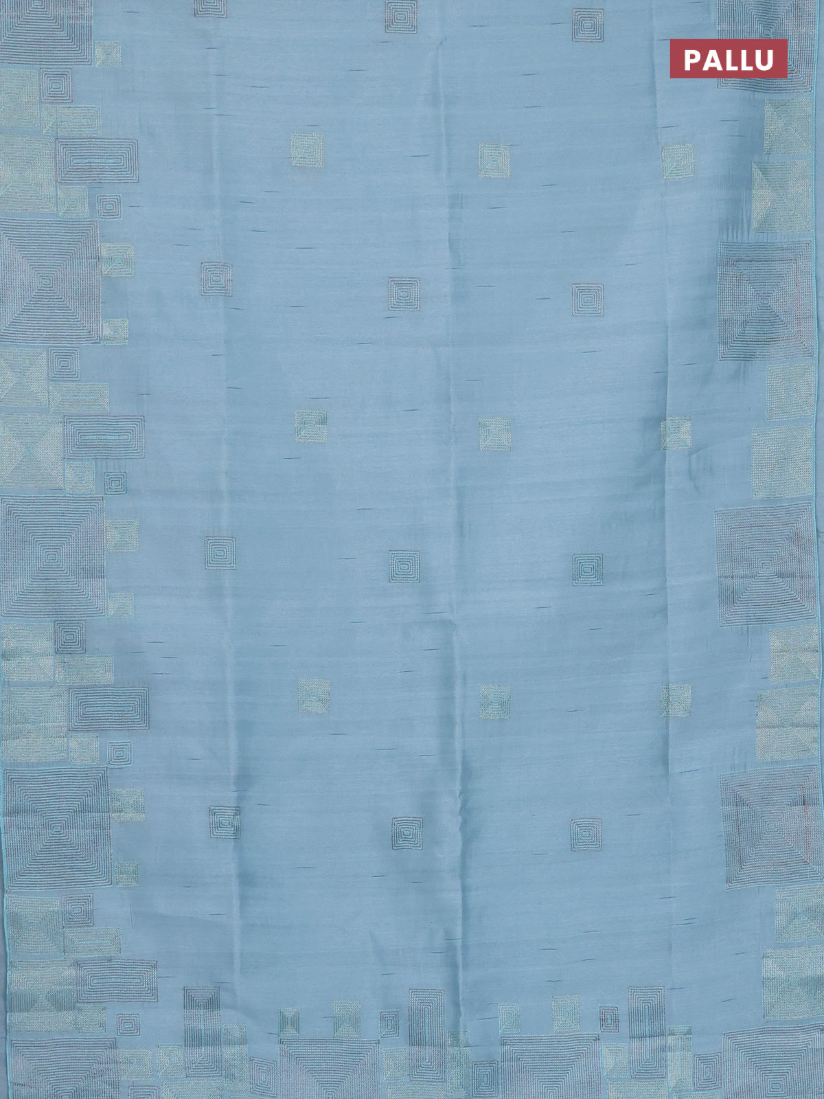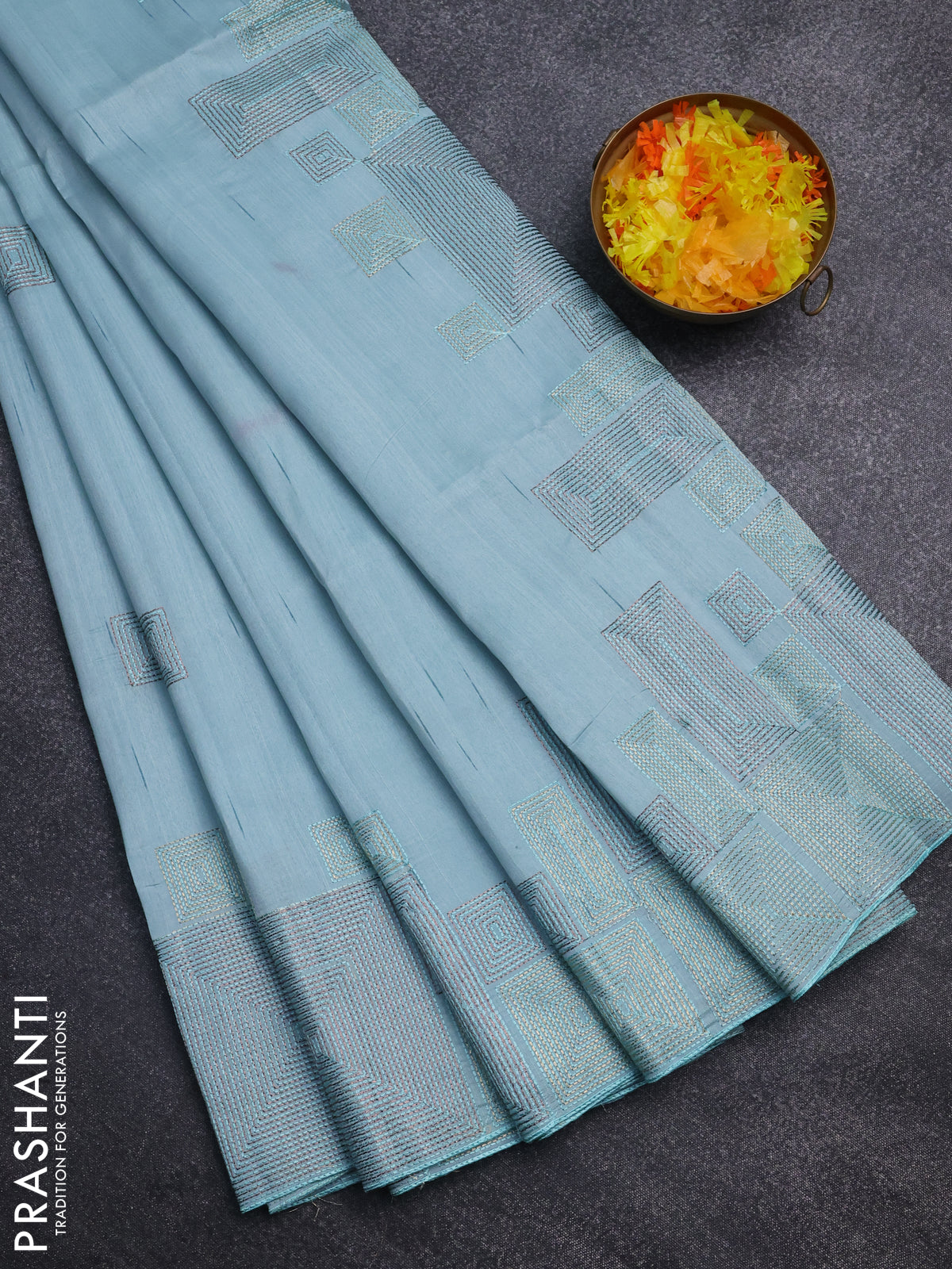 Semi raw silk saree pastel blue with embroidery work buttas and geometric design embroidery border
