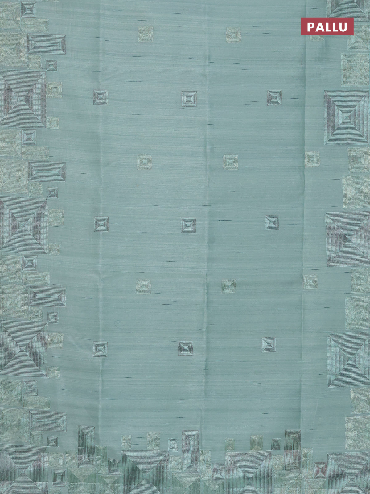 Semi raw silk saree pastel green with embroidery work buttas and geometric design embroidery border