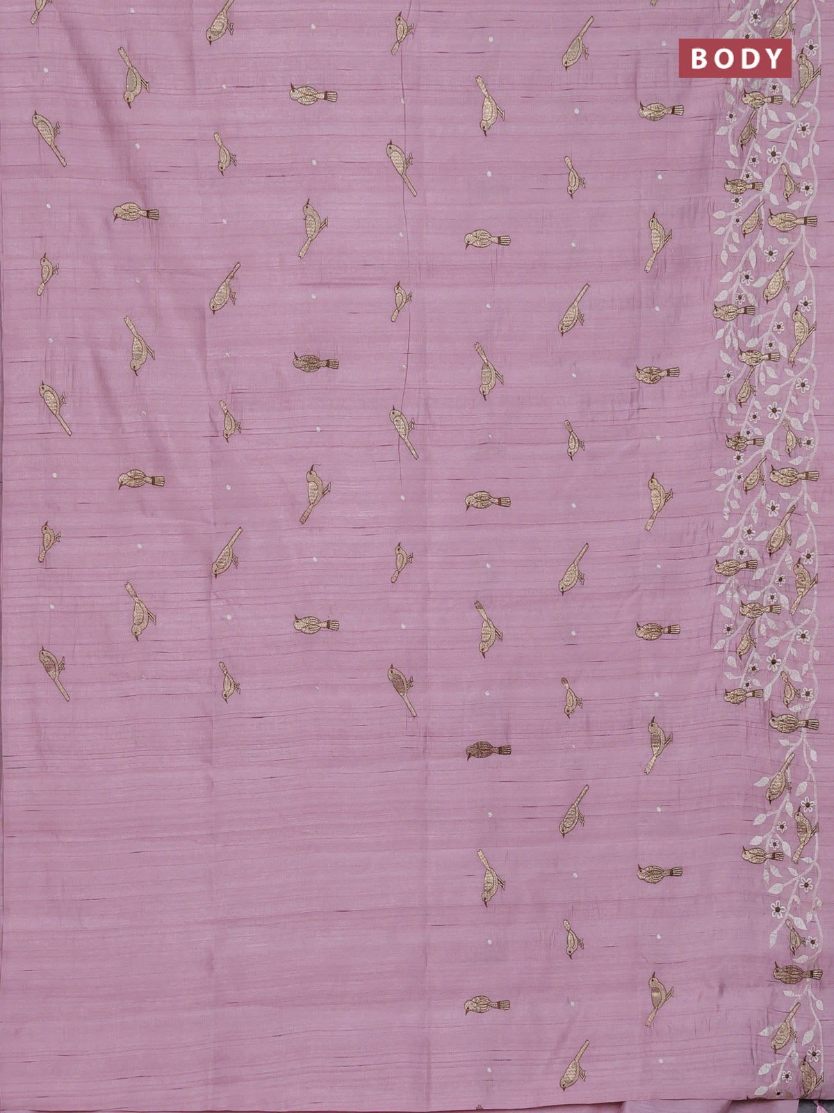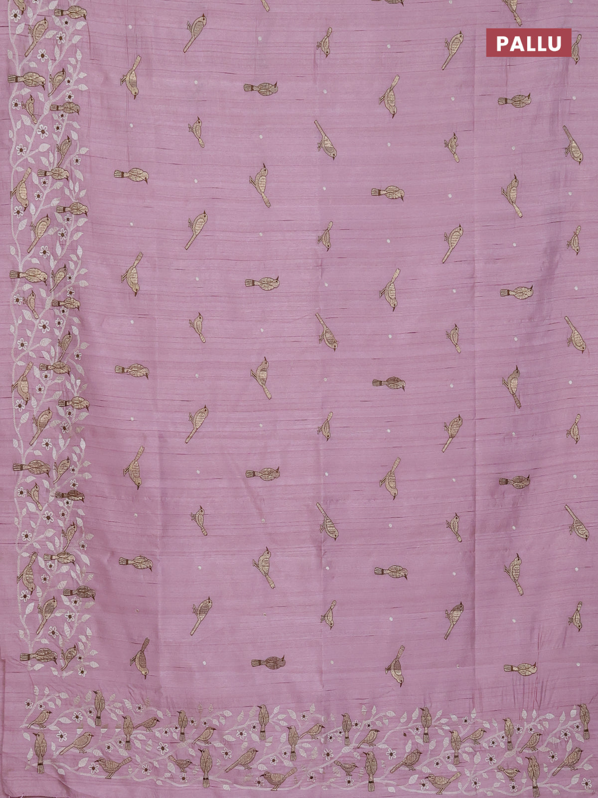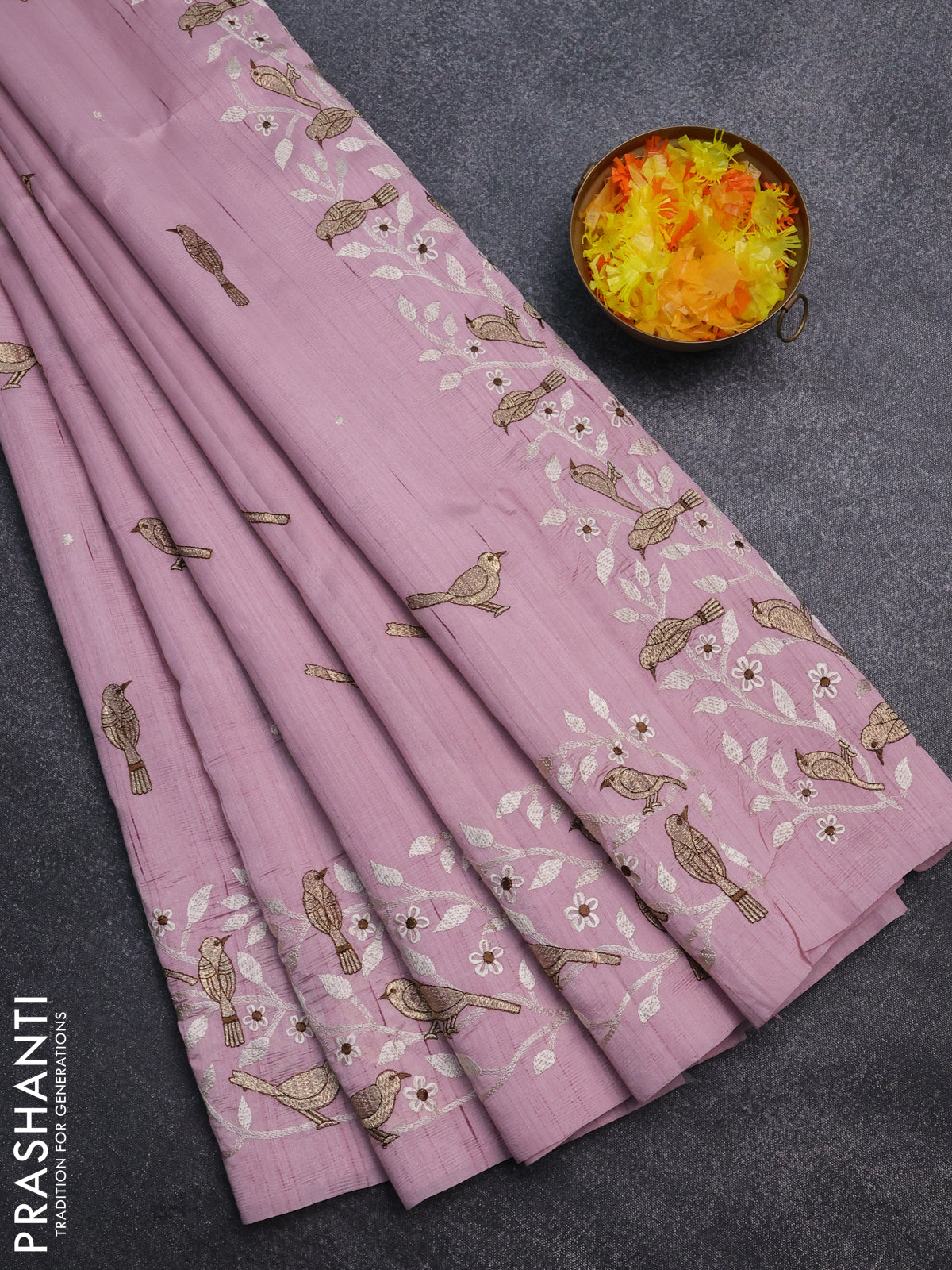 Semi raw silk saree pastel pink with embroidery work buttas and embroidery border