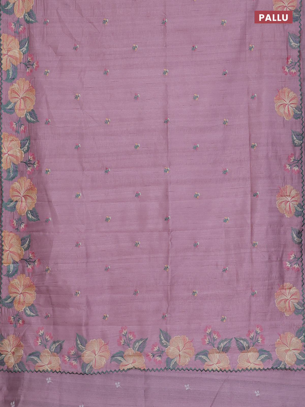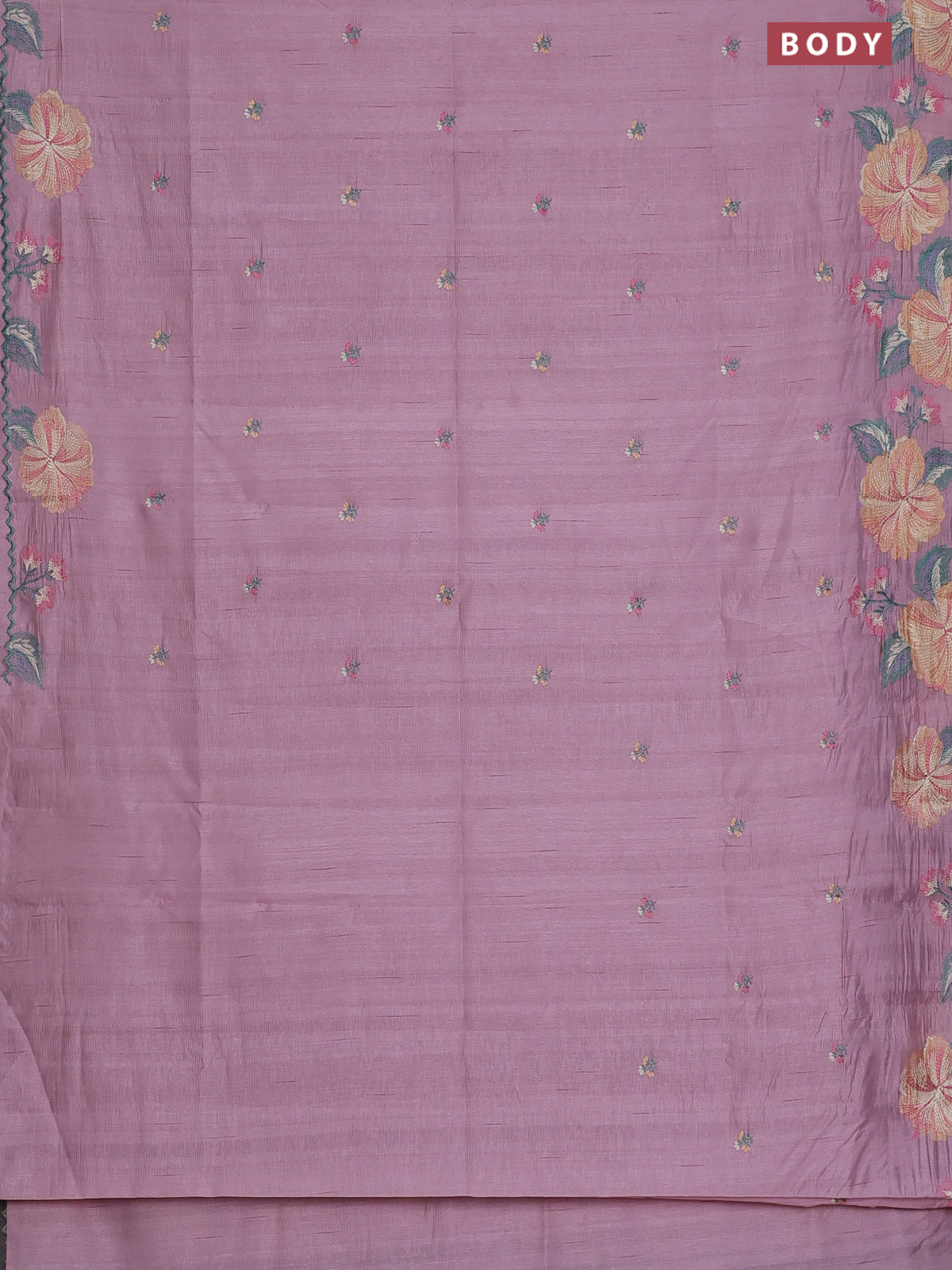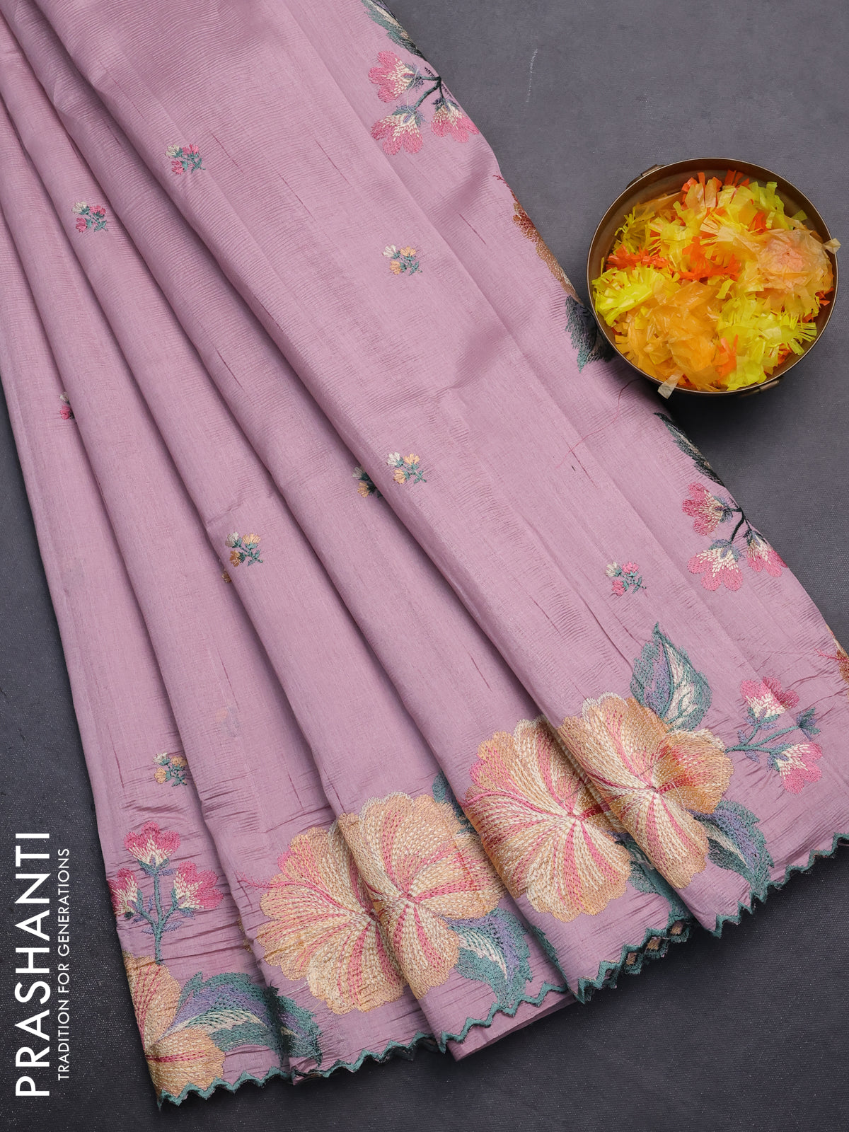 Semi raw silk saree pastel pink with embroidery work buttas and floral embroidery border