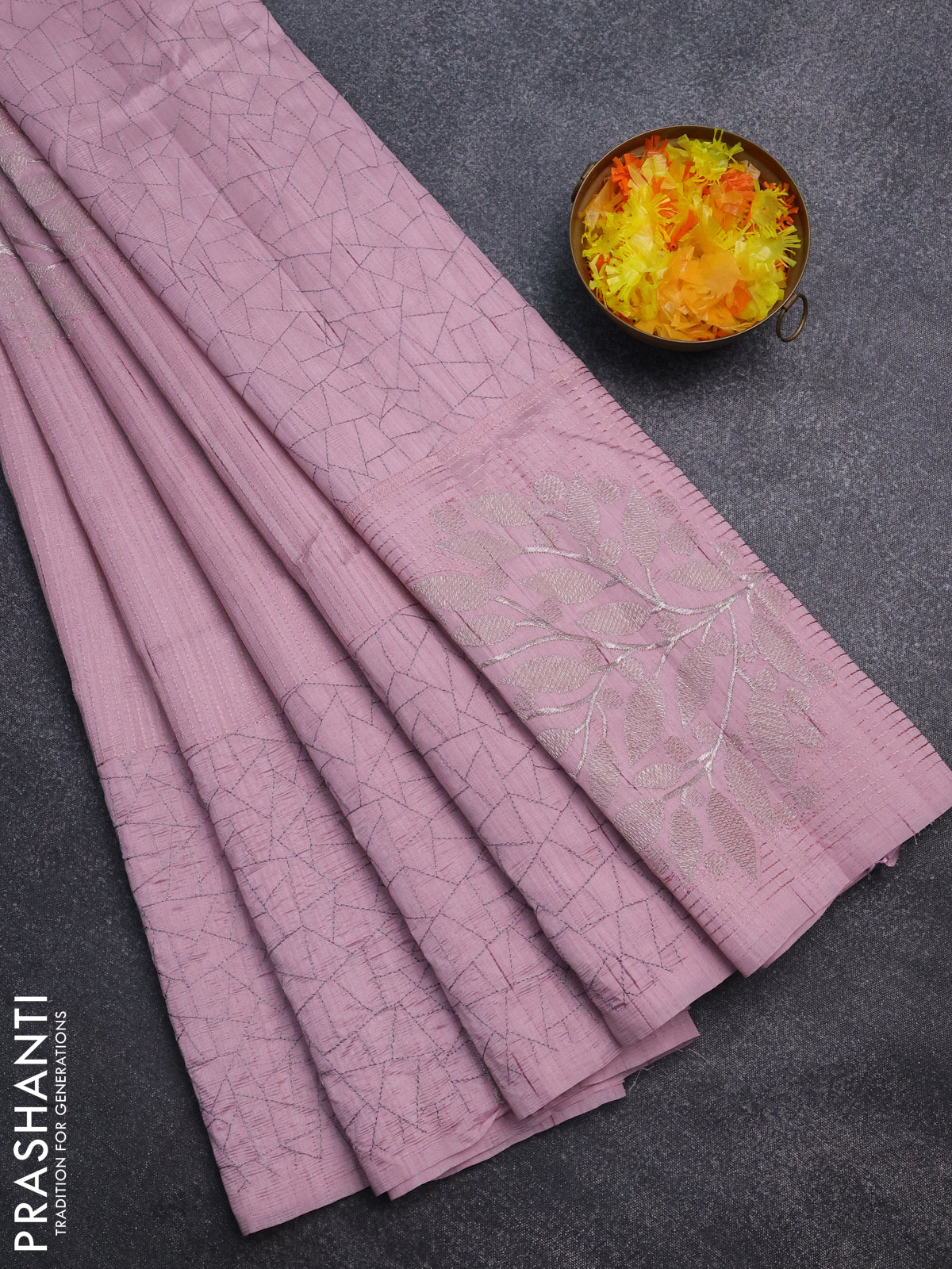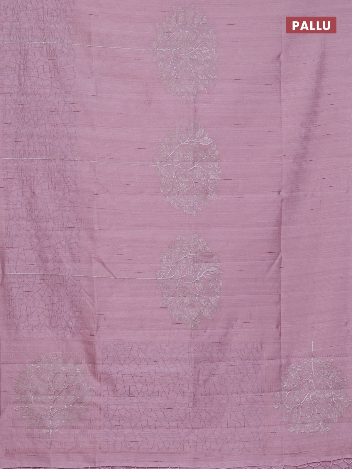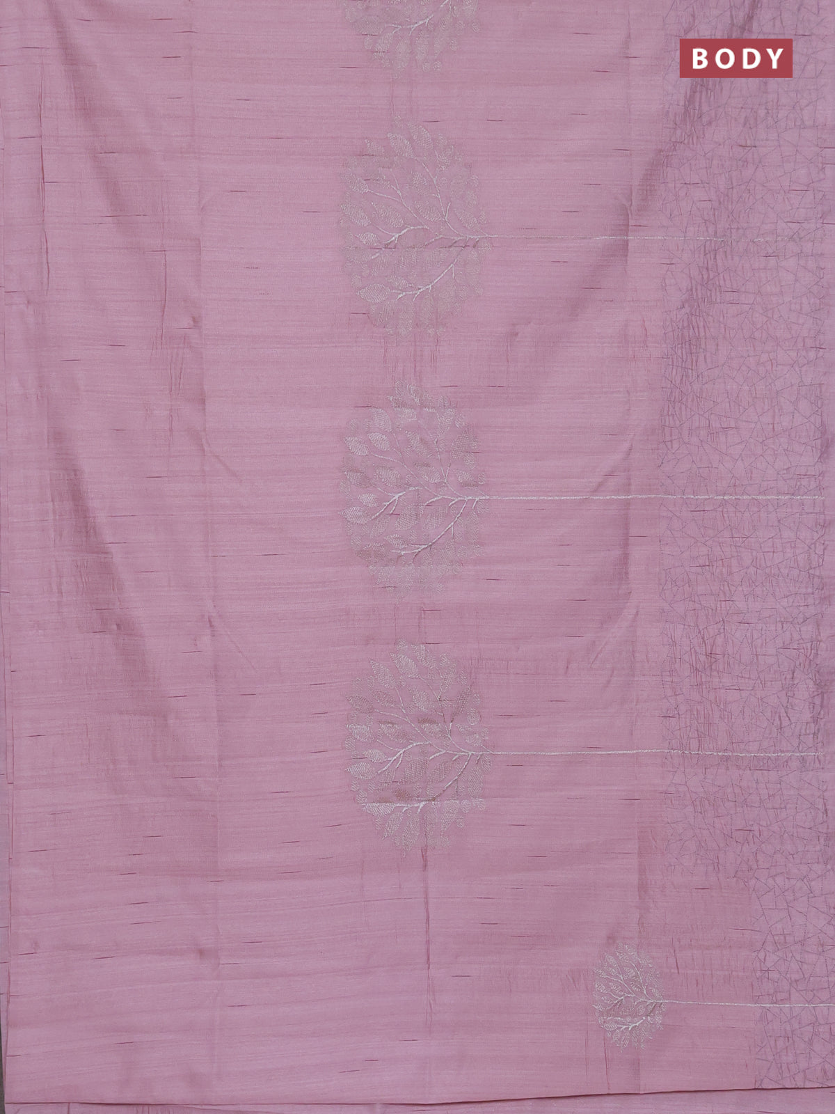 Semi raw silk saree pastel pink with embroidery work buttas and silver zari woven border