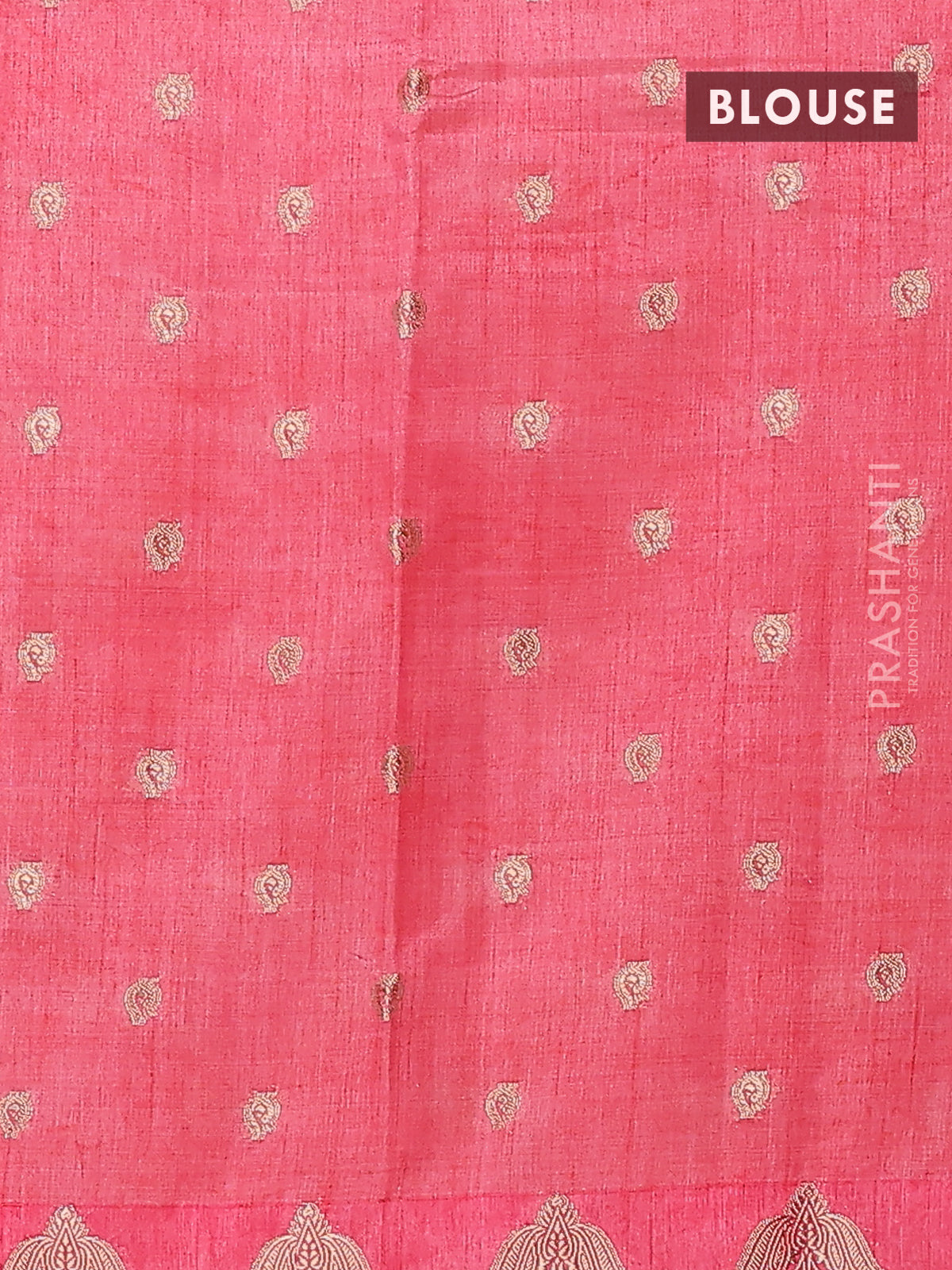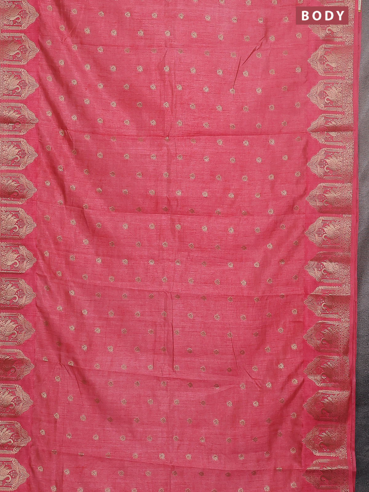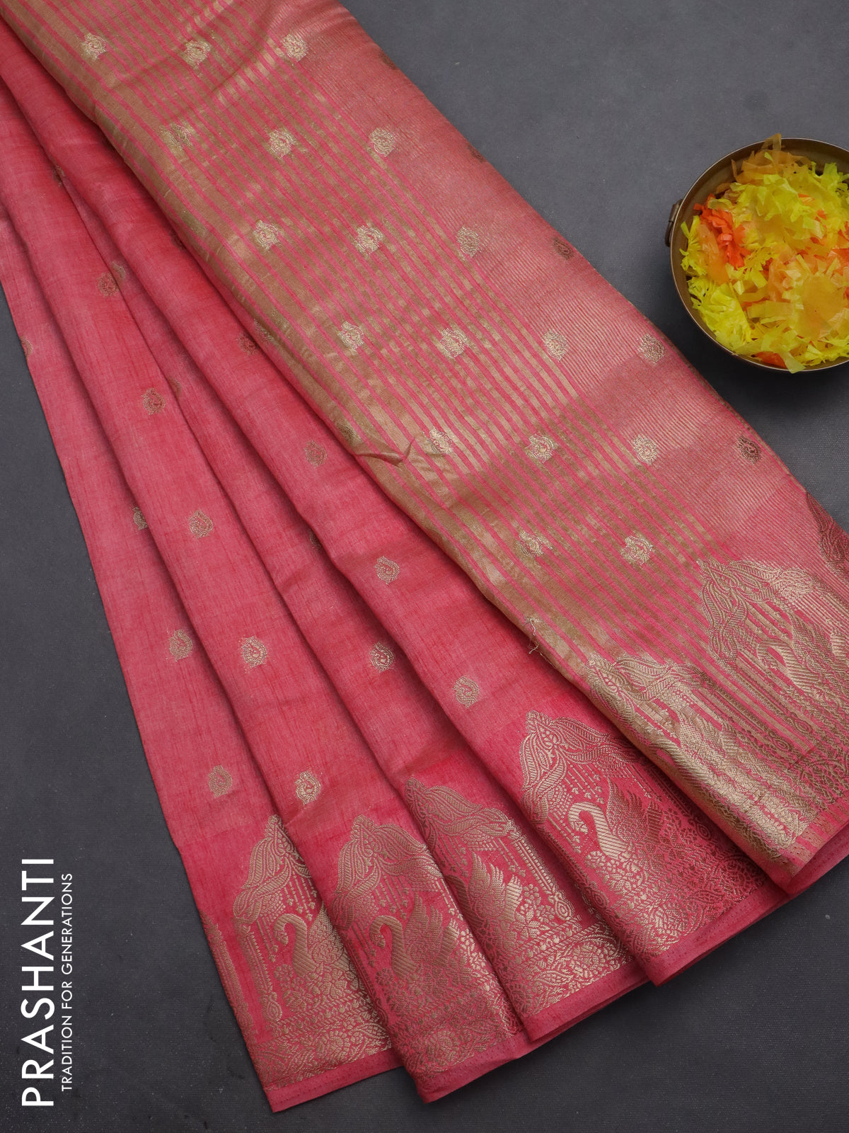 Semi raw silk saree peach pink with allover zari woven 1000 buttas and zari woven border