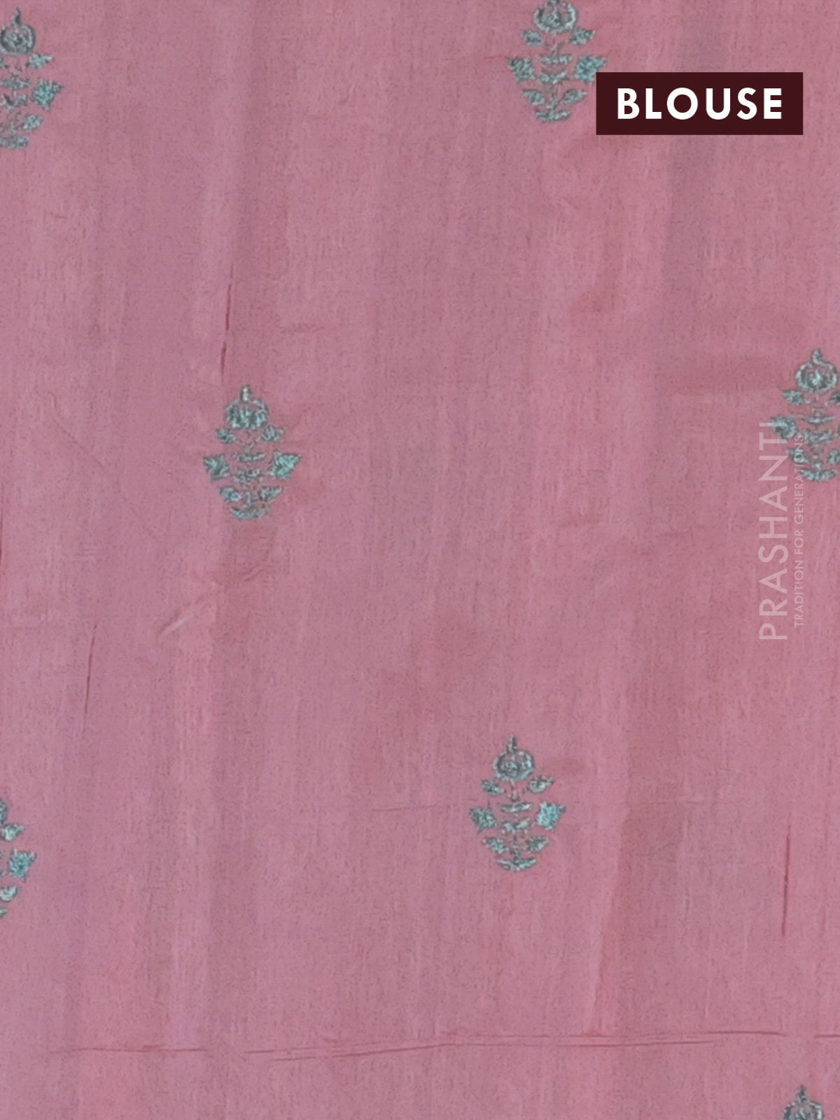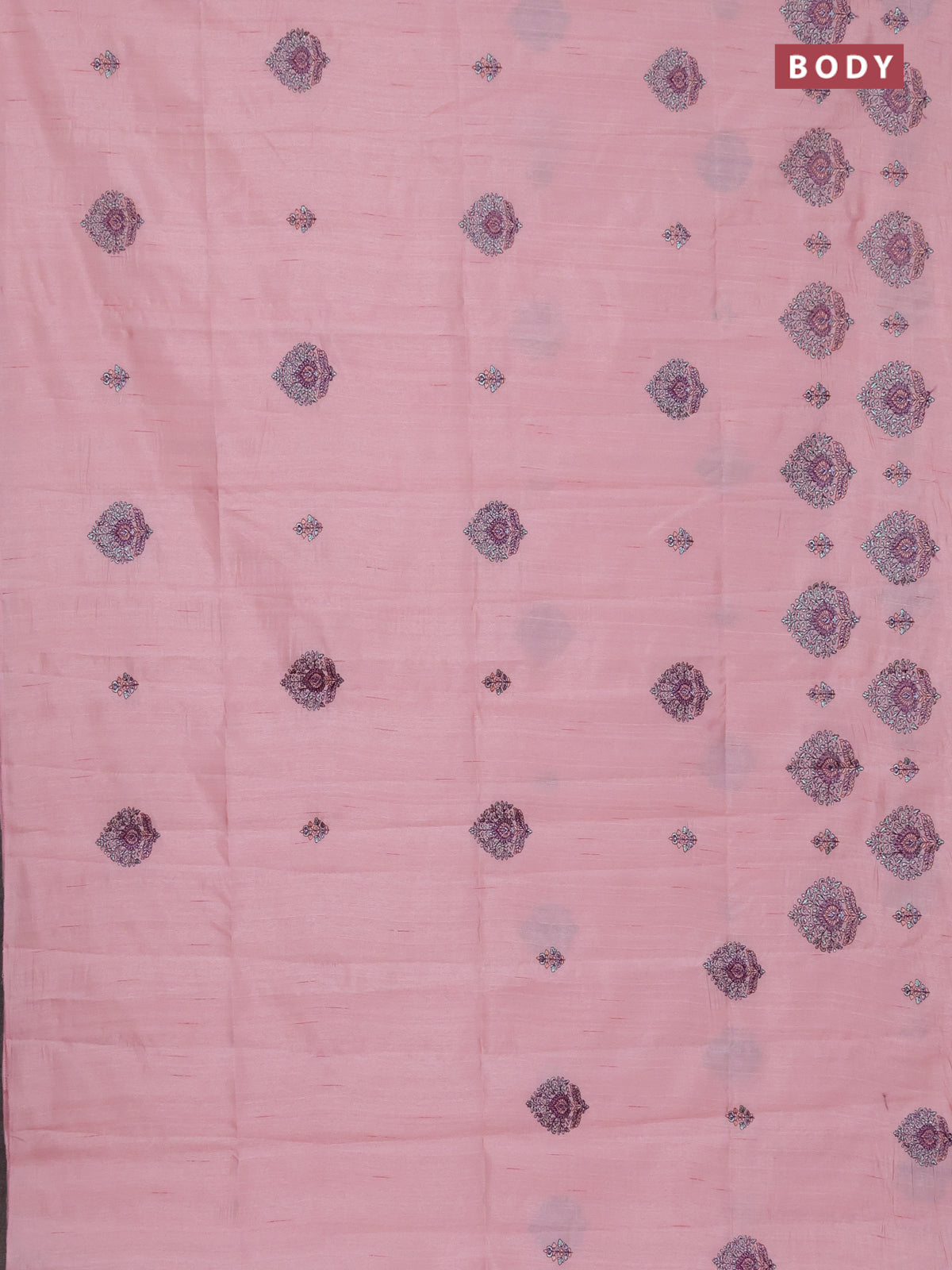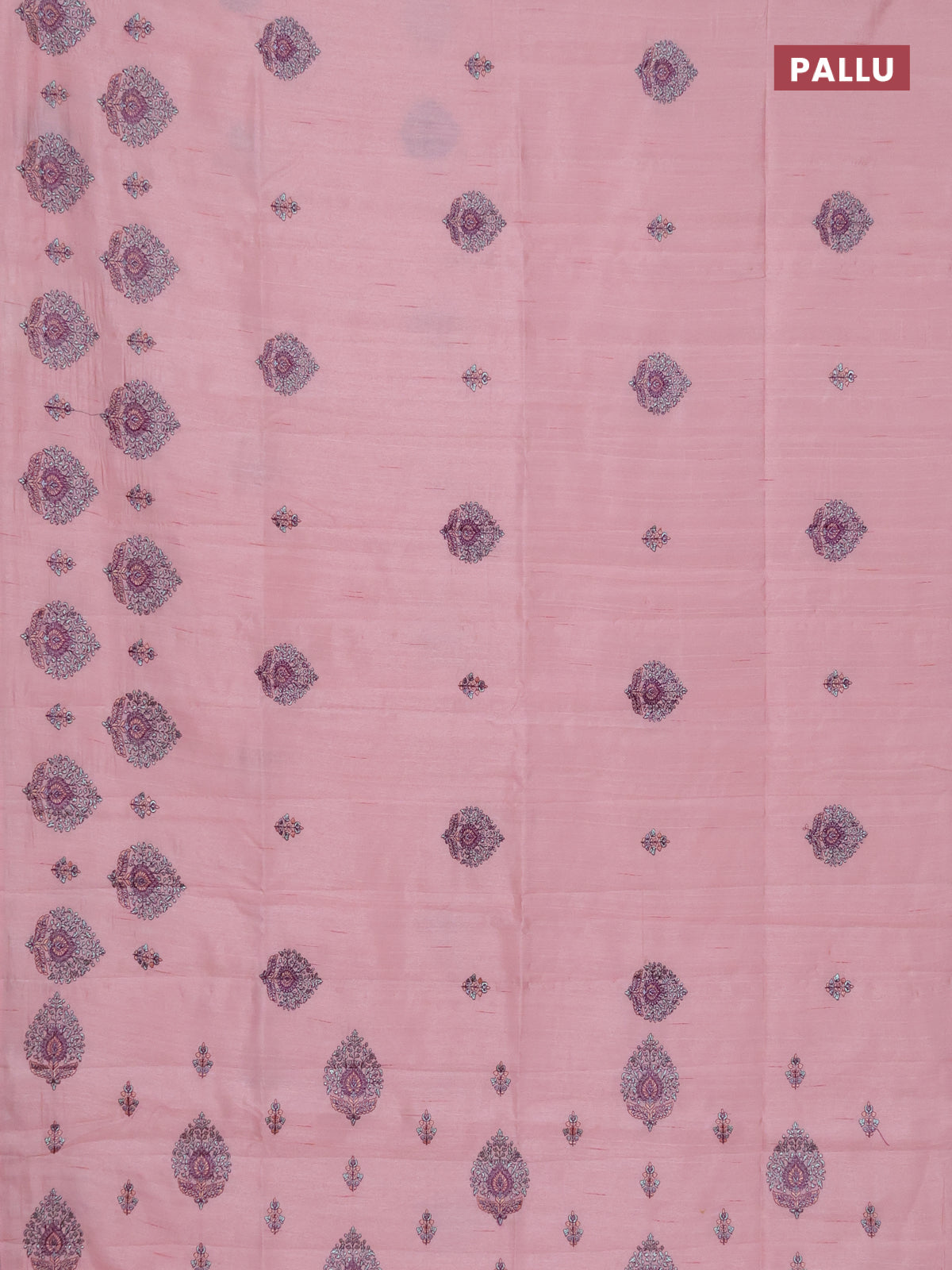 Semi raw silk saree peach pink with embroidery work buttas and embroidery butta border