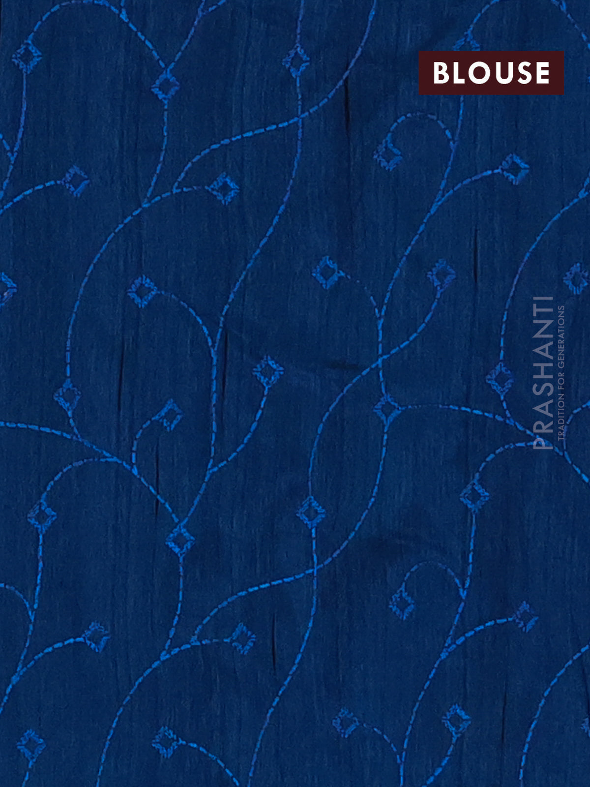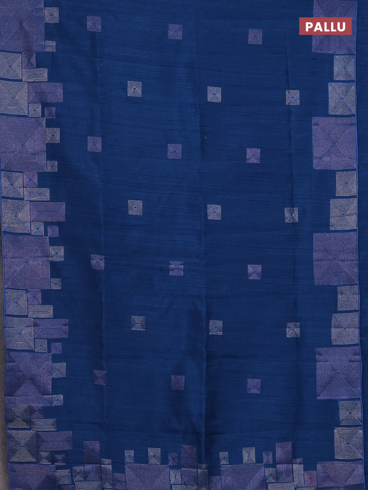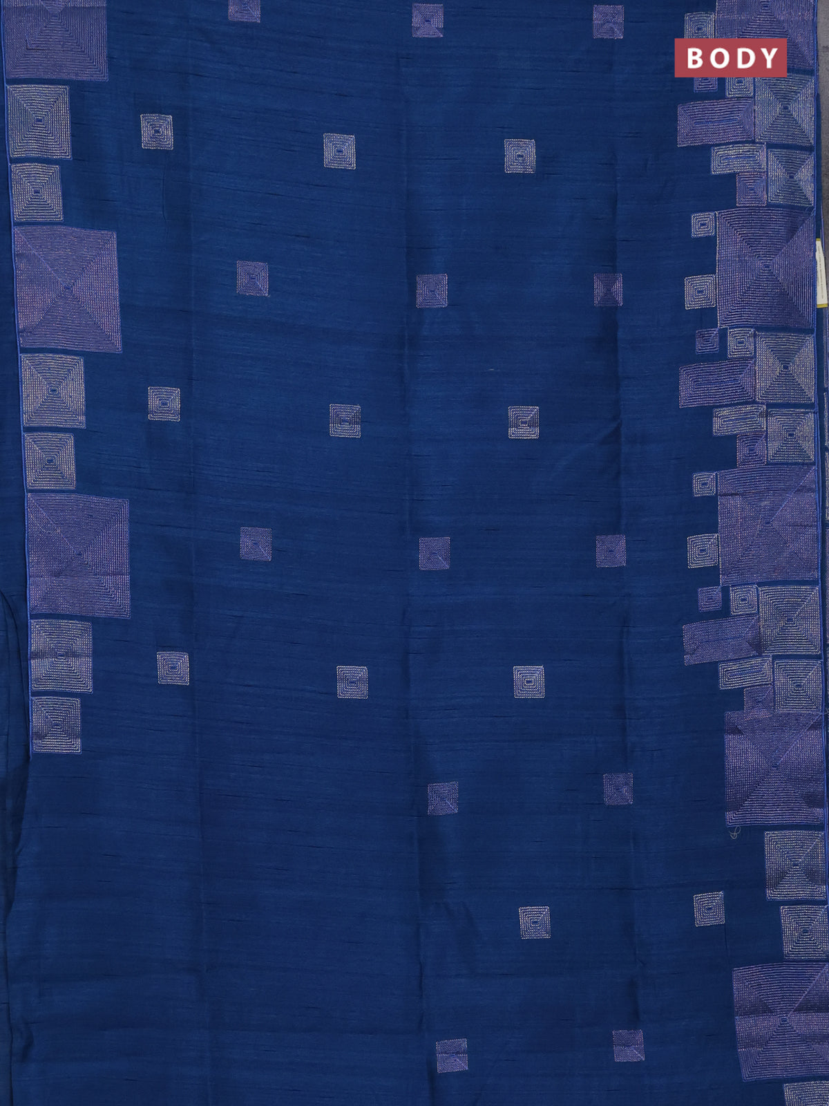 Semi raw silk saree peacock blue with embroidery work buttas and geometric design embroidery border