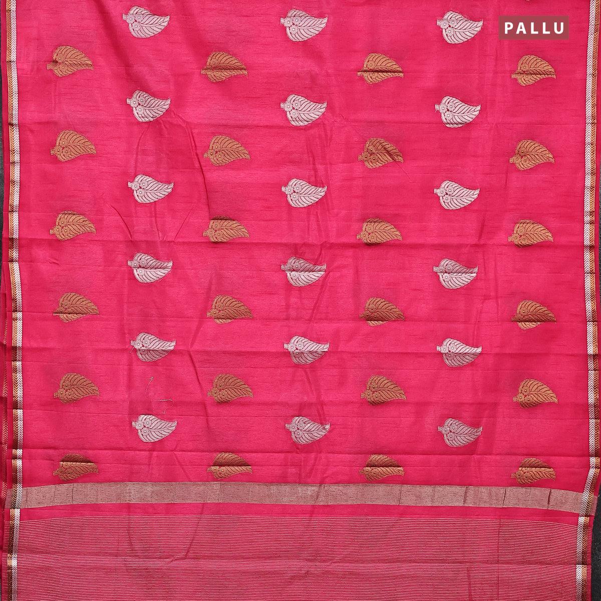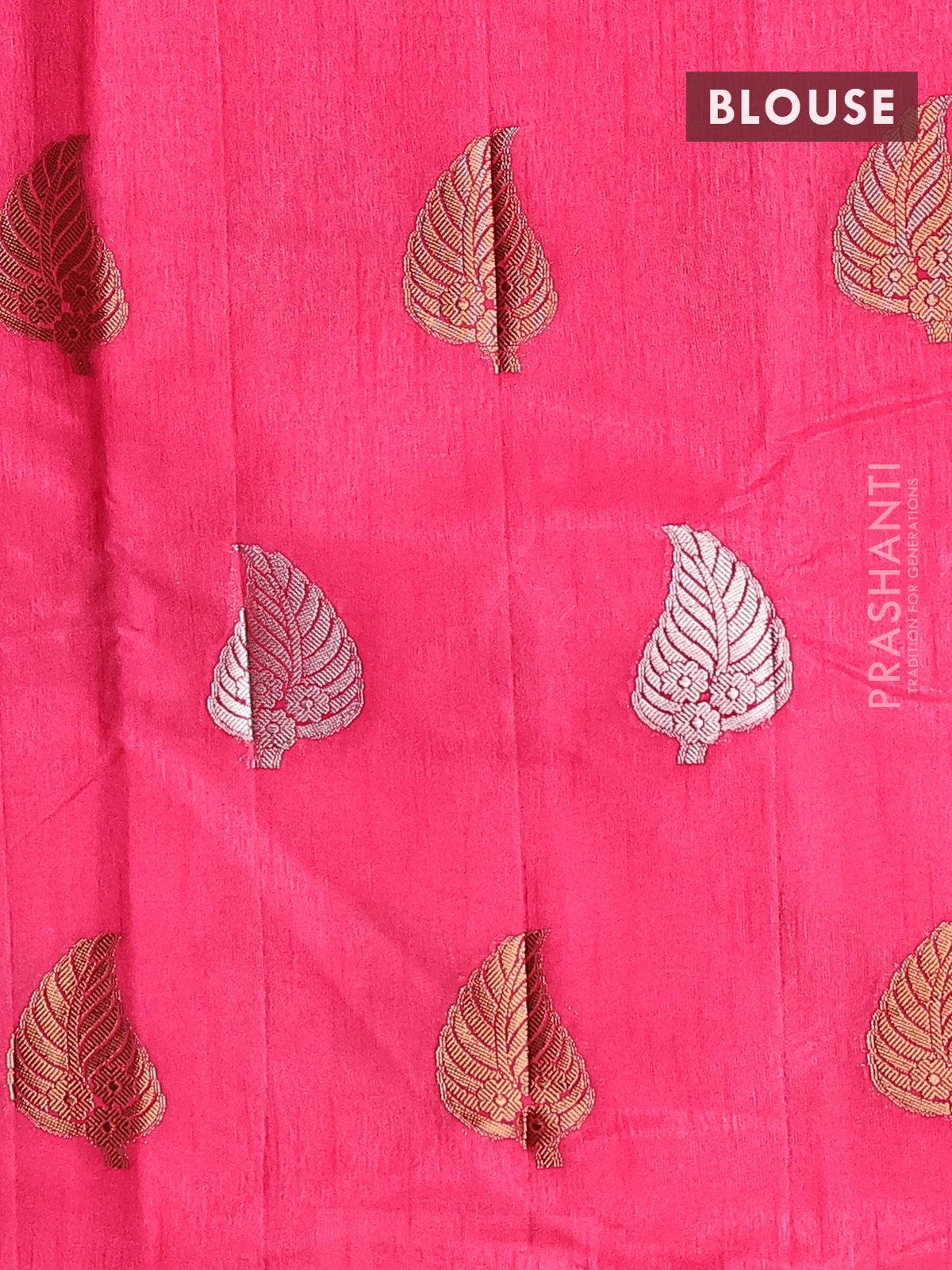 Semi raw silk saree pink with silver & gold zari woven leaf buttas and small zari woven border