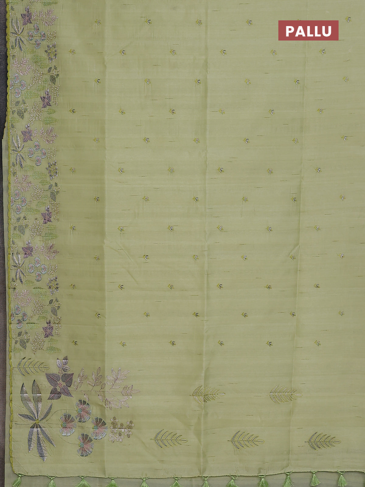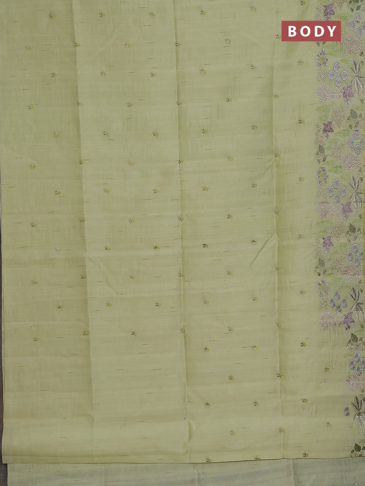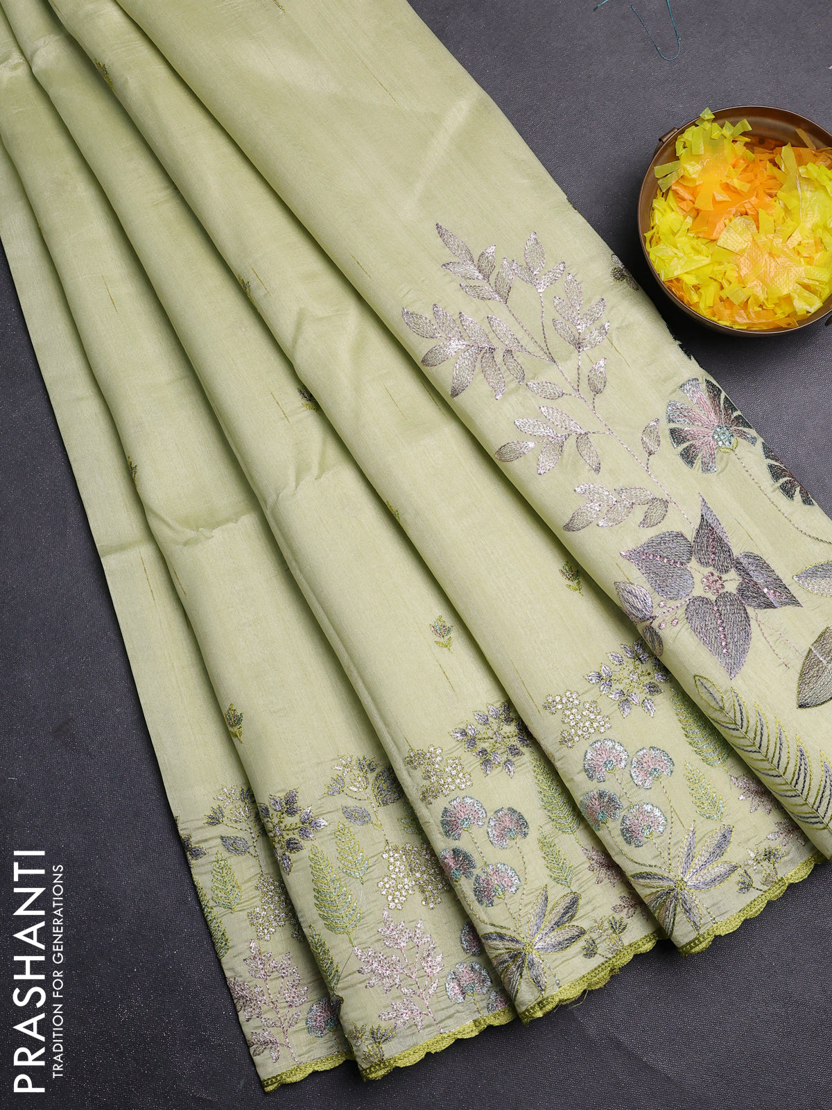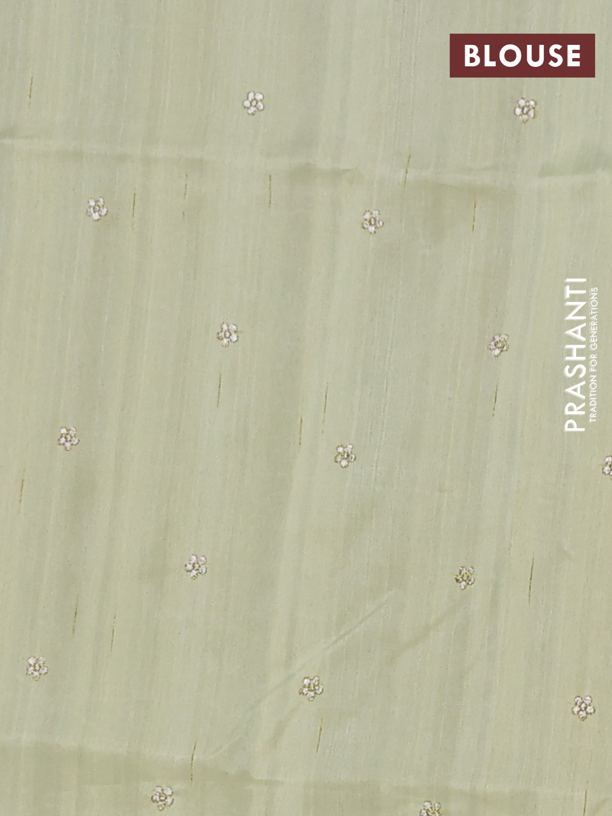 Semi raw silk saree pista green with embroidery buttas and embroidery border