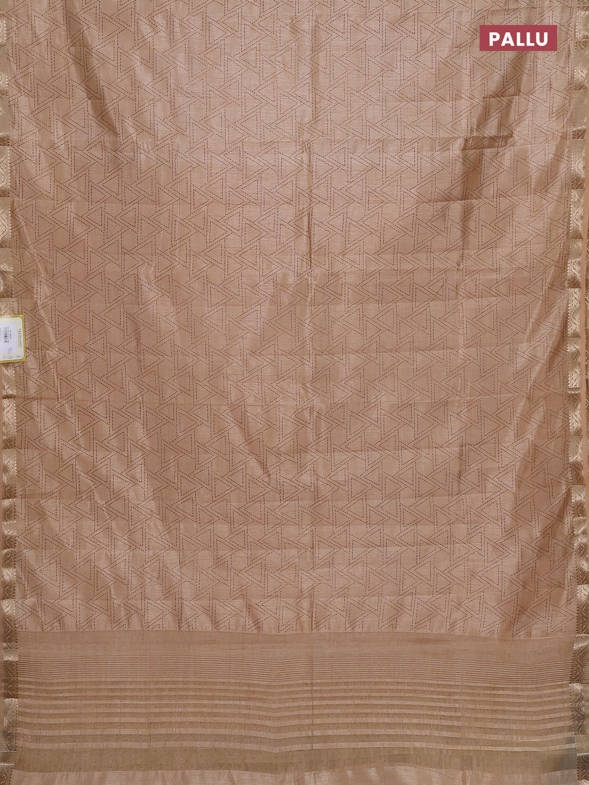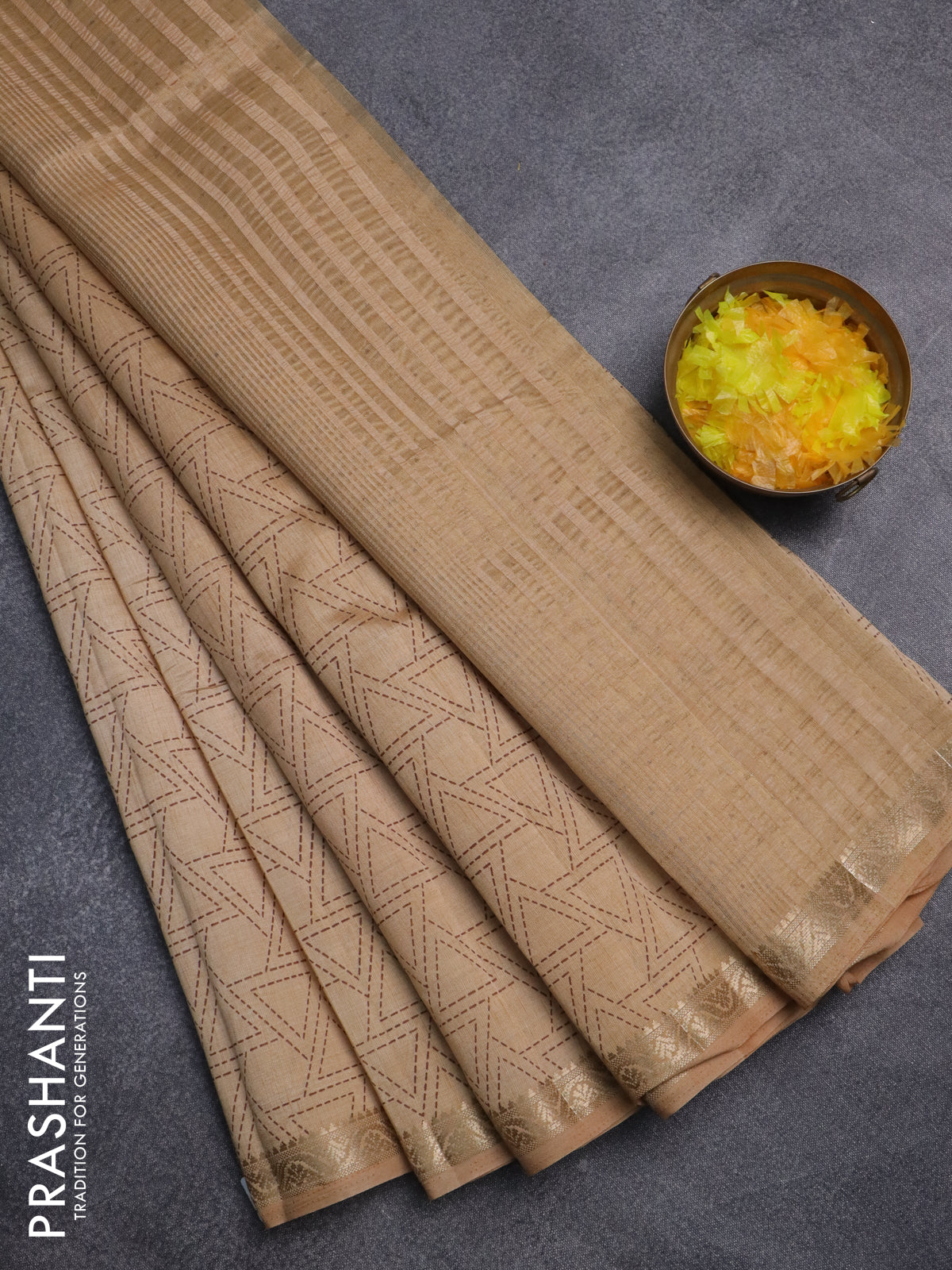 Semi raw silk saree sandal with allover geometric prints and zari woven border