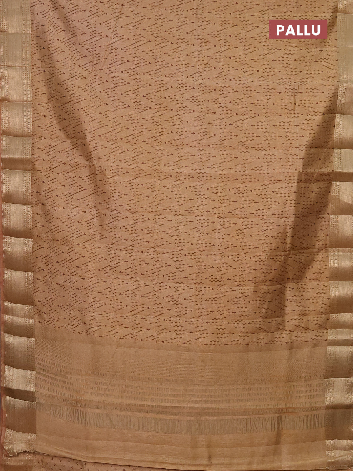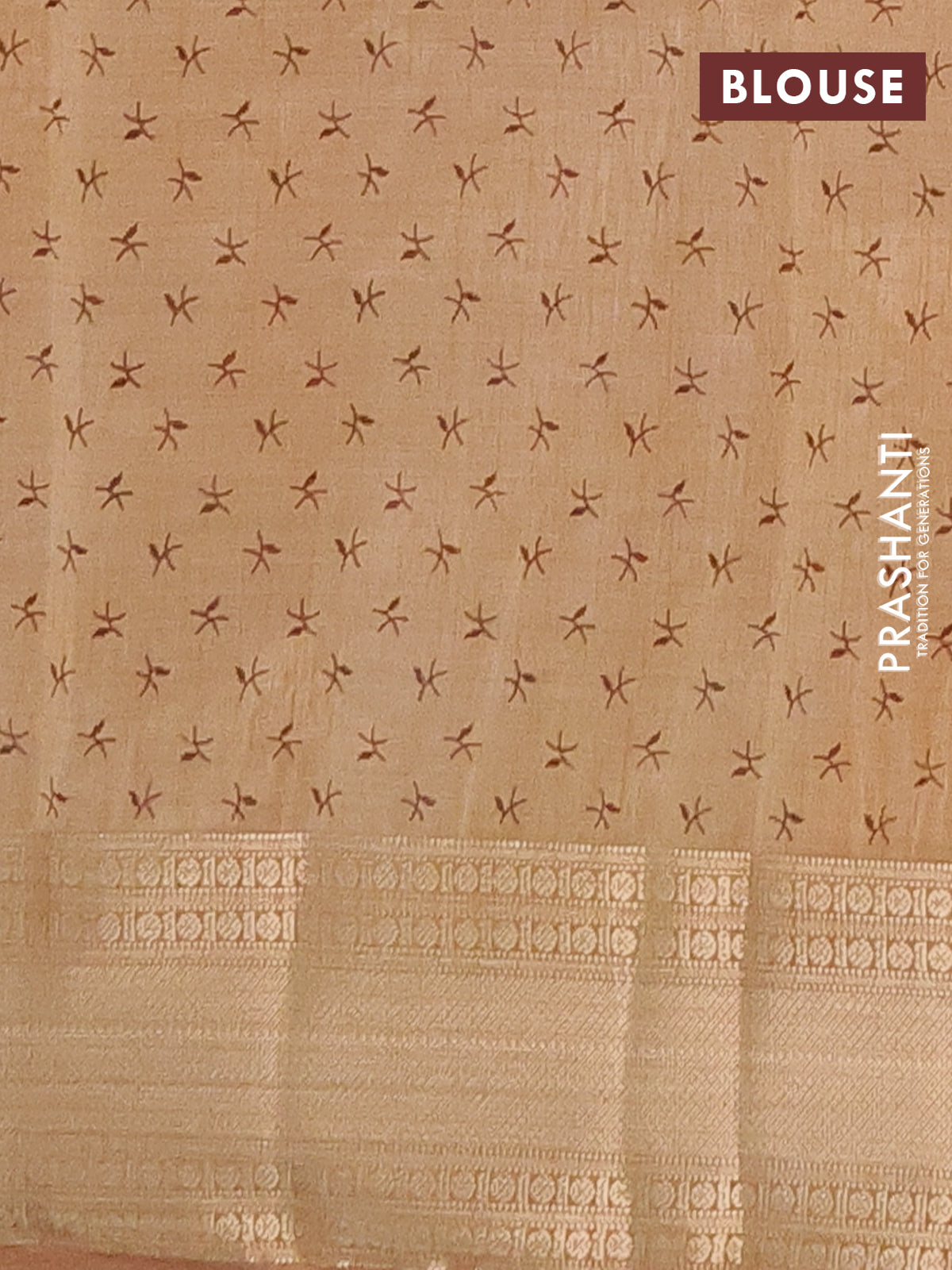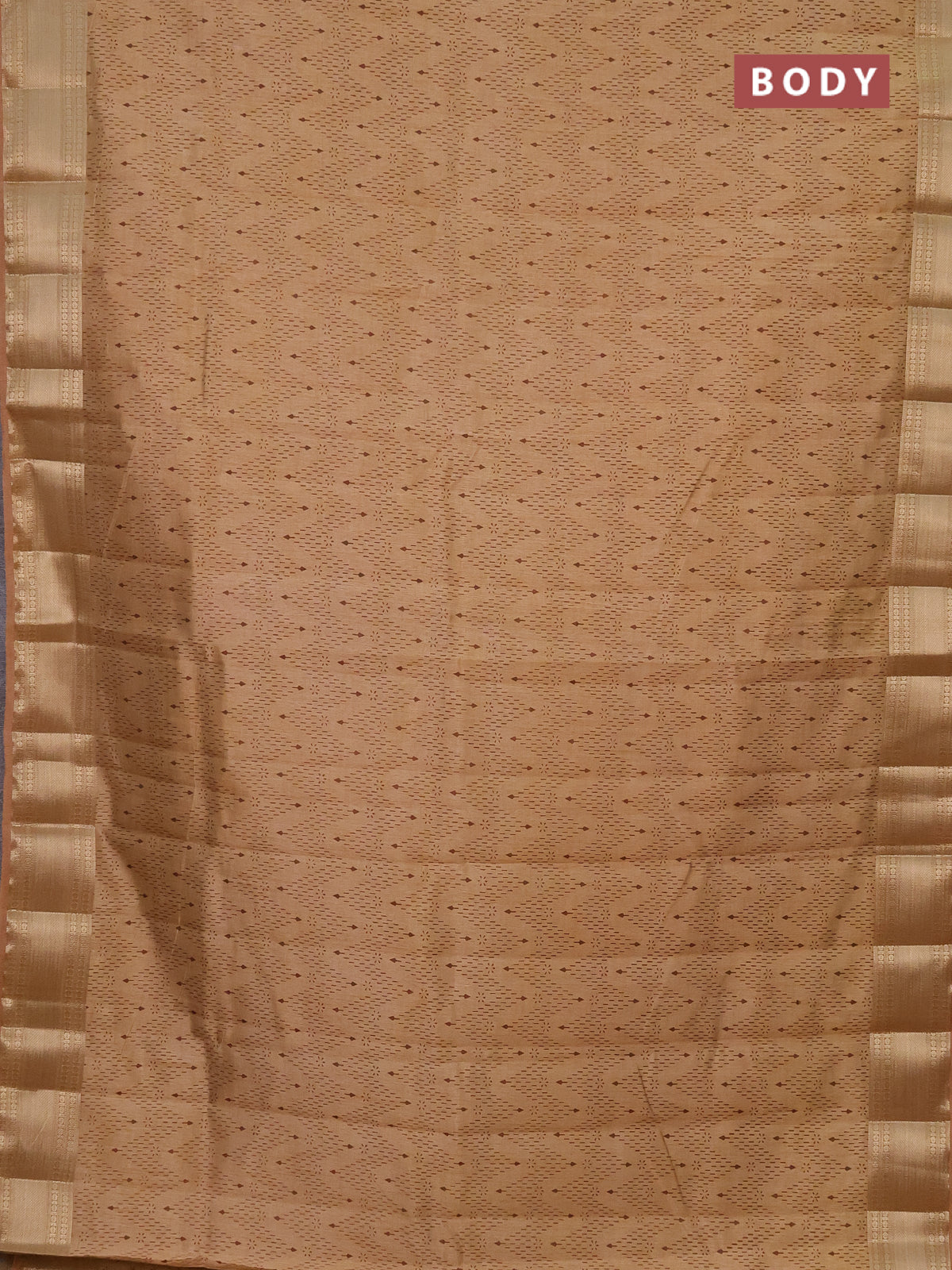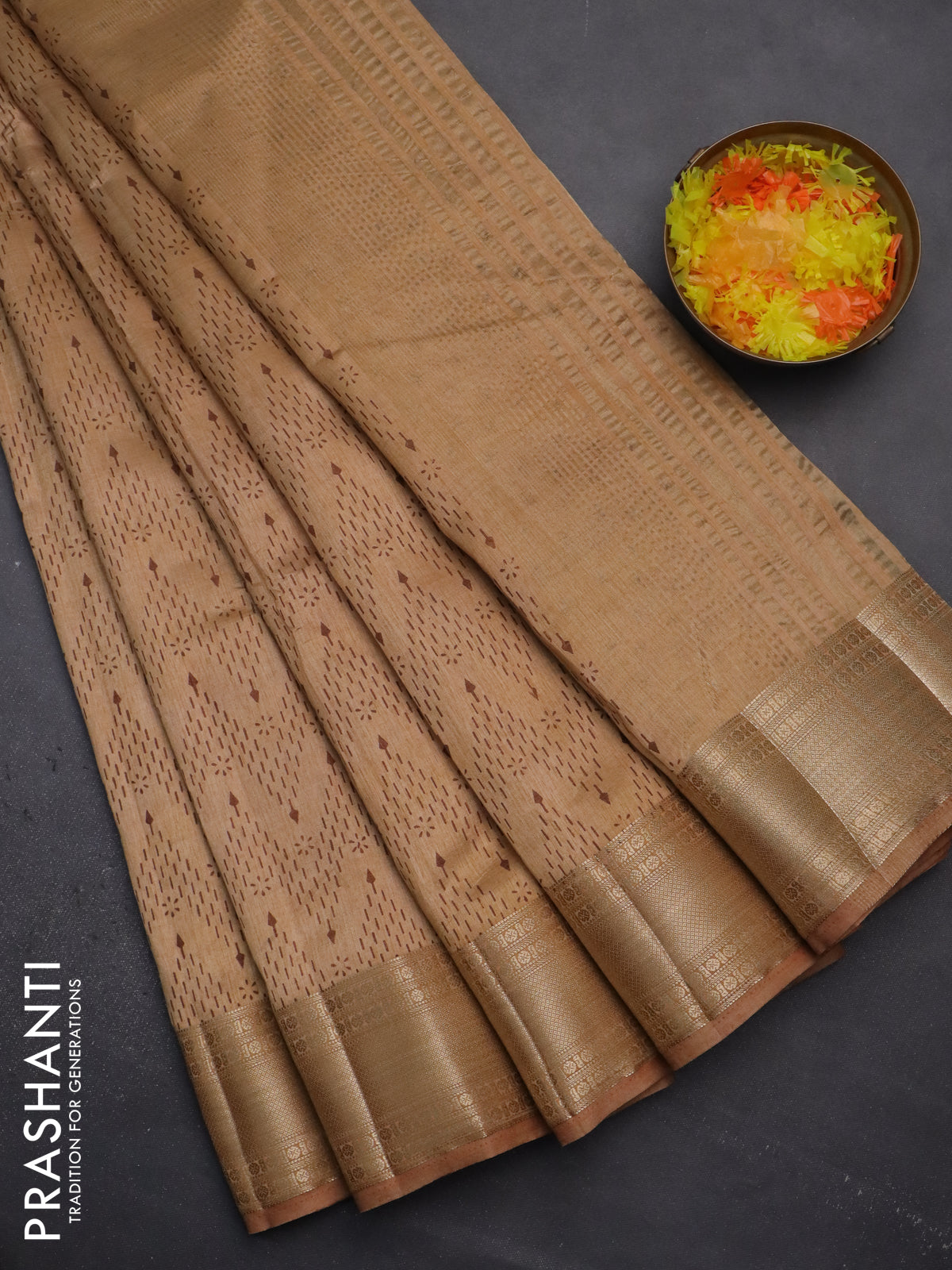 Semi raw silk saree sandal with allover prints and zari woven border