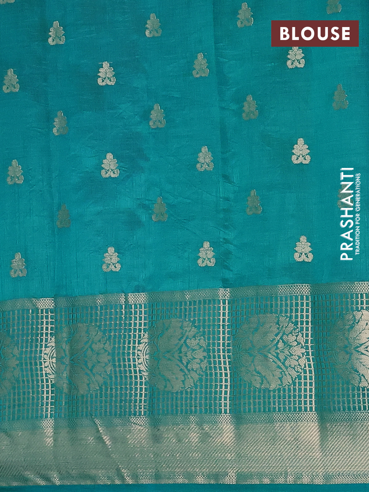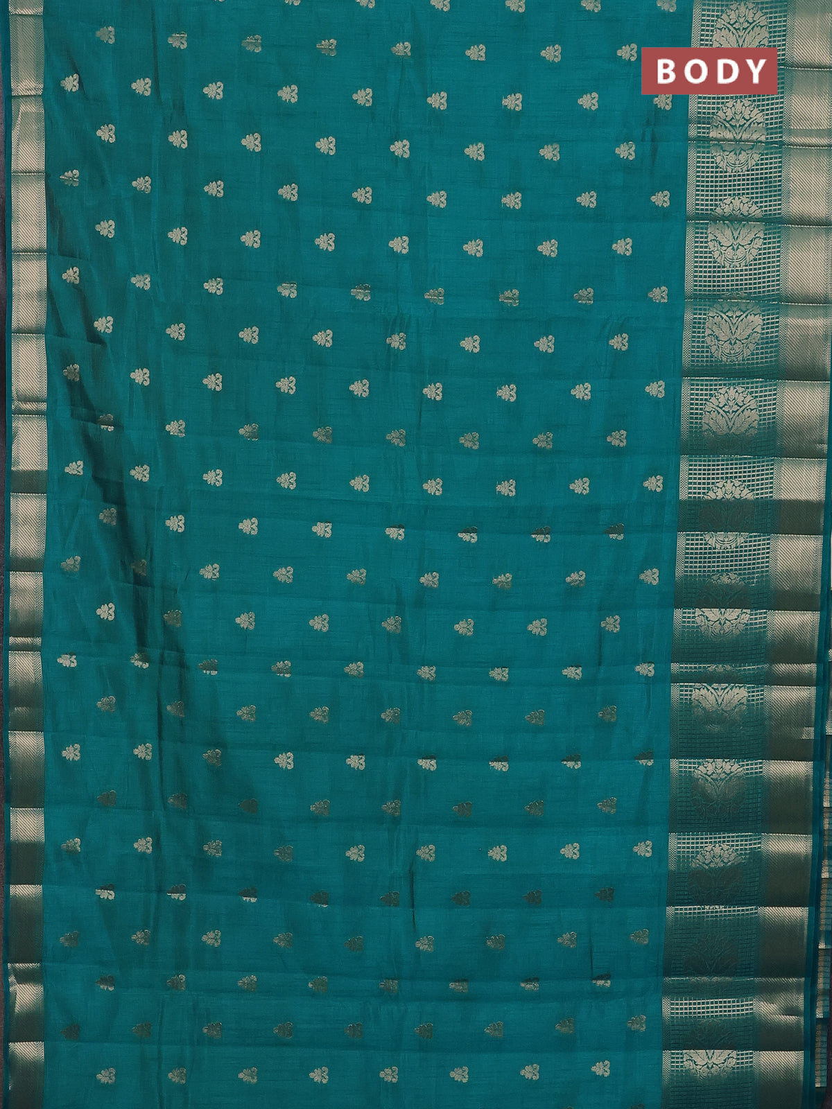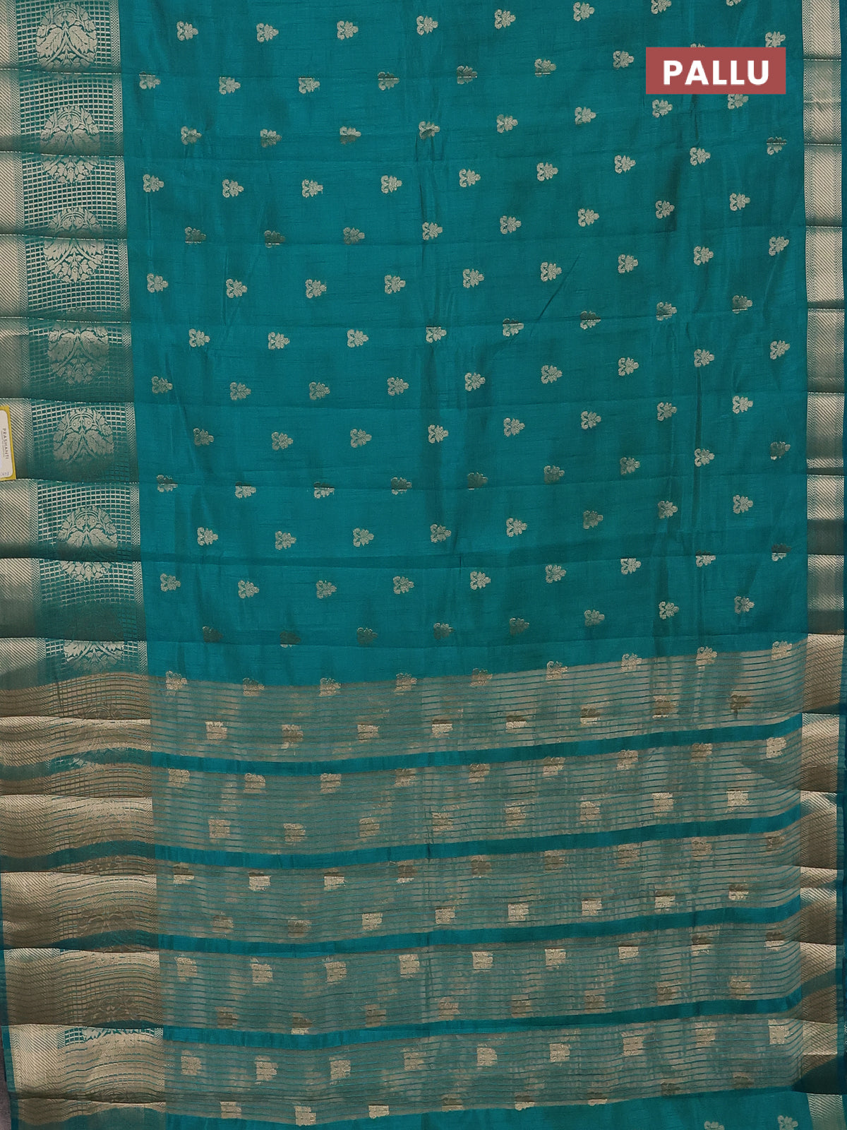 Semi raw silk saree teal blue shade with allover zari woven 1000 buttas and long zari woven border