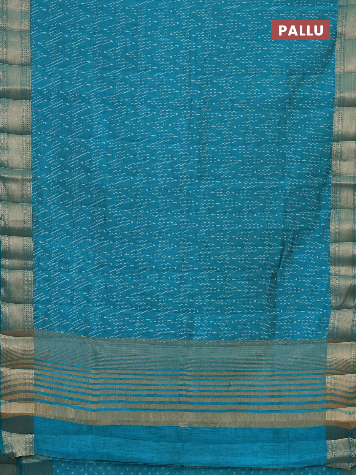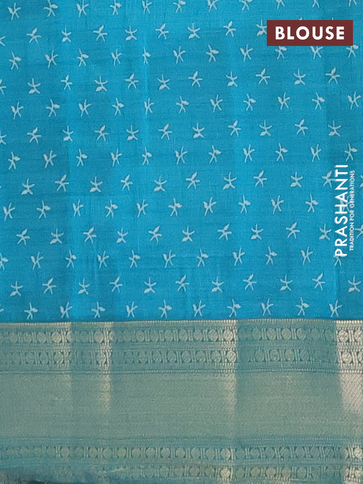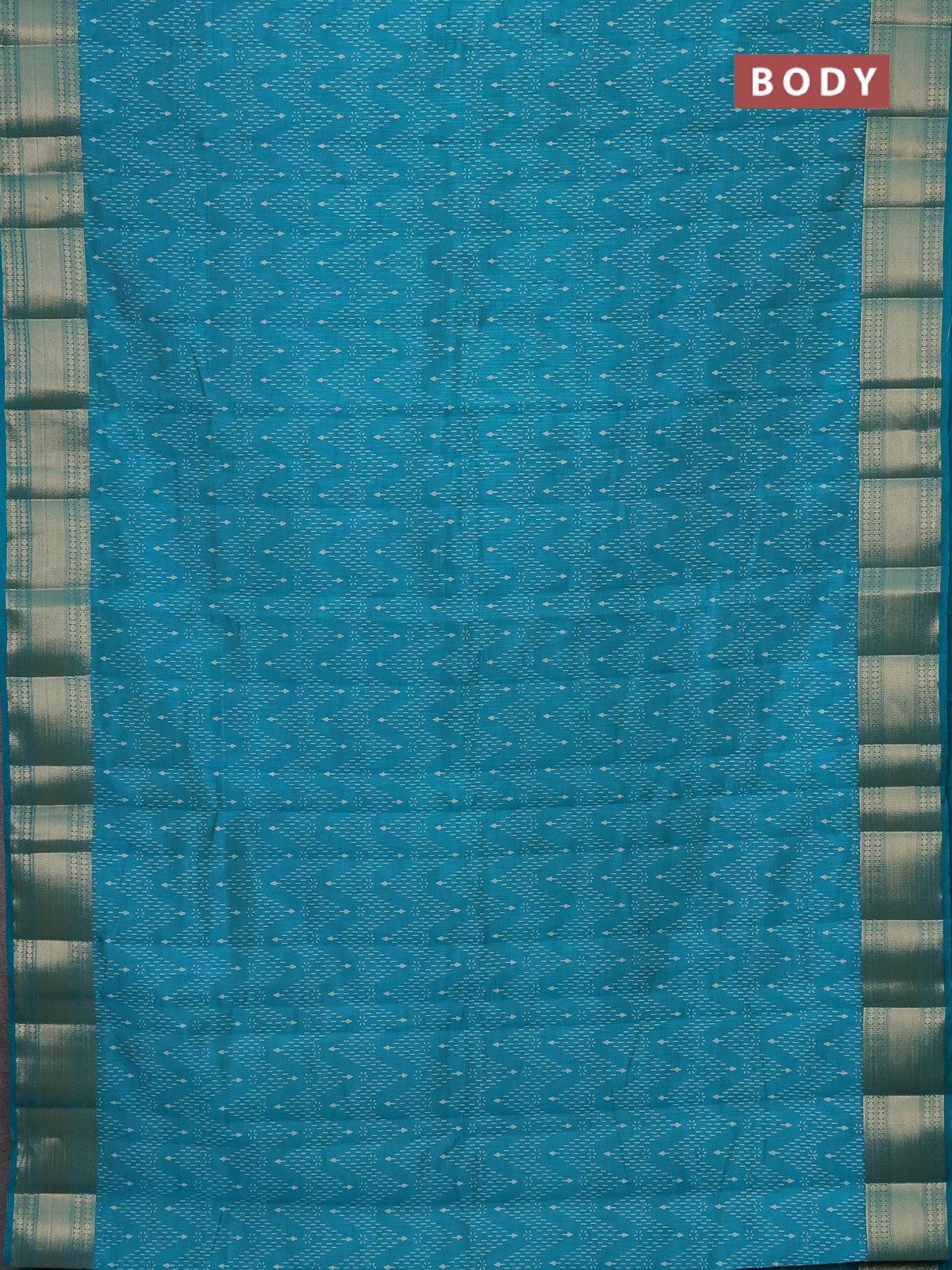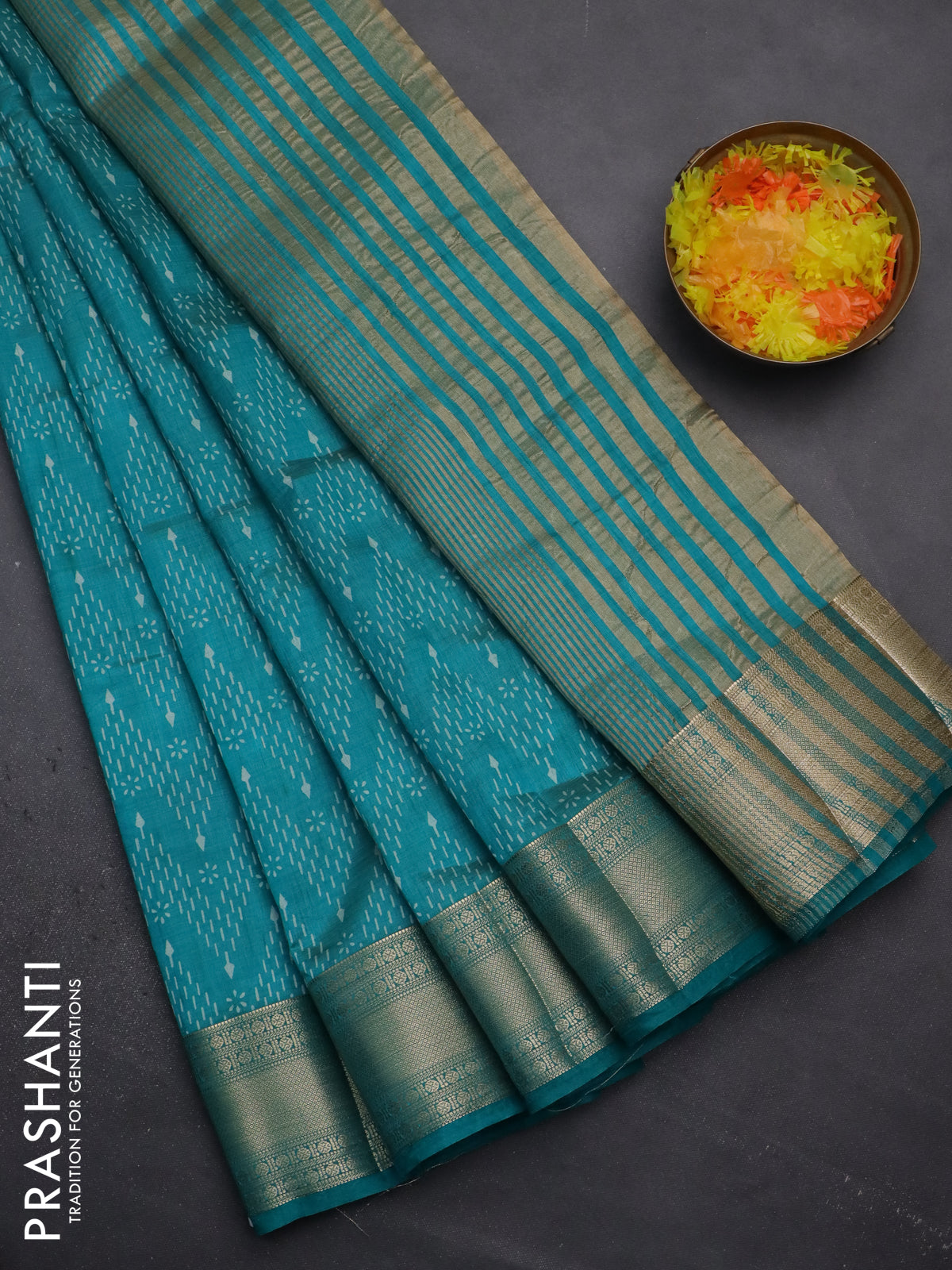Semi raw silk saree teal blue with allover prints and zari woven border