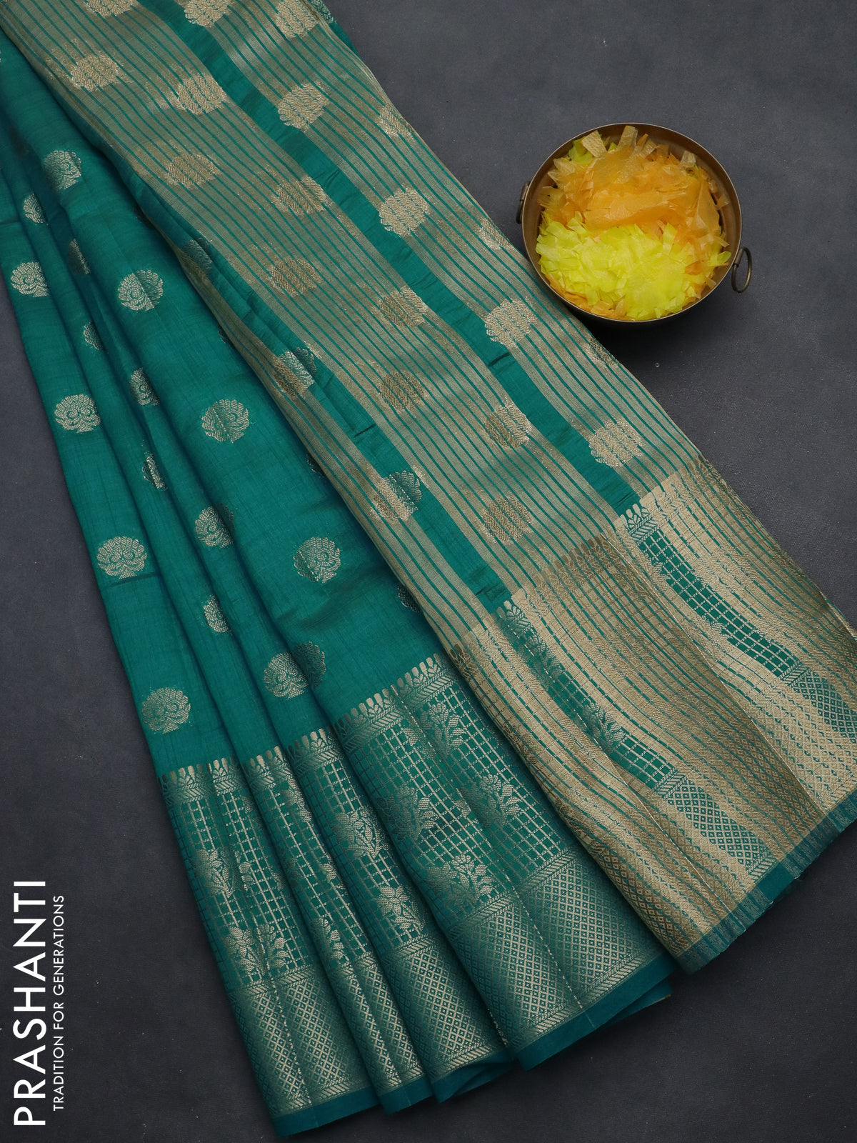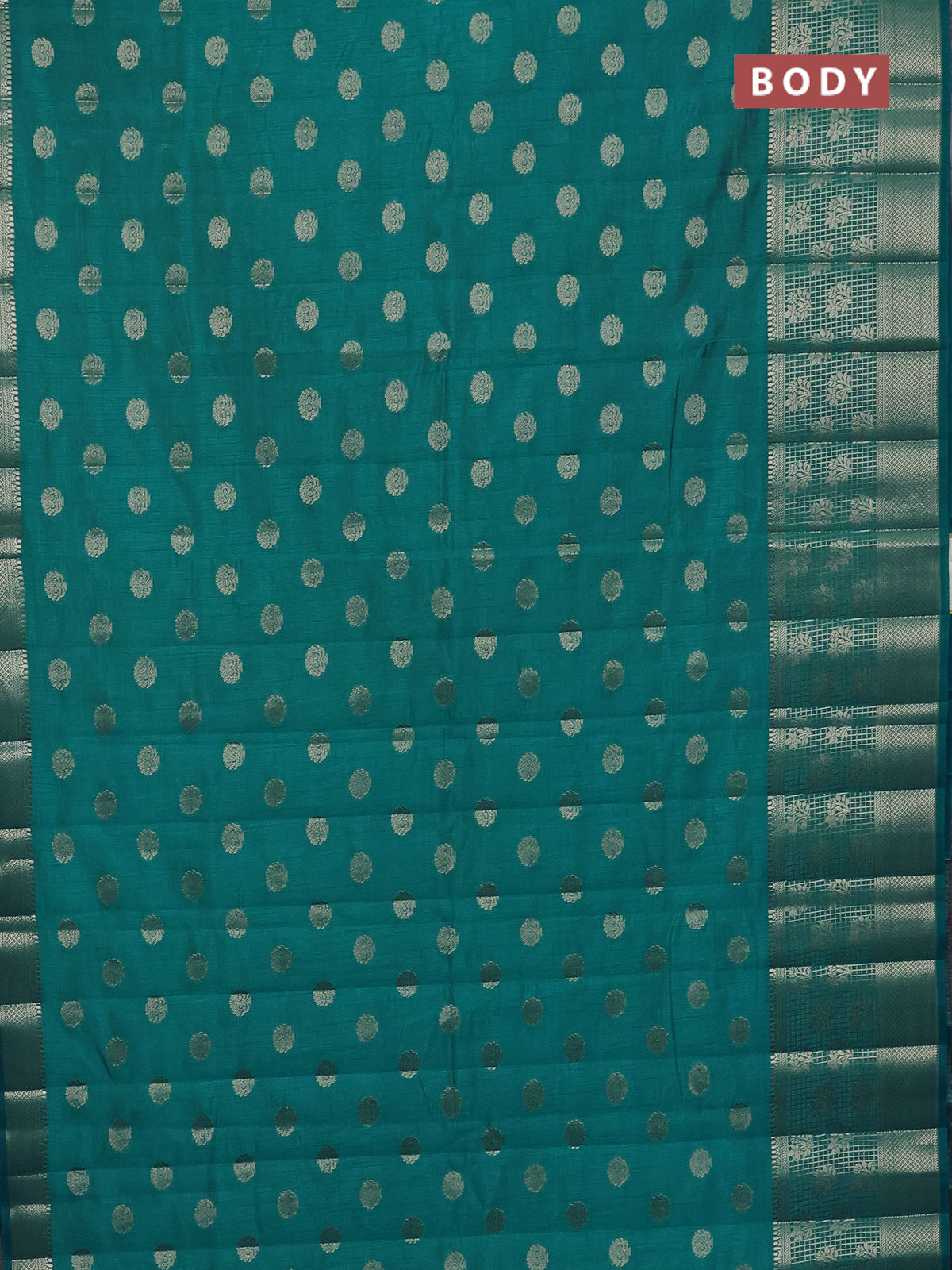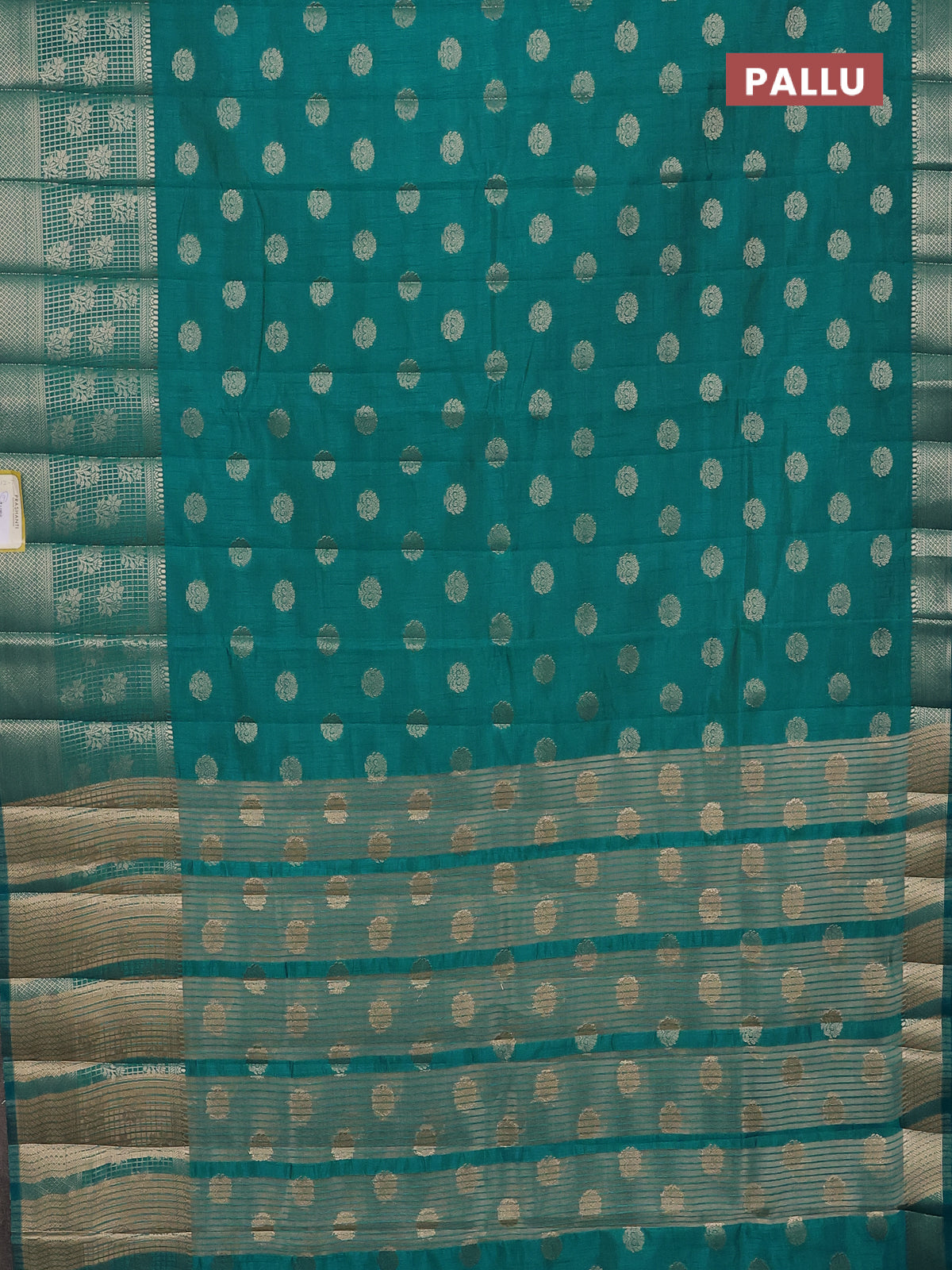 Semi raw silk saree teal blue with allover zari woven 1000 buttas and long zari woven border