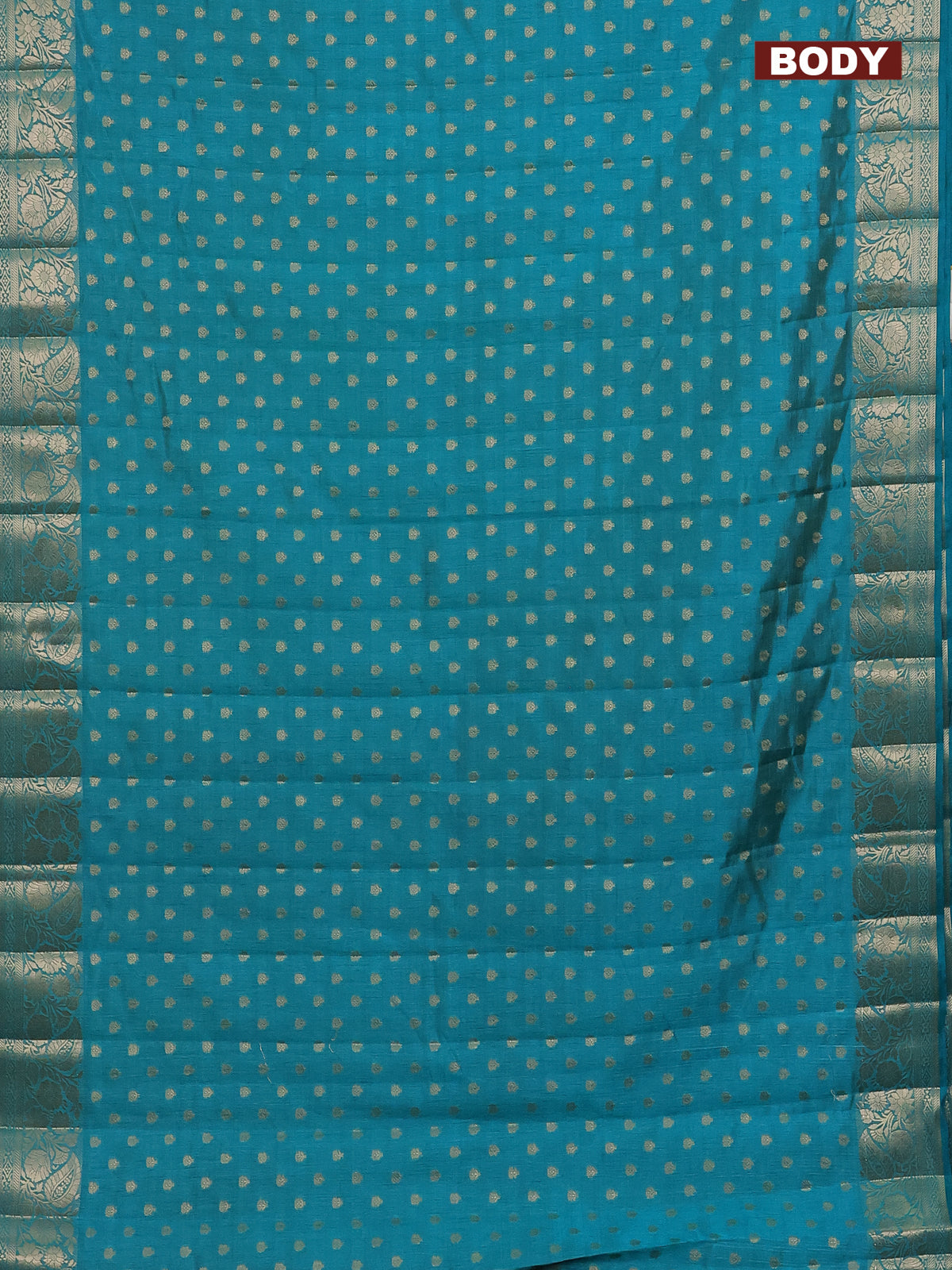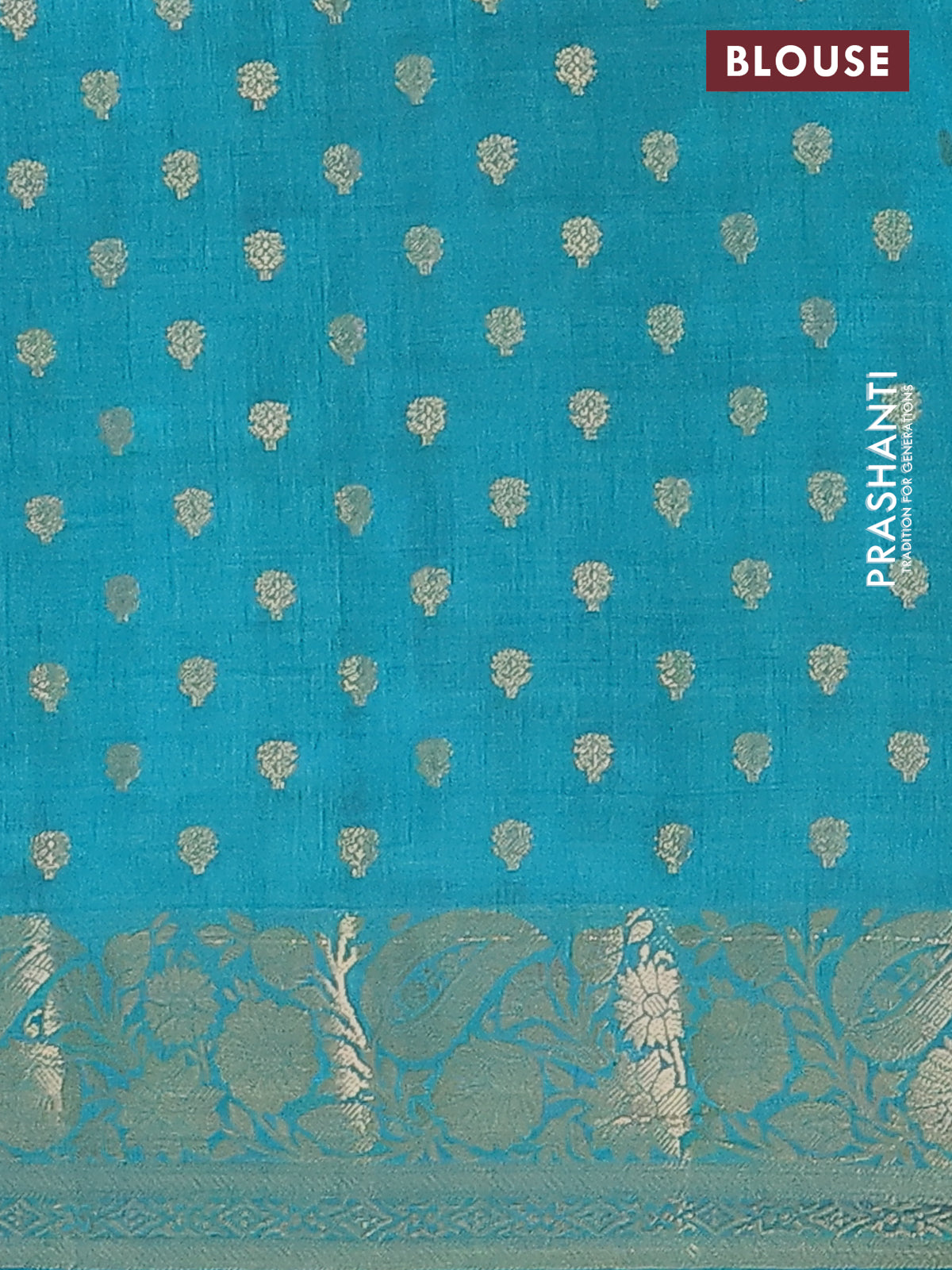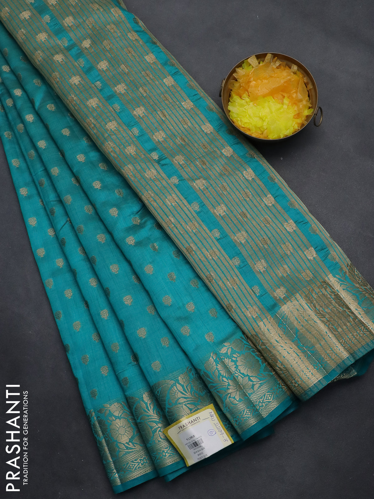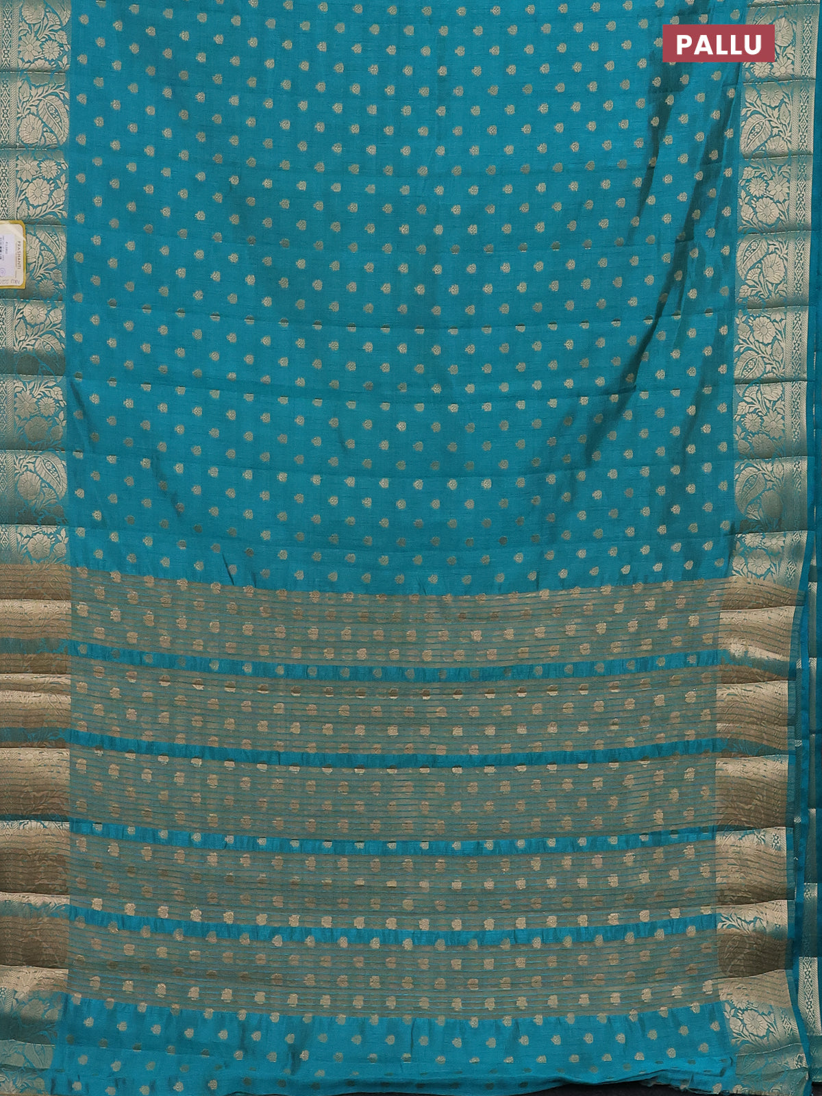 Semi raw silk saree teal blue with allover zari woven 1000 buttas and zari woven border