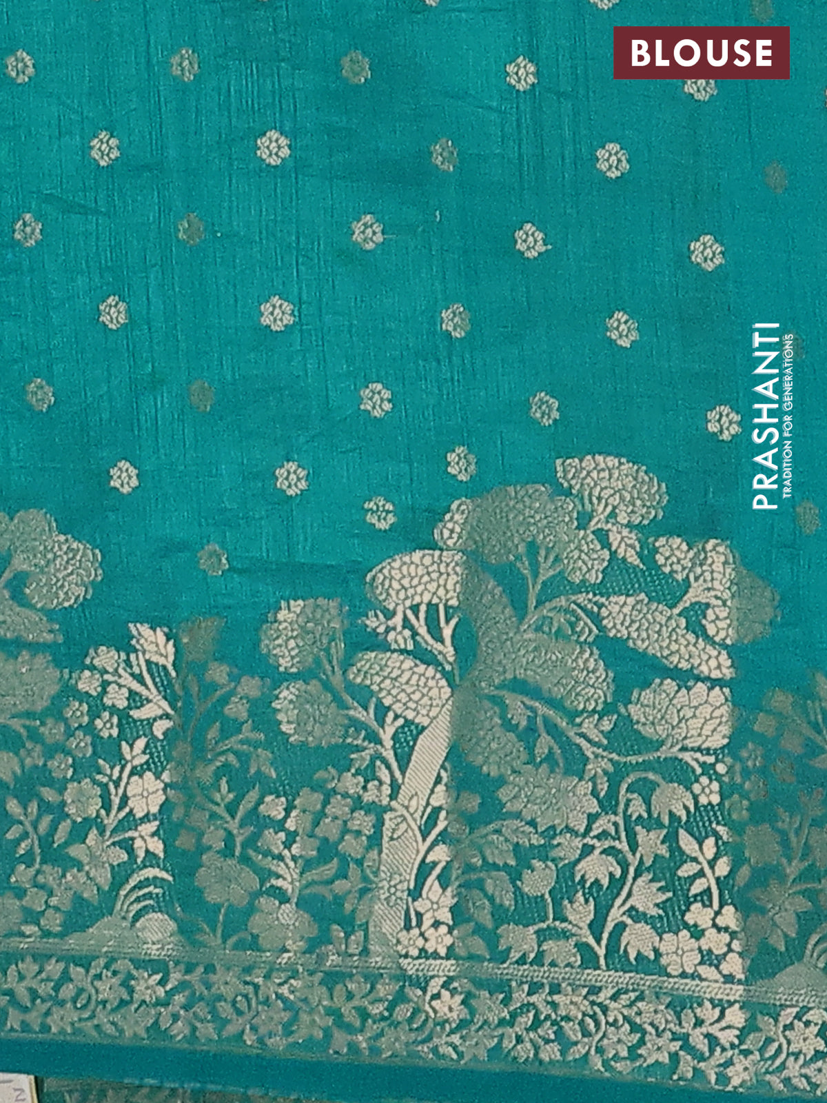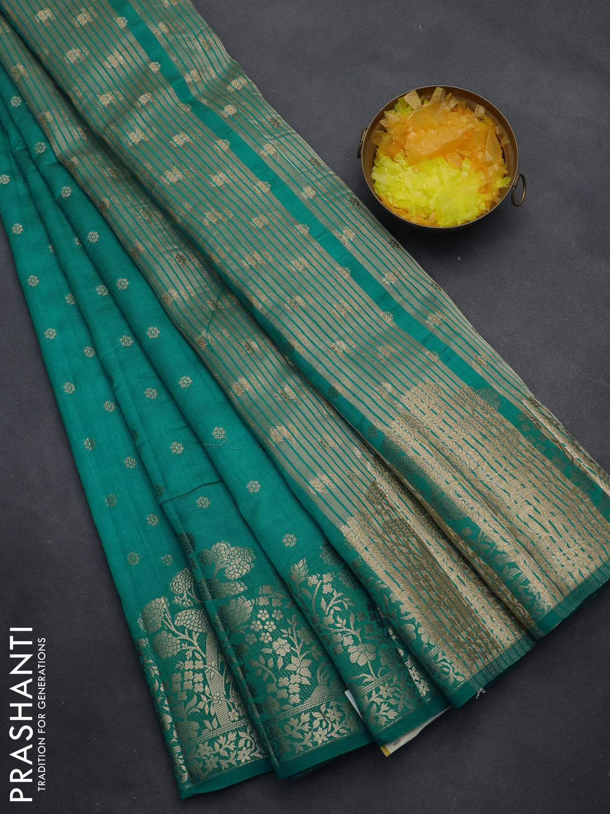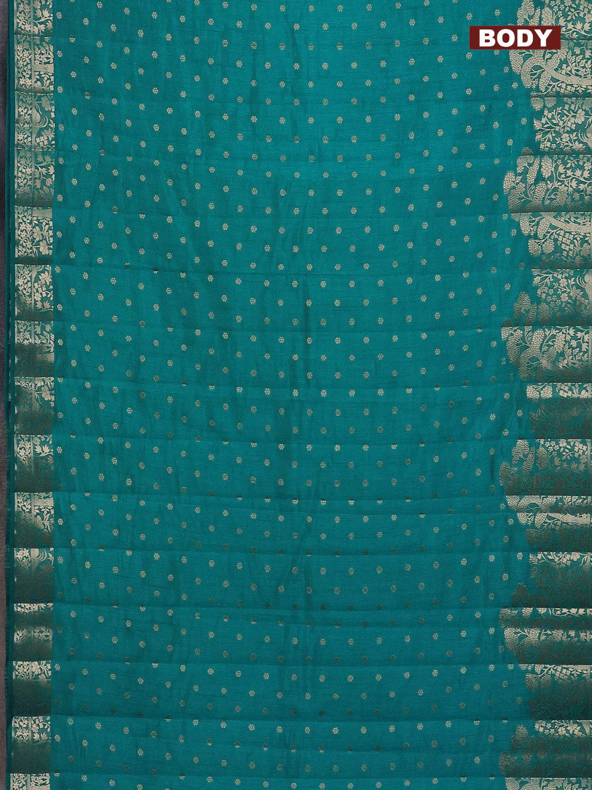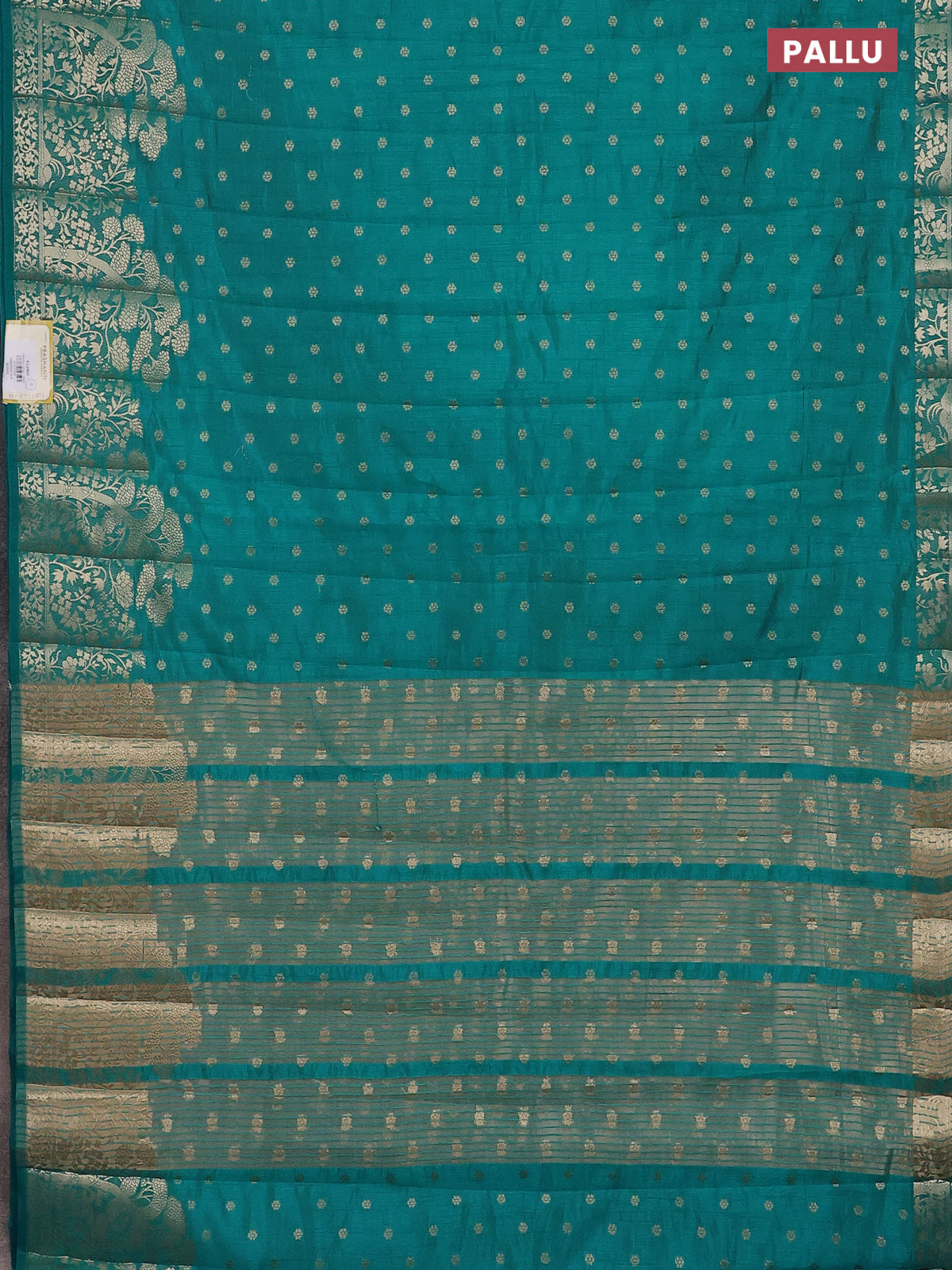 Semi raw silk saree teal blue with allover zari woven floral design 1000 buttas and rich zari woven border
