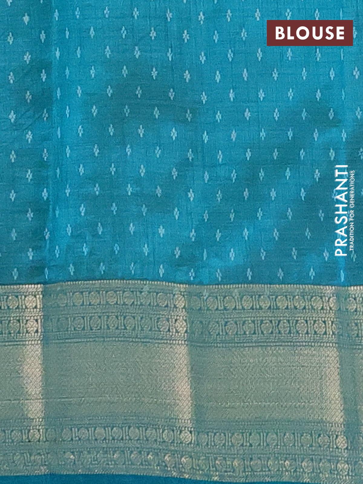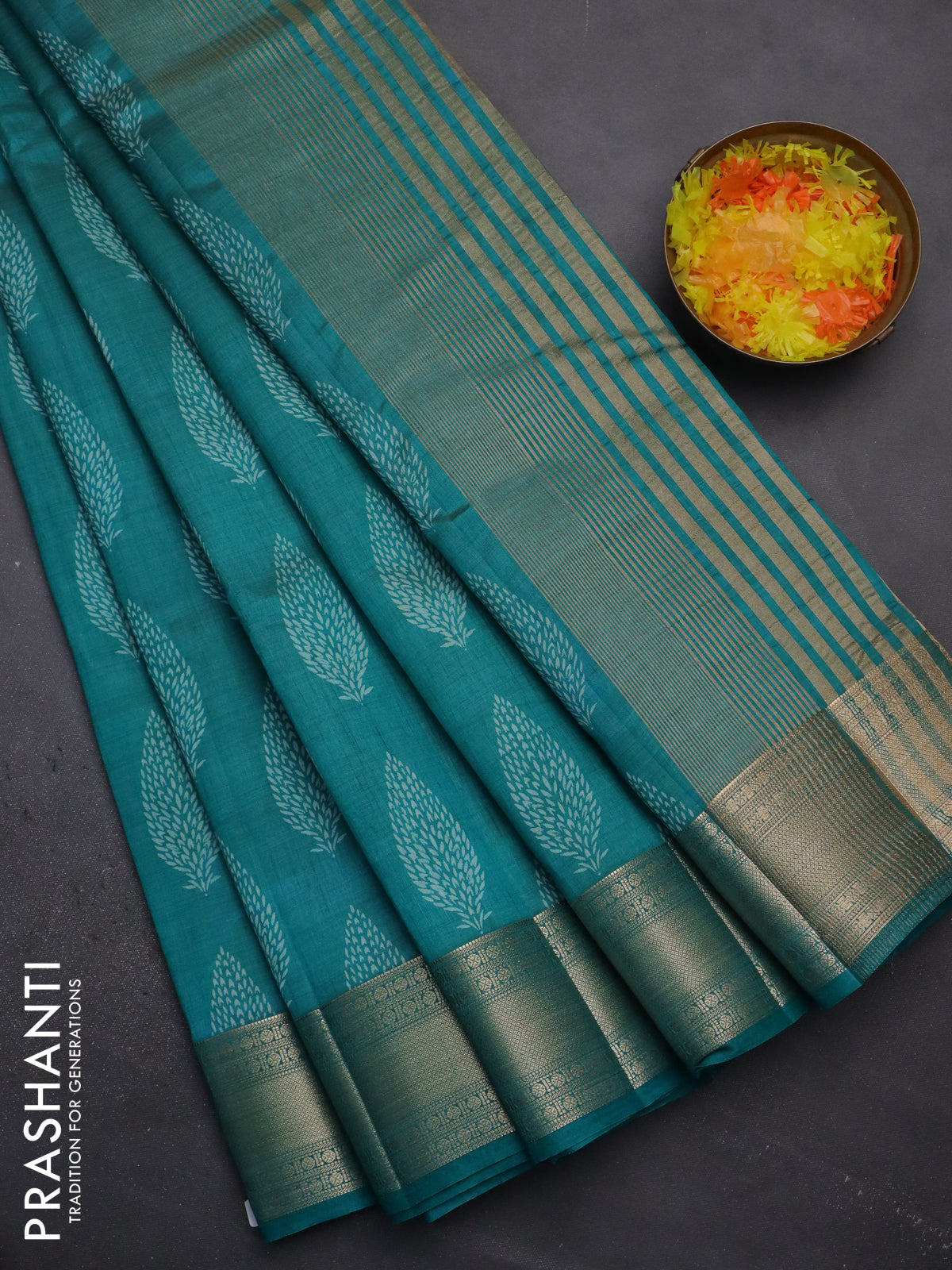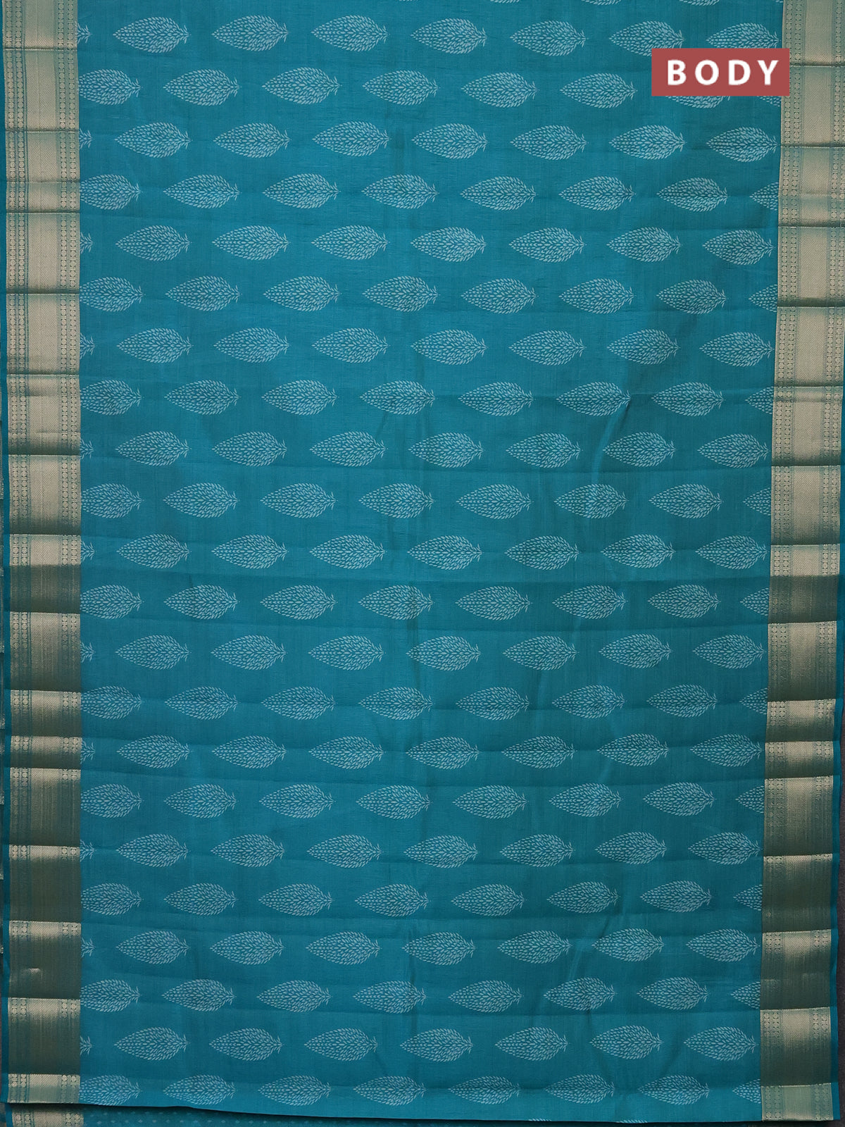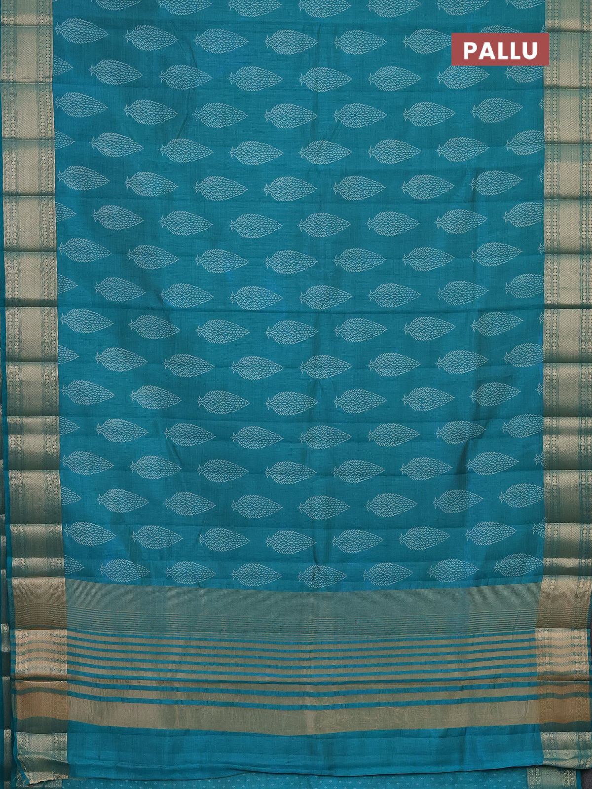 Semi raw silk saree teal blue with butta prints and zari woven border