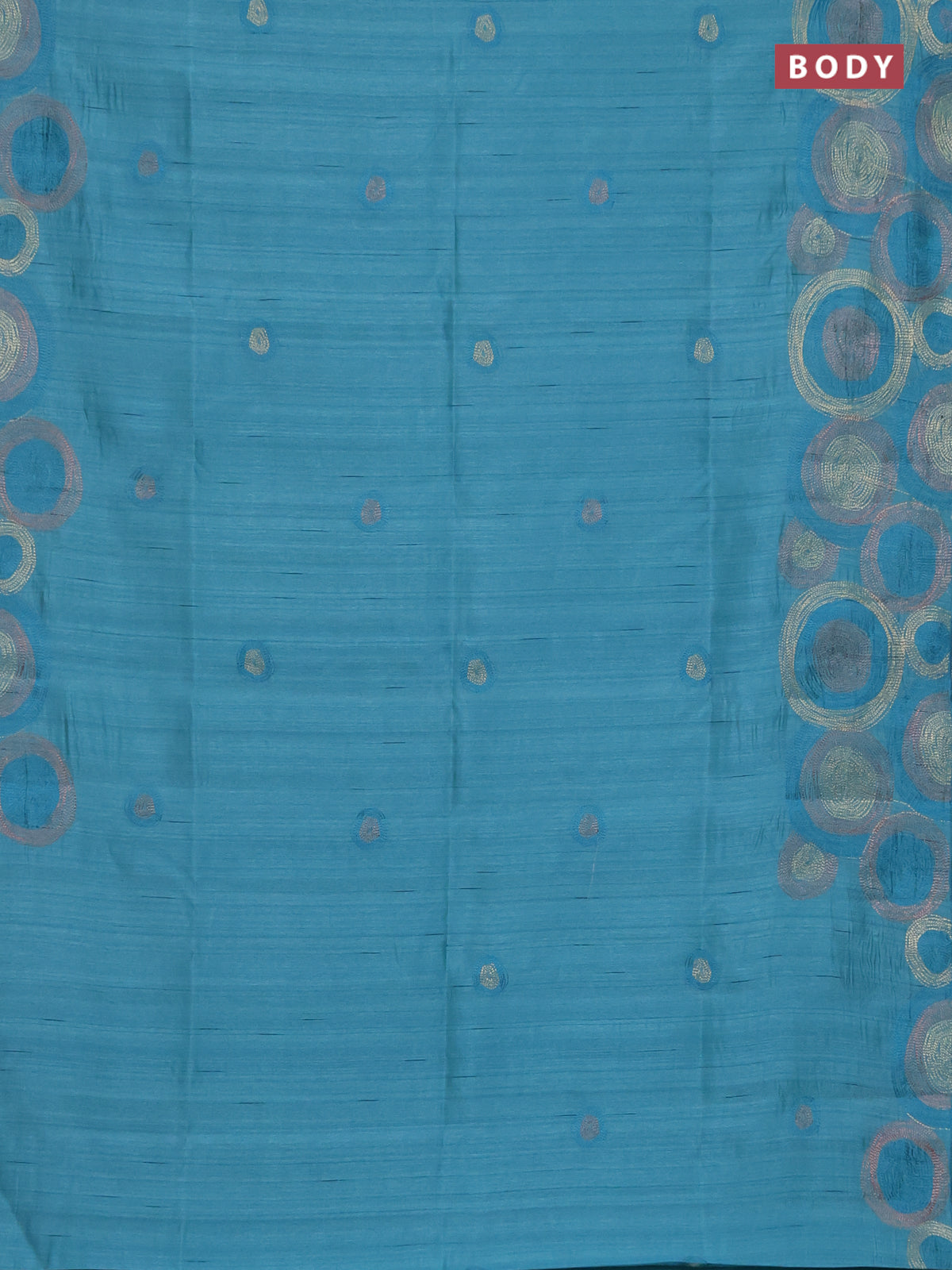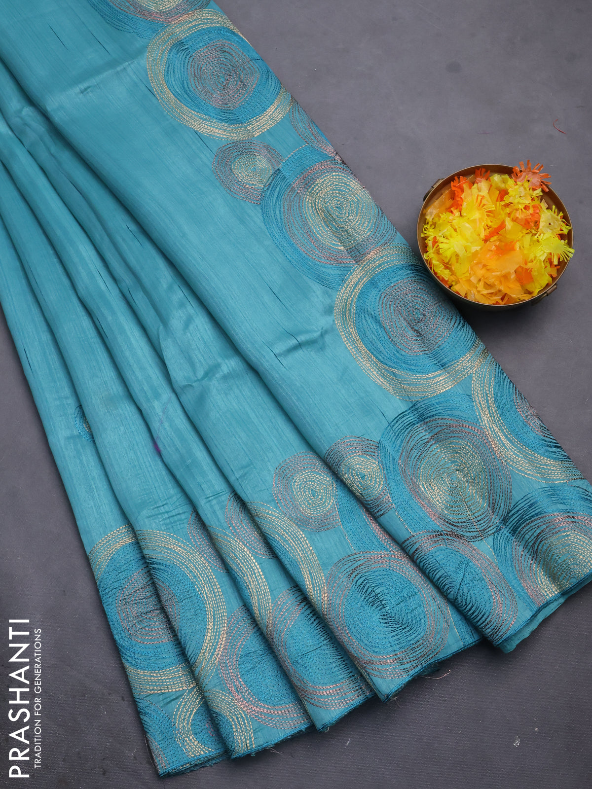 Semi raw silk saree teal green shade with embroidery work buttas and geometric design embroidery border
