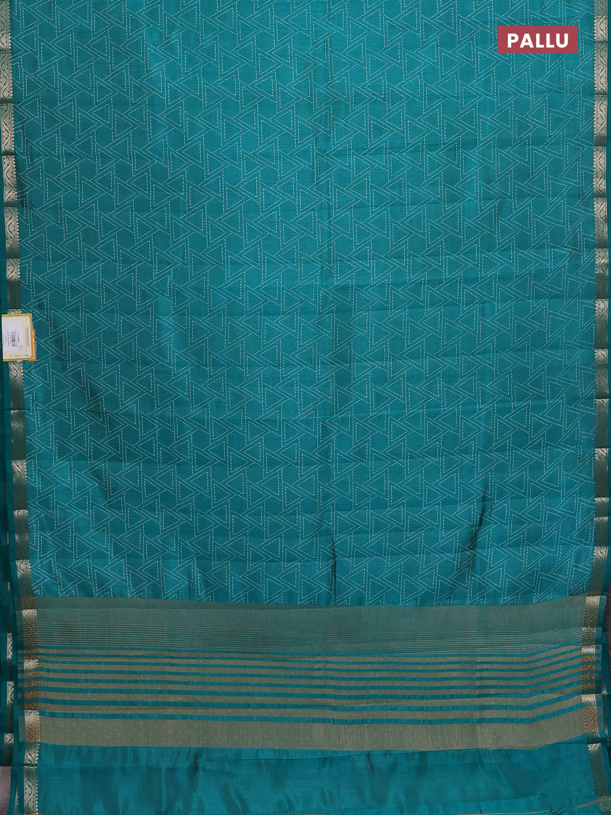 Semi raw silk saree teal green with allover geometric prints and zari woven border