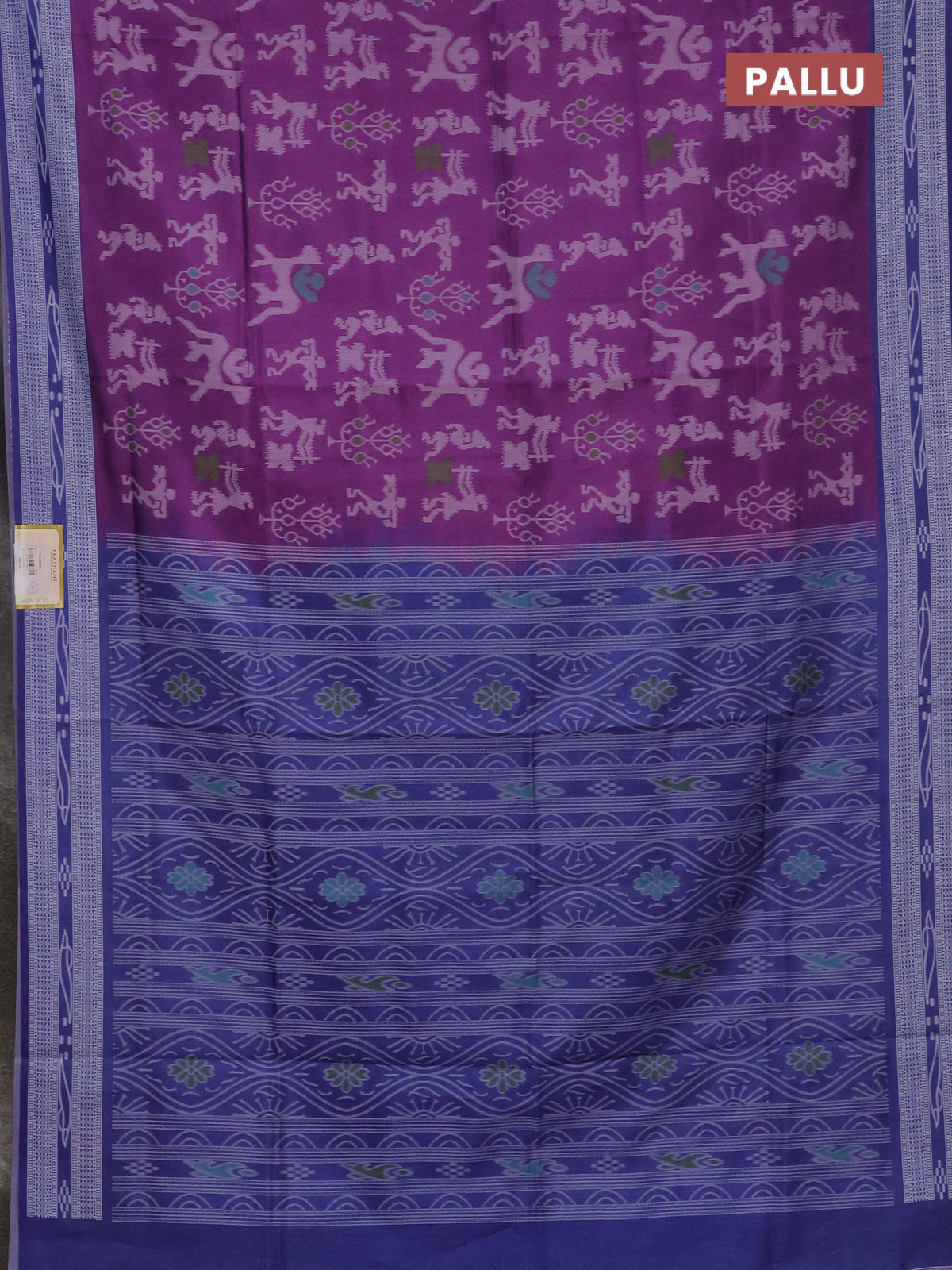 Semi sambalpuri silk saree purple and blue shade with allover warli ikat weaves and thread woven border