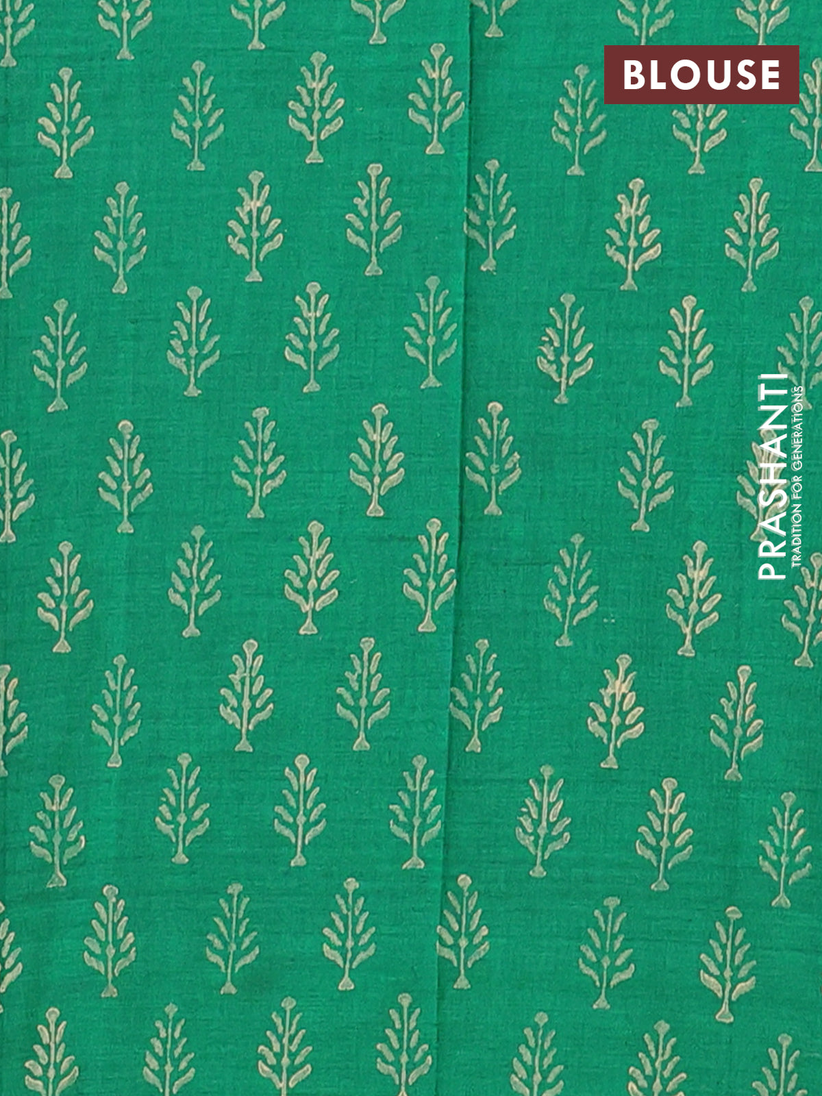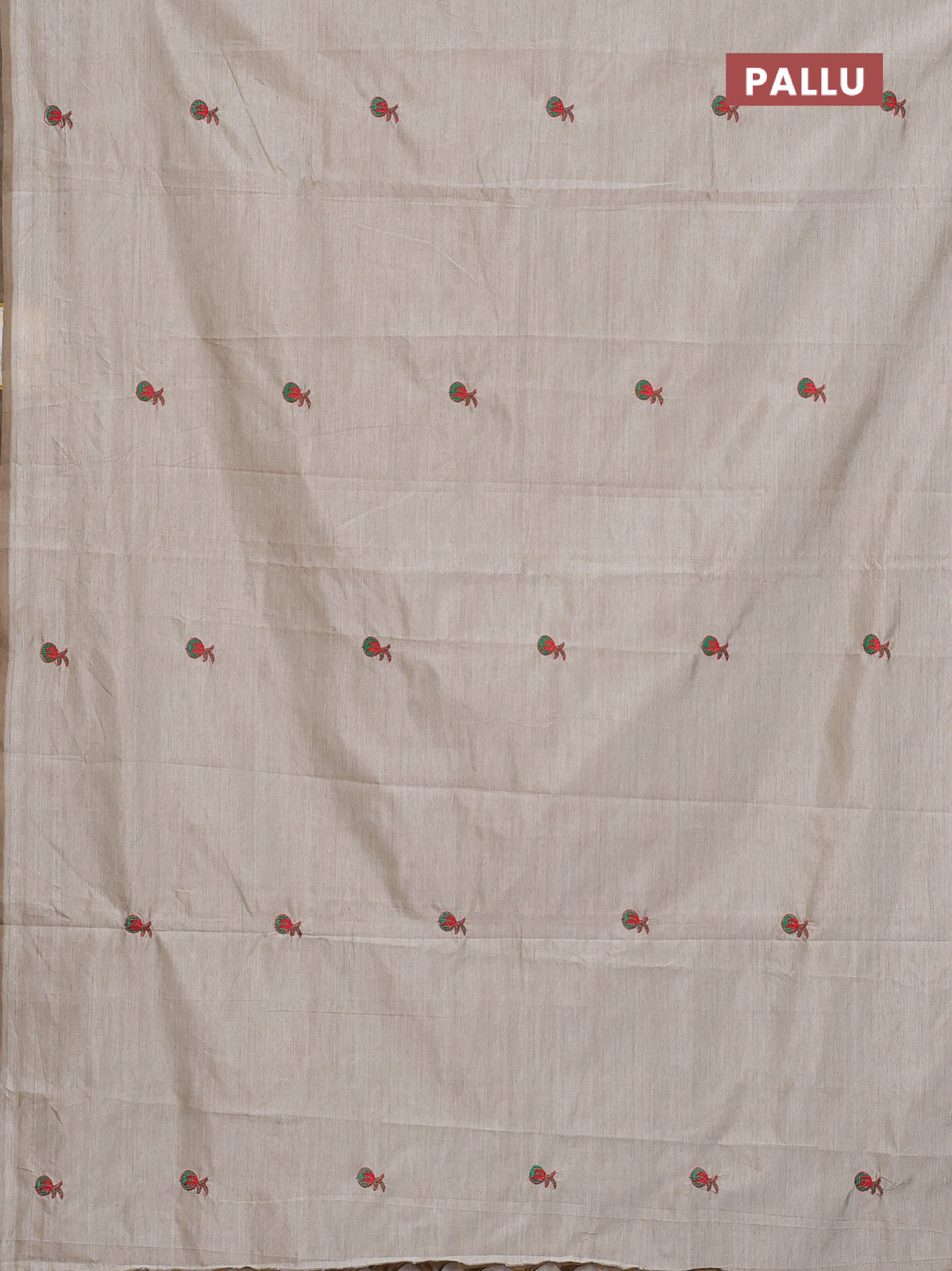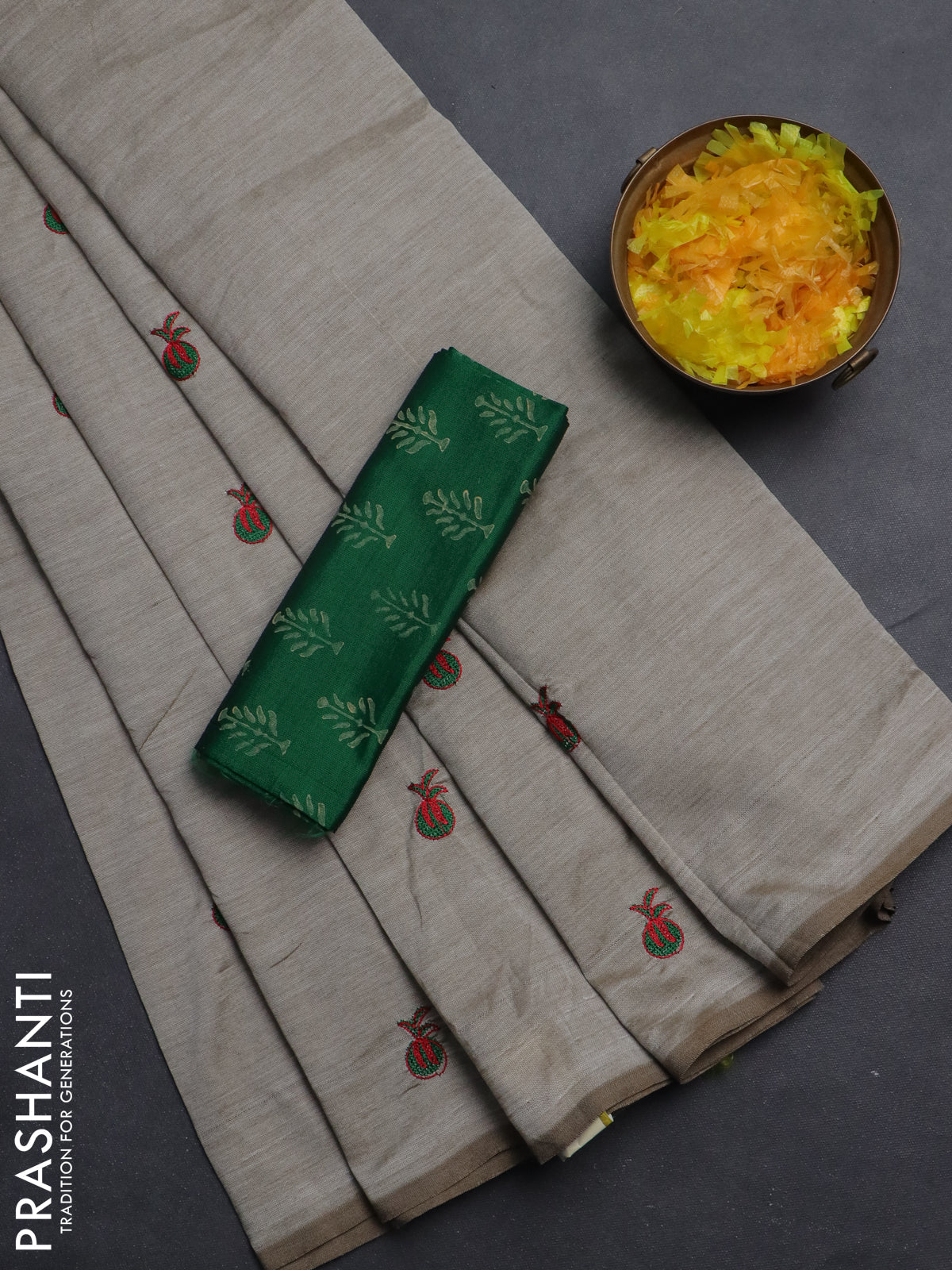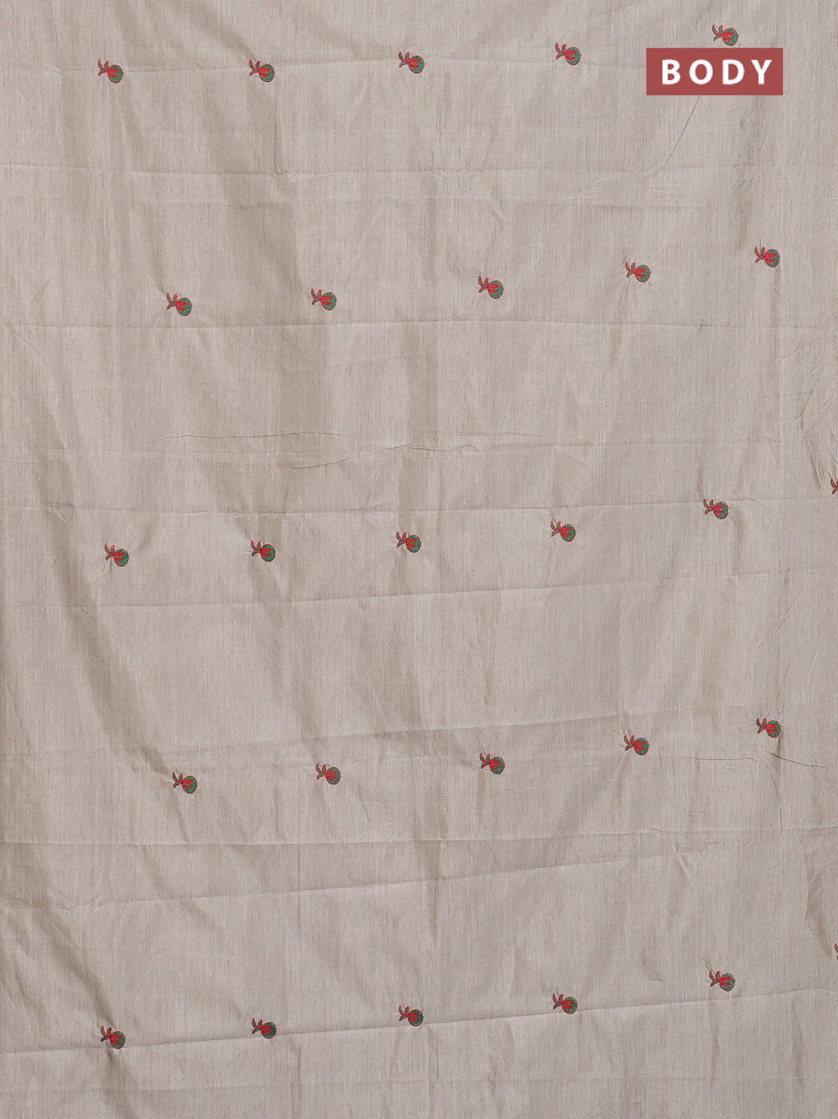 Semi silk cotton saree beige and green with embroided buttas in borderless style