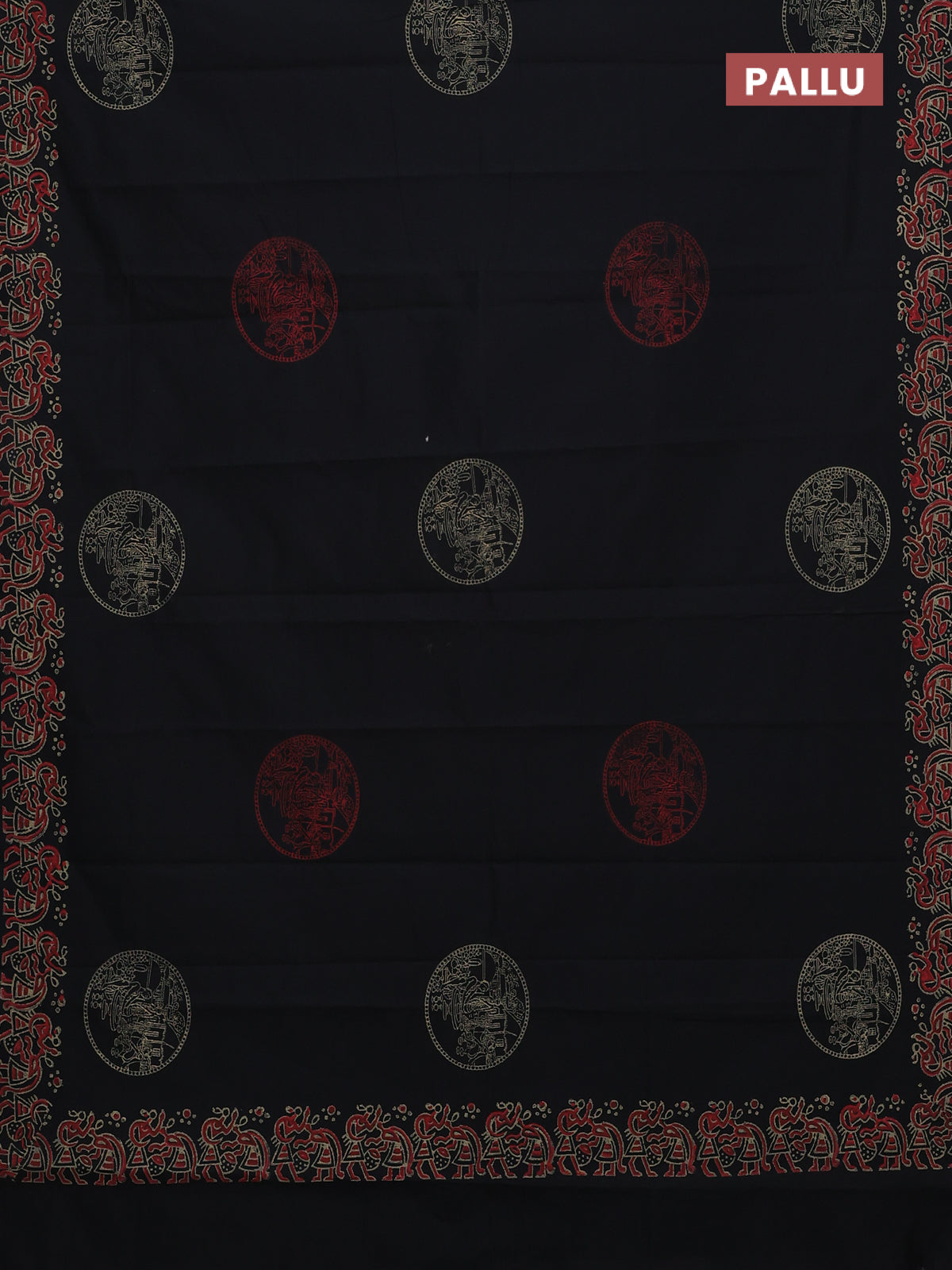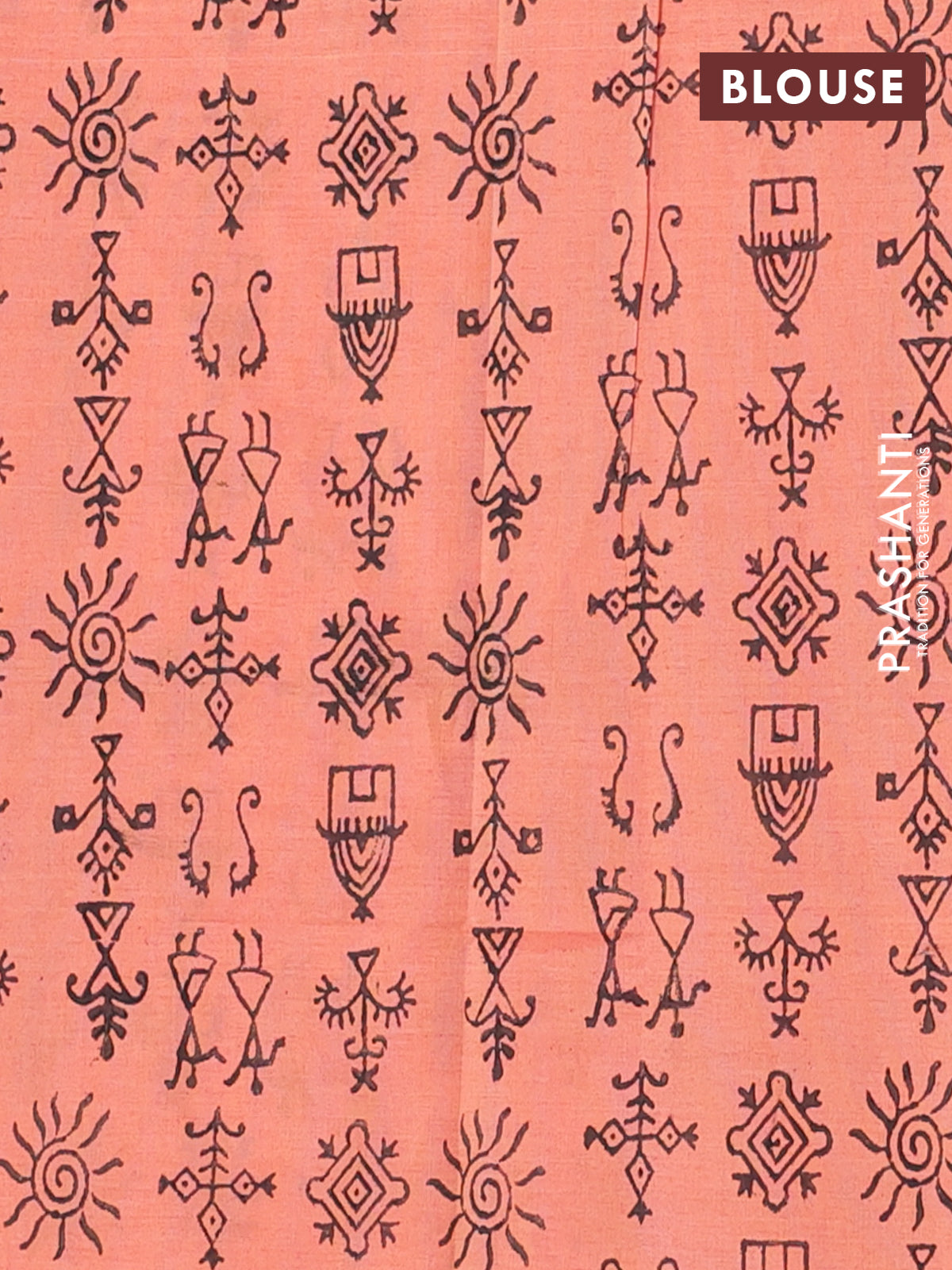Semi silk cotton saree black and peach shade with butta prints and printed border