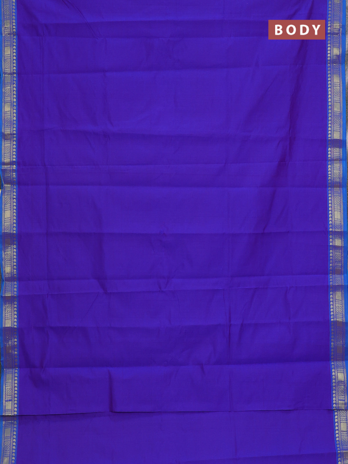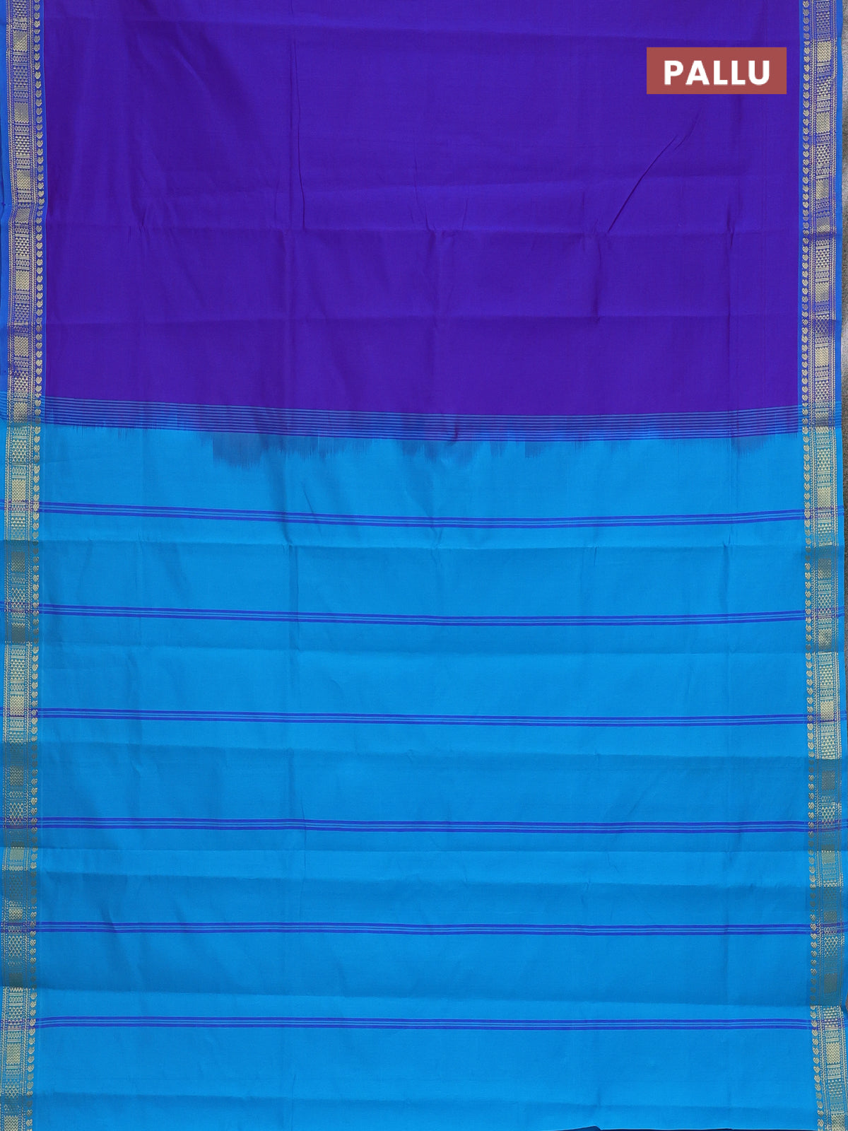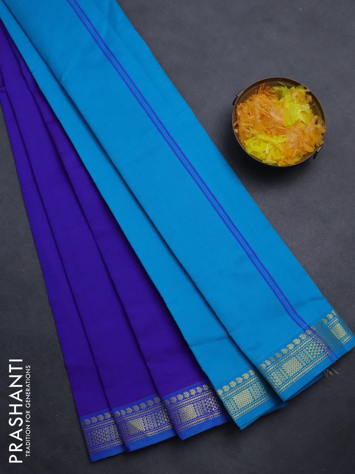 Semi silk cotton saree dual shade of blue and teal blue with plain body and zari woven border