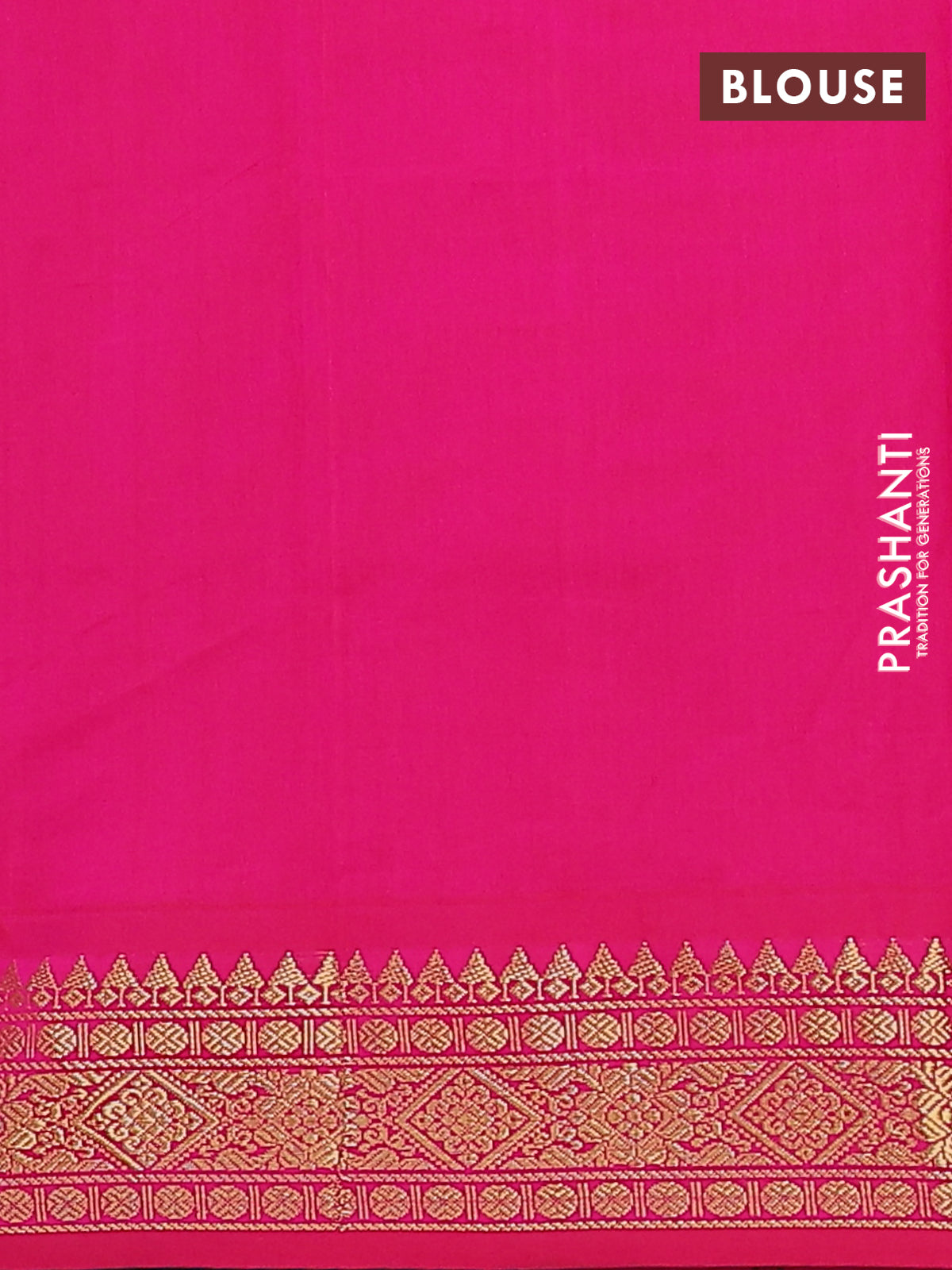 Semi silk cotton saree dual shade of sap green and pink with plain body and zari woven border