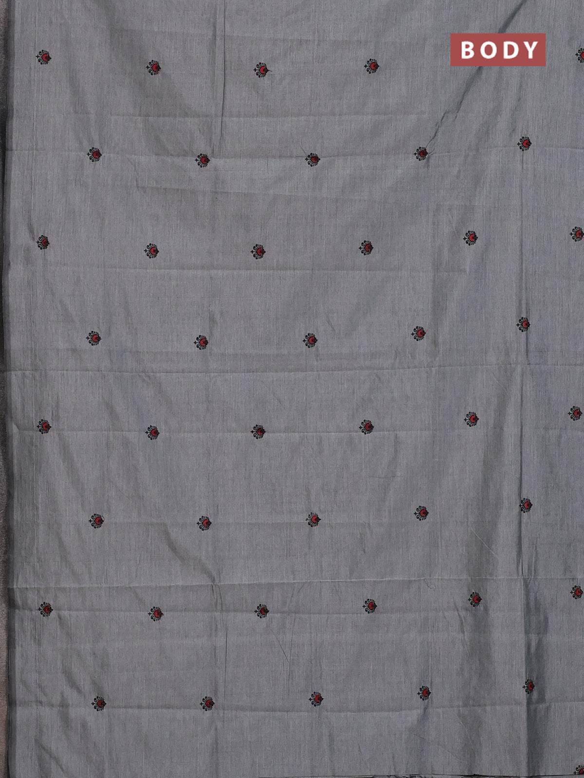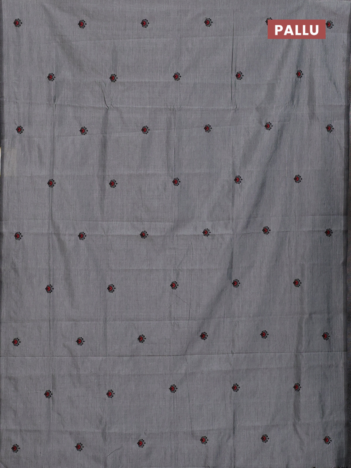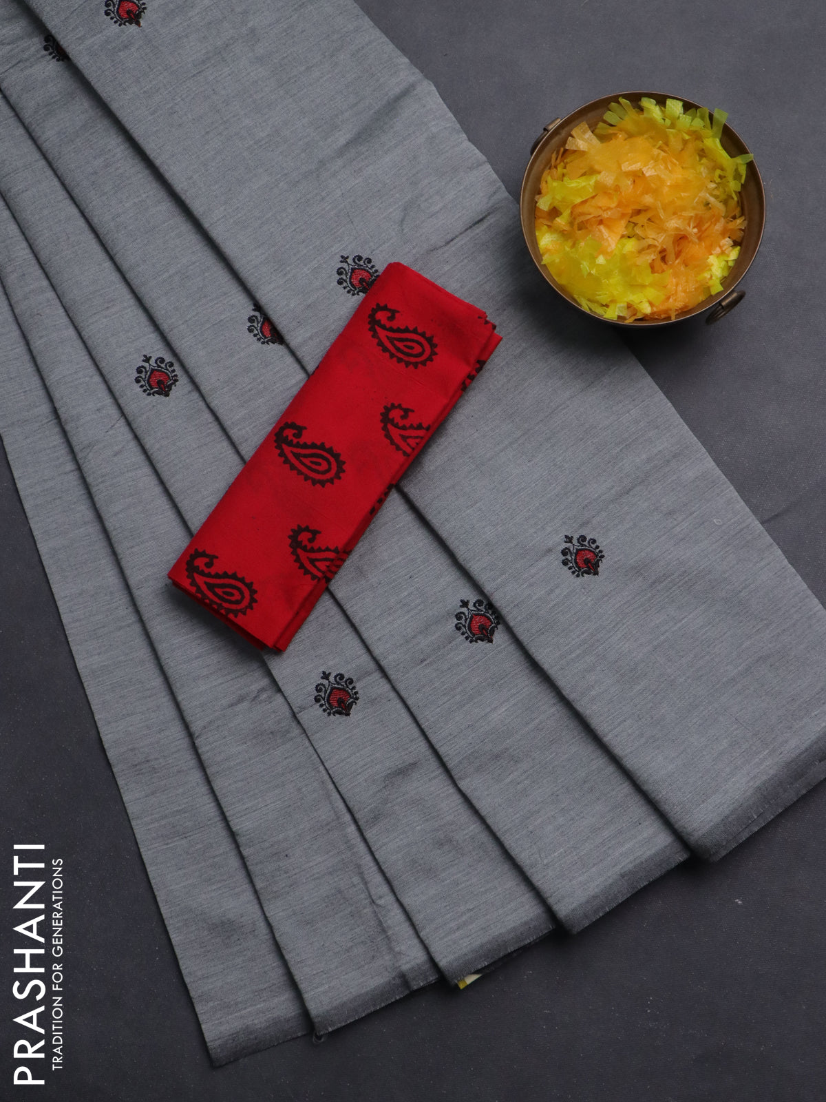 Semi silk cotton saree grey and black with embroided buttas in borderless style