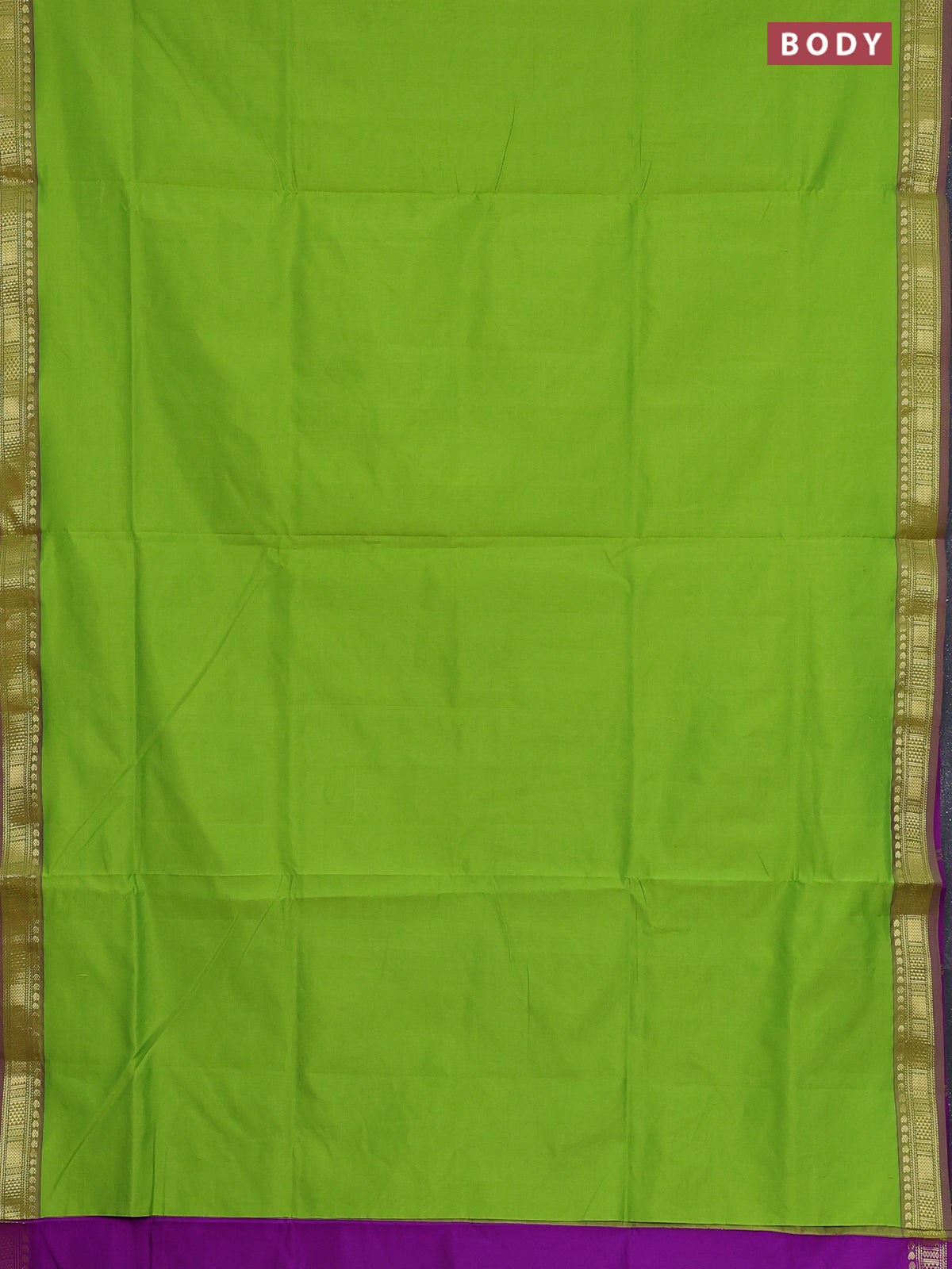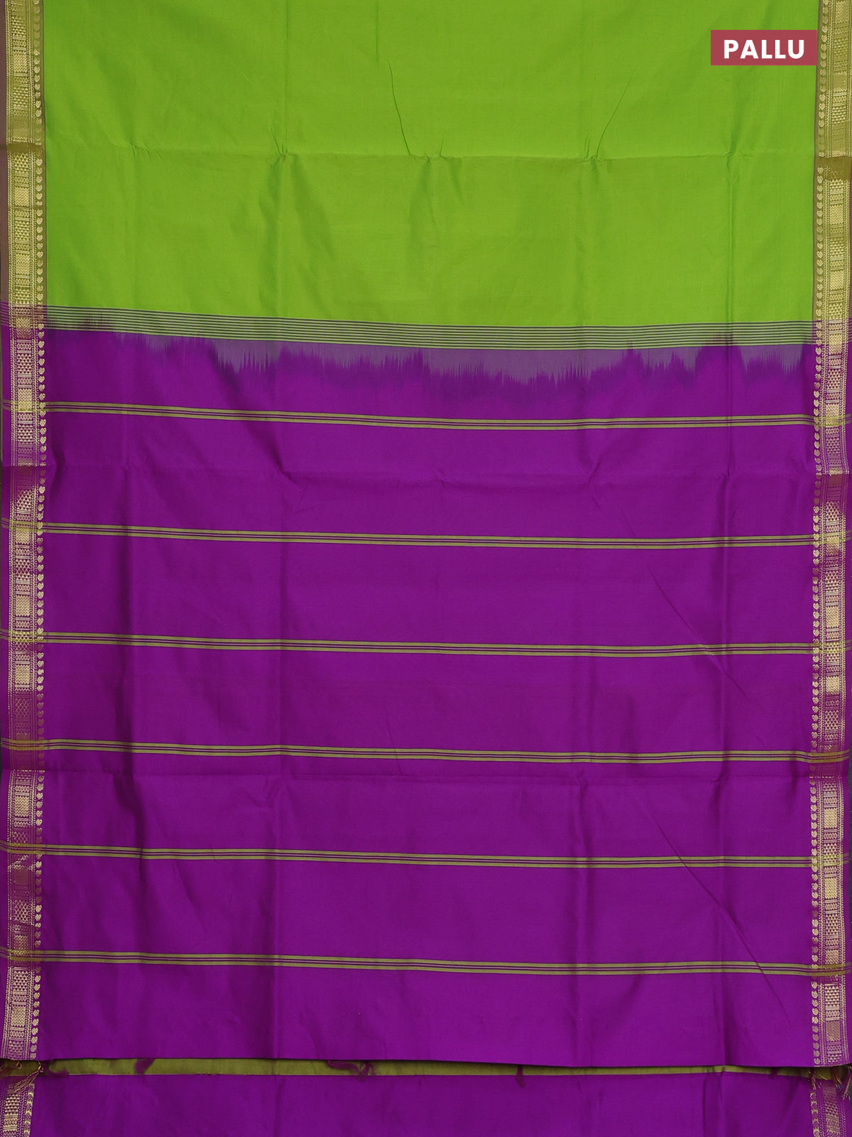Semi silk cotton saree light green and purple with plain body and zari woven border